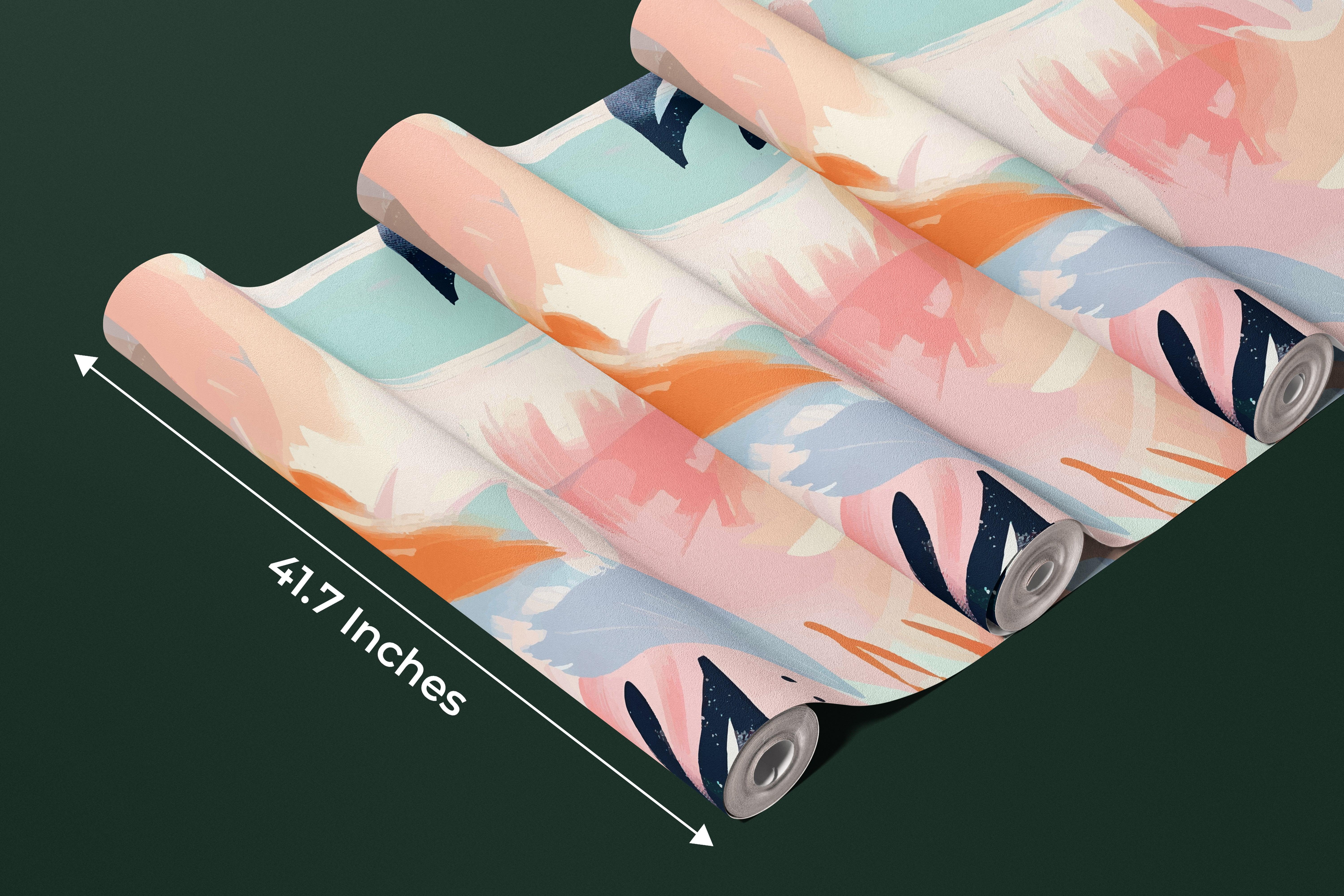 Pastel Abstract Summer Wallpaper, Seamless Pattern Mural, Oversized Custom Size Wall Art, Non-Woven, Non-Adhesive, Modern Wall Paper, Removable