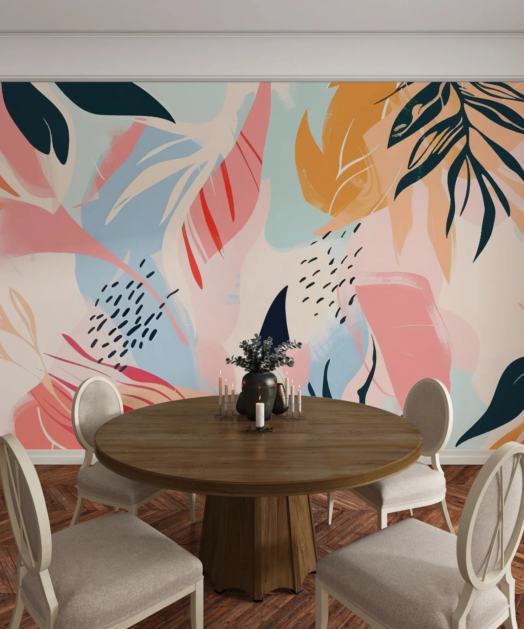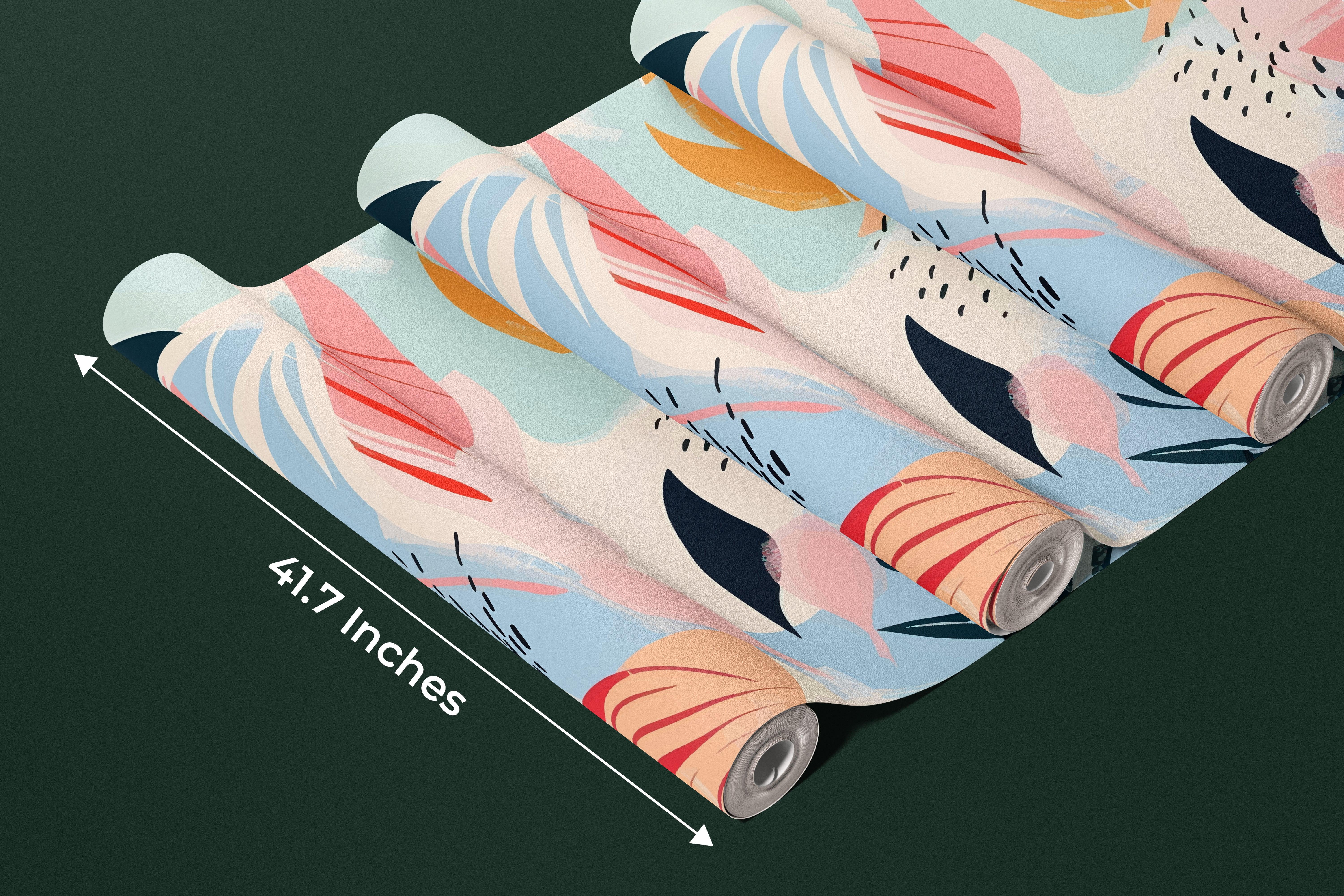 Pastel Abstract Summer Wallpaper, Seamless Pattern Mural, Oversized Custom Size Wall Art, Non-Woven, Non-Adhesive, Modern Wall Paper, Removable