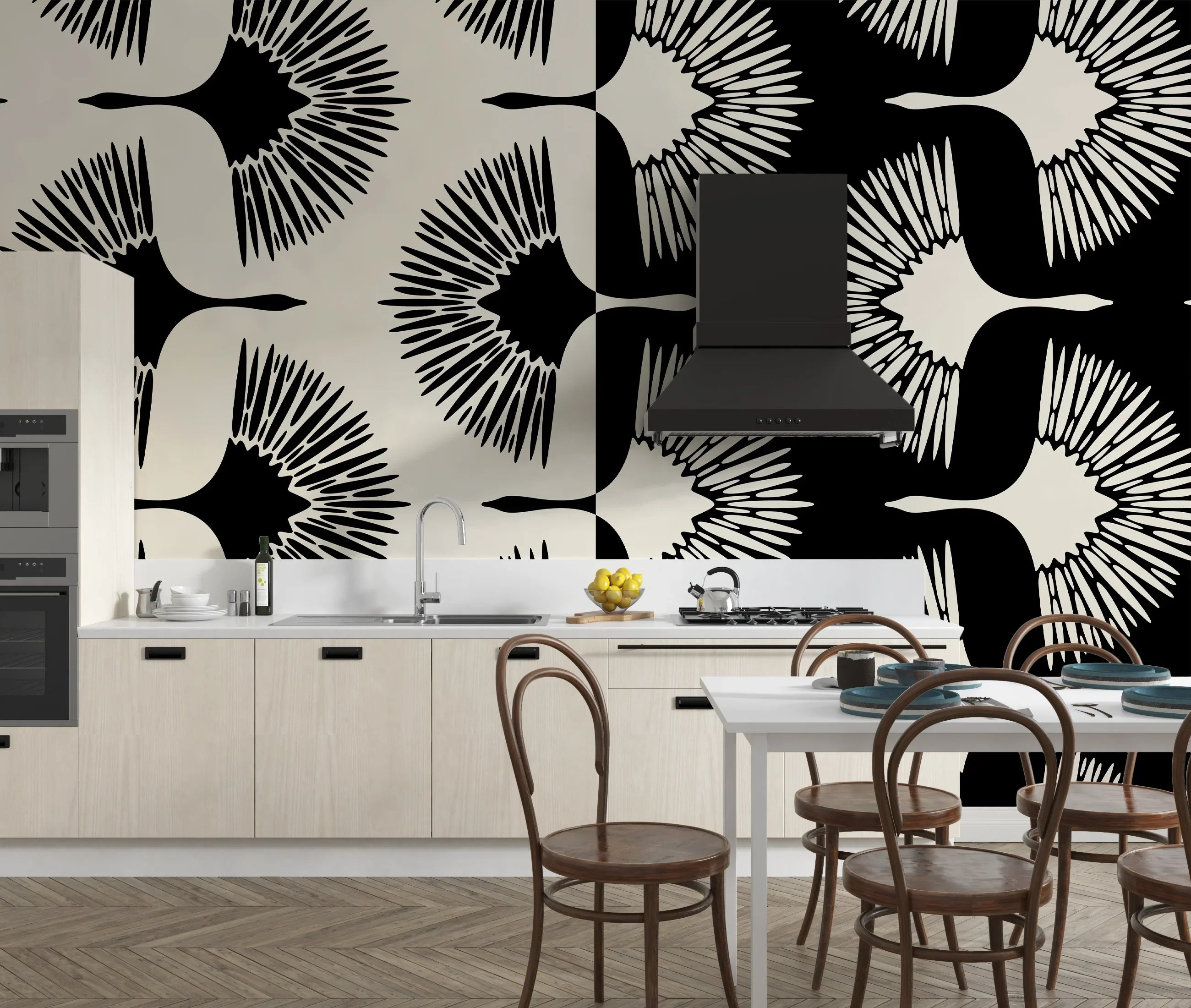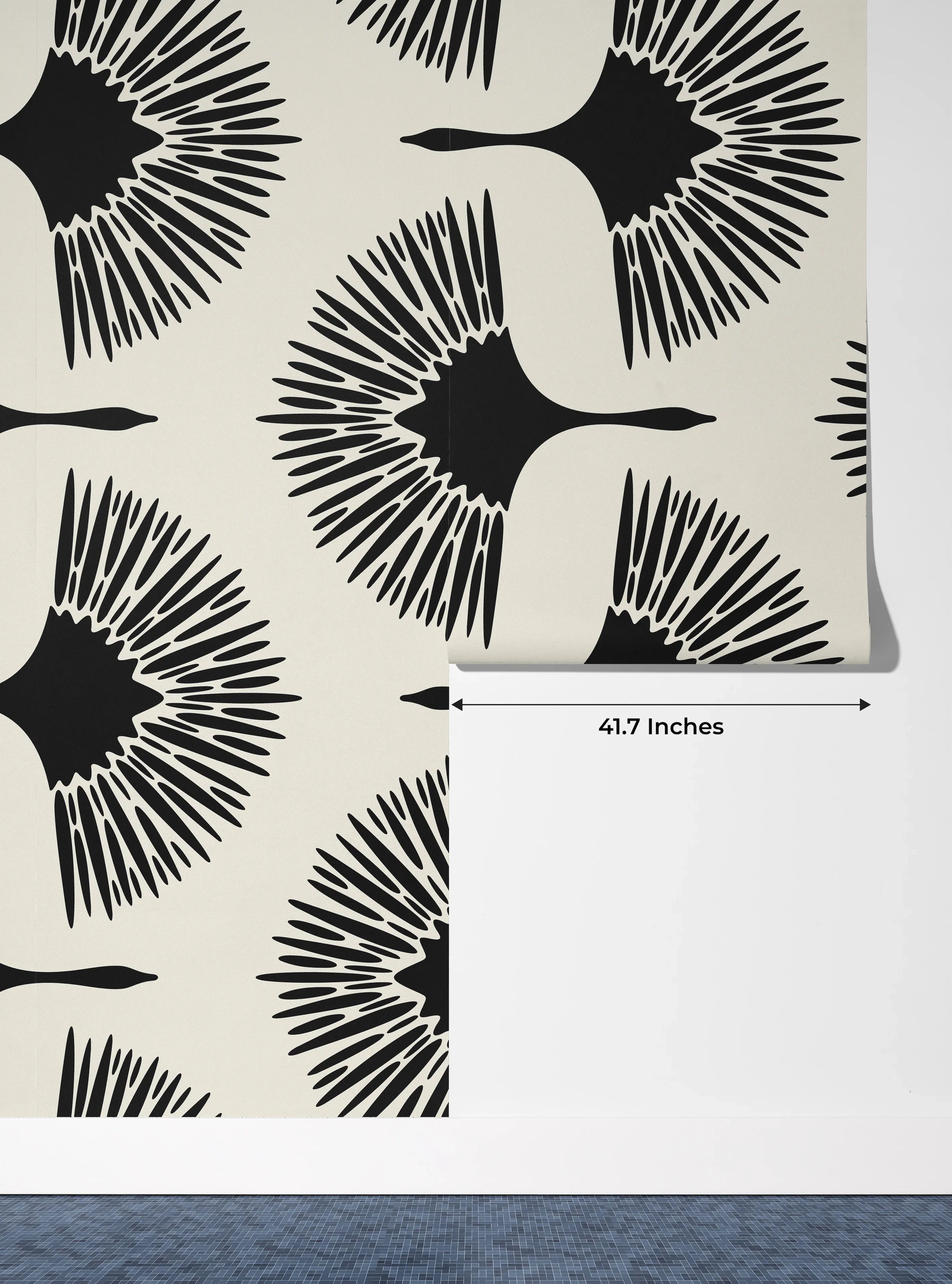 Art Deco Crane Wallpaper, Seamless Pattern Mural, Oversized Custom Size Wall Art, Non-Woven, Non-Adhesive, Modern Wall Paper, Removable
