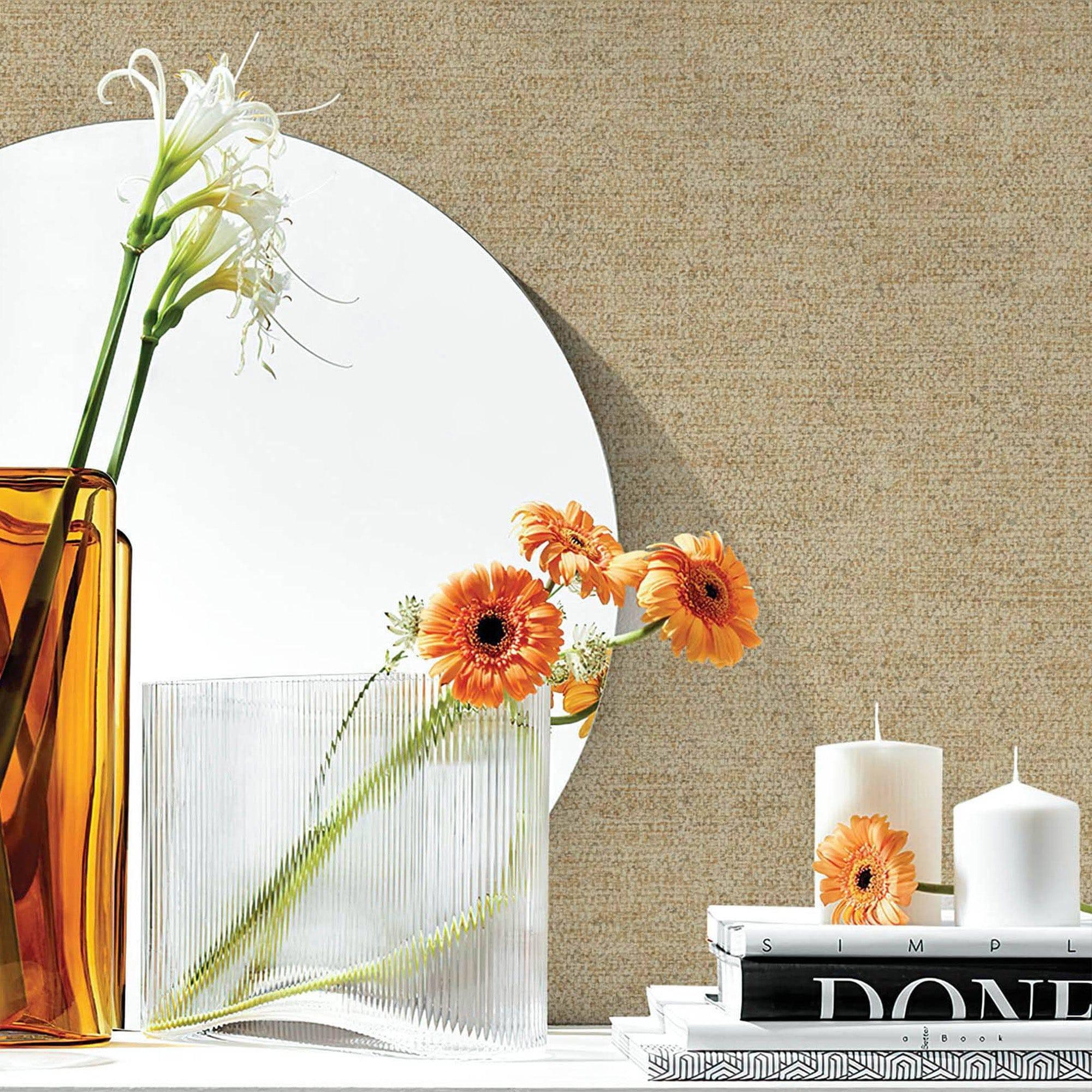 Beige Sparkling Linen Texture Textured Wallpaper, Classical Woven Fabric Decorative Wallcovering