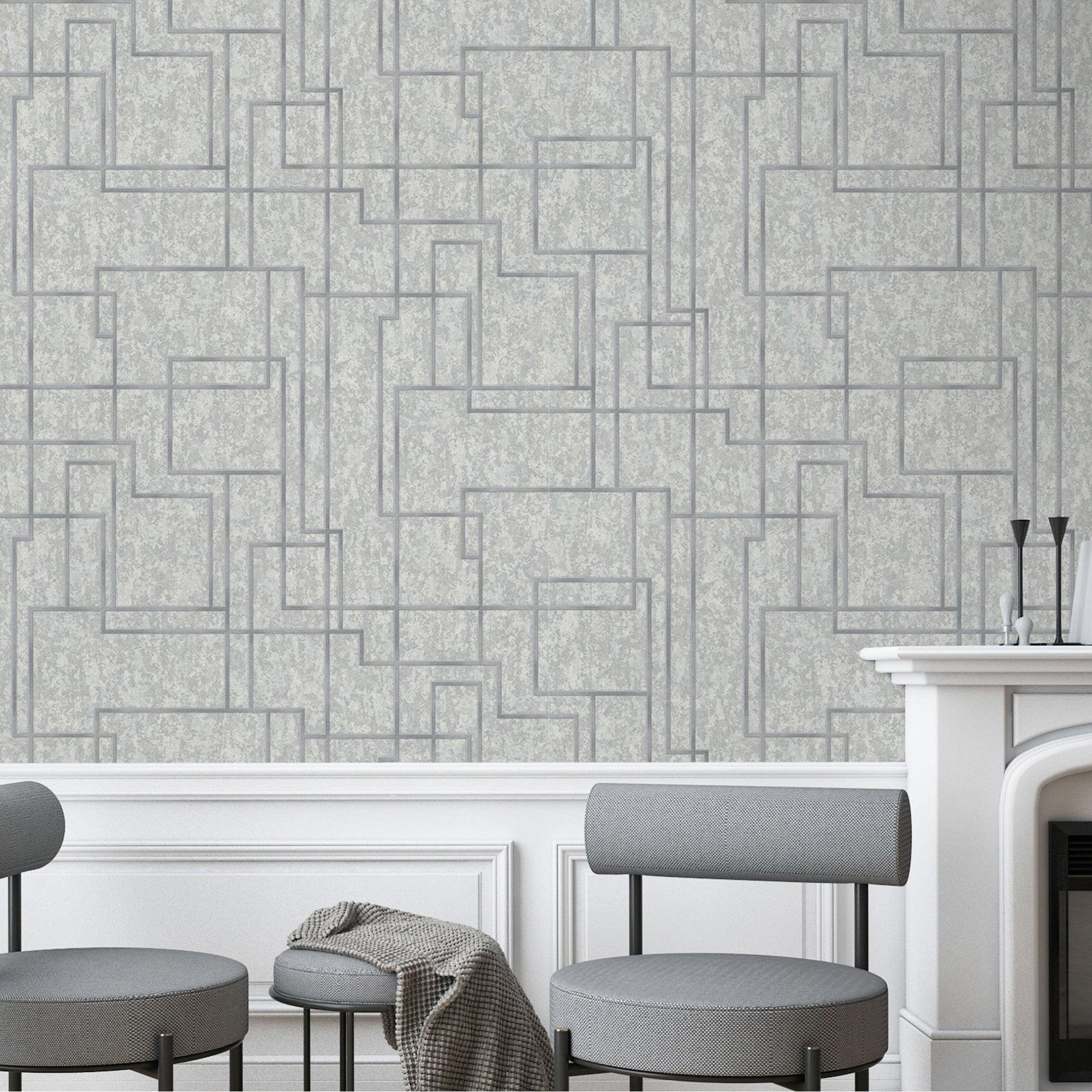Gray Modern Lines Geometric Wallpaper, Contemporary 3D Embossed Wallcovering, Abstract Bold