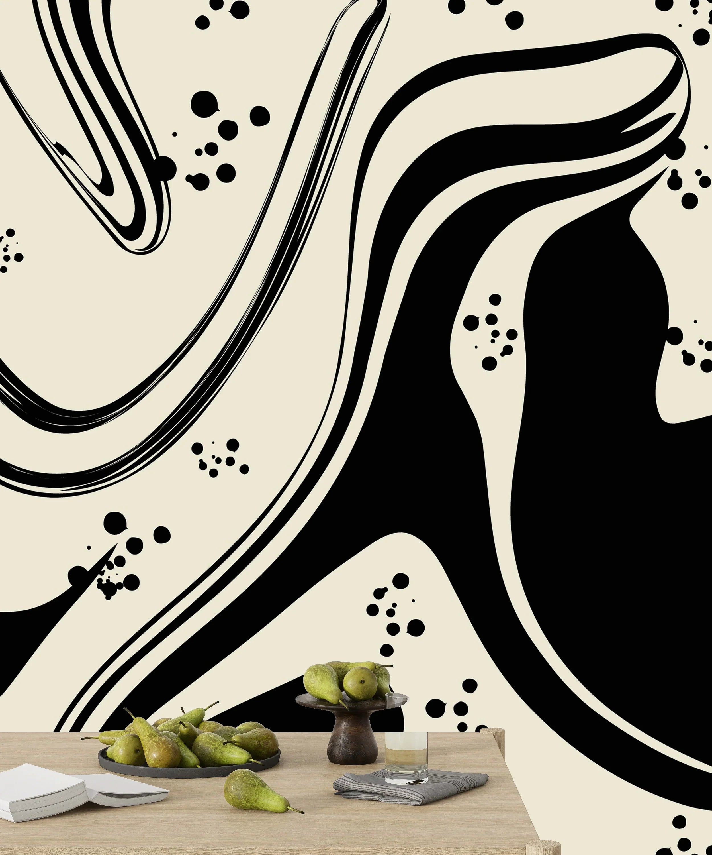 Abstract Black-White Wallpaper, Seamless Pattern Mural, Oversized Custom Size Wall Art, Non-Woven, Non-Adhesive, Modern Wall Paper, Removable