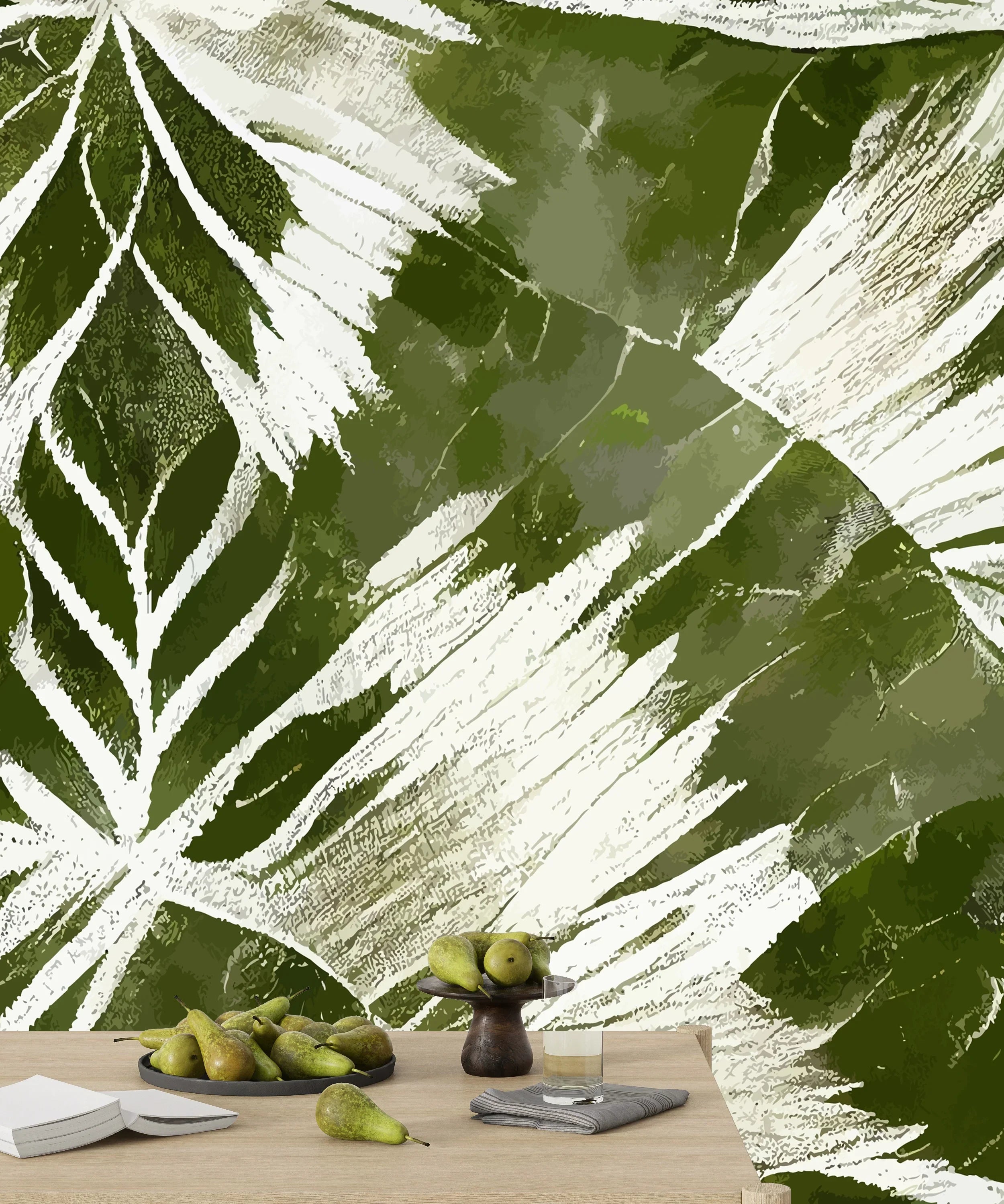 Ikat Boho Art Wallpaper, Greenish Mural, Oversized Custom Size Wall Art, Non-Woven, Non-Adhesive, Modern Wall Paper, Removable