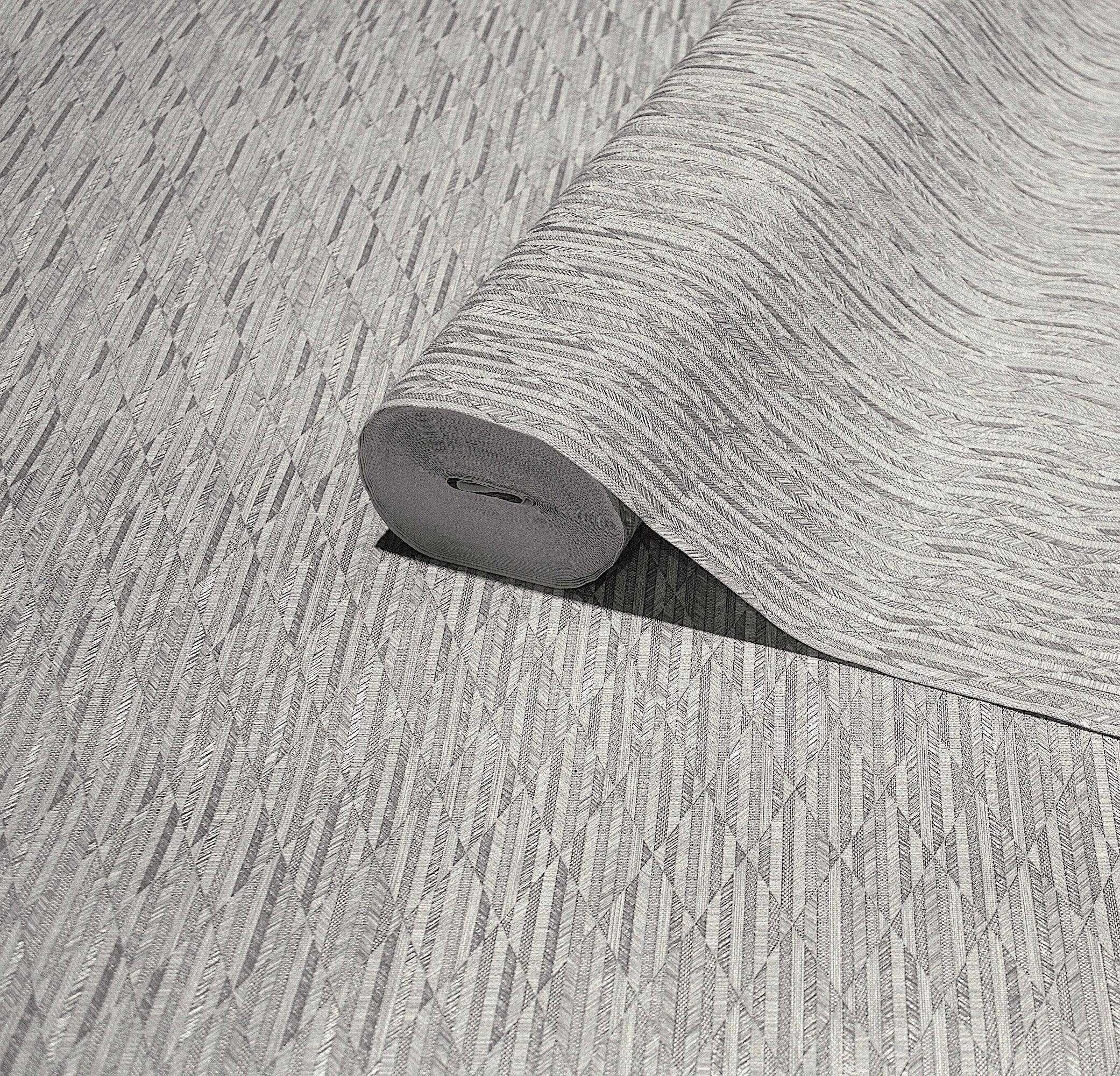 Silver Diamond Shapes Wallpaper, Shiny 3D Deep Embossed Lines Stylish Modern Wallcovering