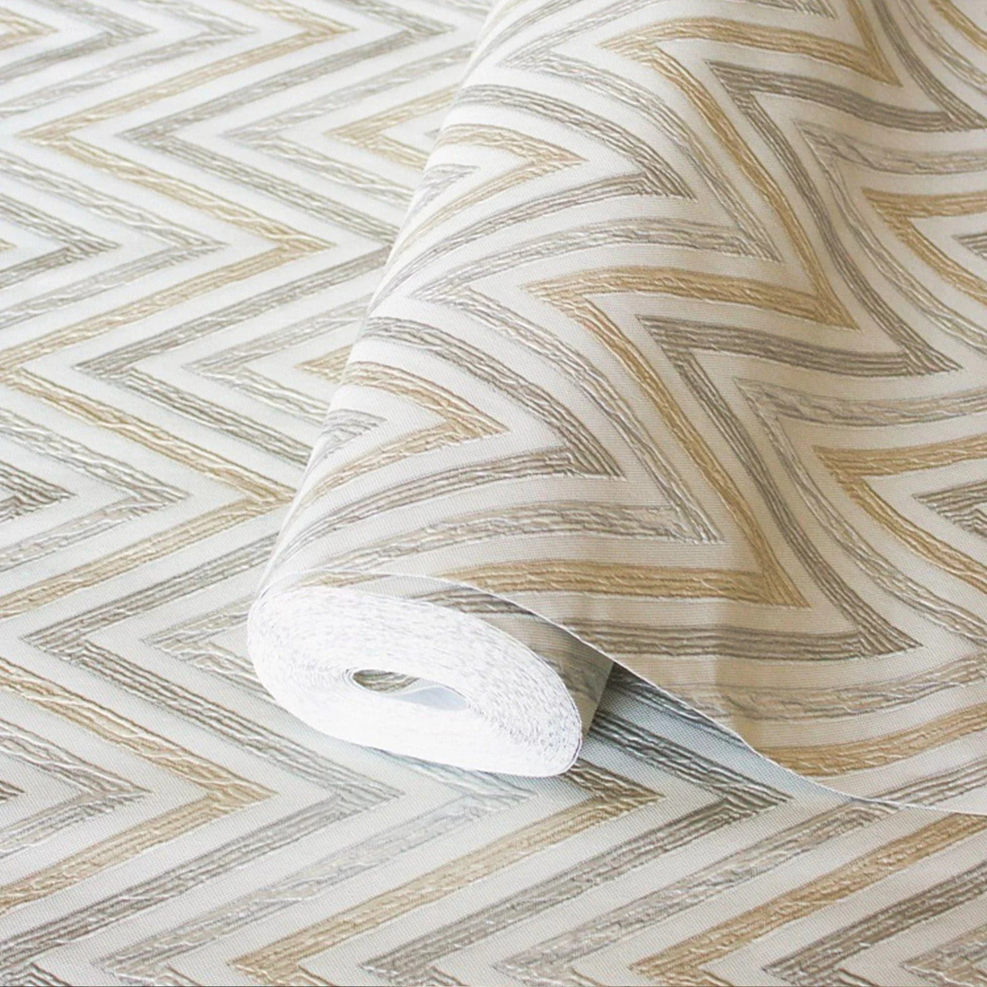 Chevron Wallpaper, Off White, Silver Geometric Deep Embossed Zigzag Pattern Geometric Wallcovering