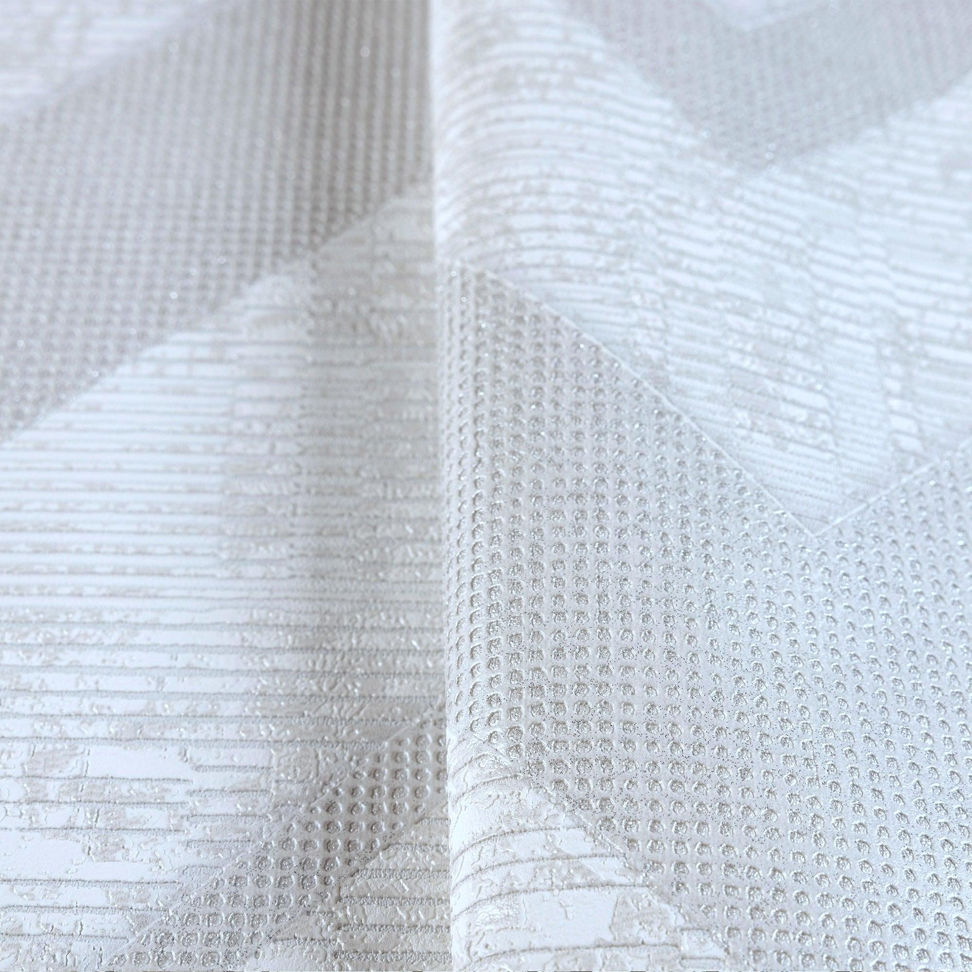 Large Modern Chevron 3D Embossed Wallpaper, White Modern Rich Textured Wallcovering, Non-Pasted, Large 114 sq ft Roll