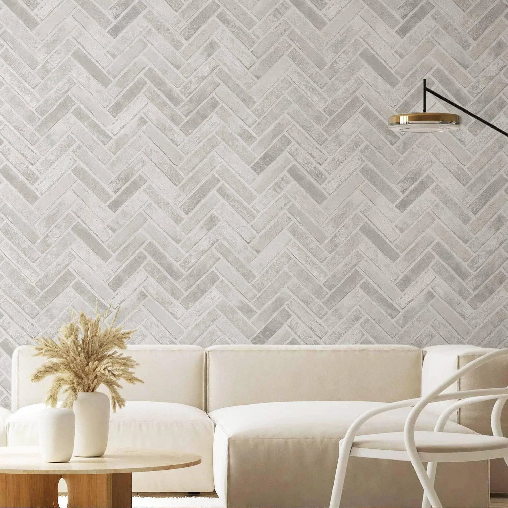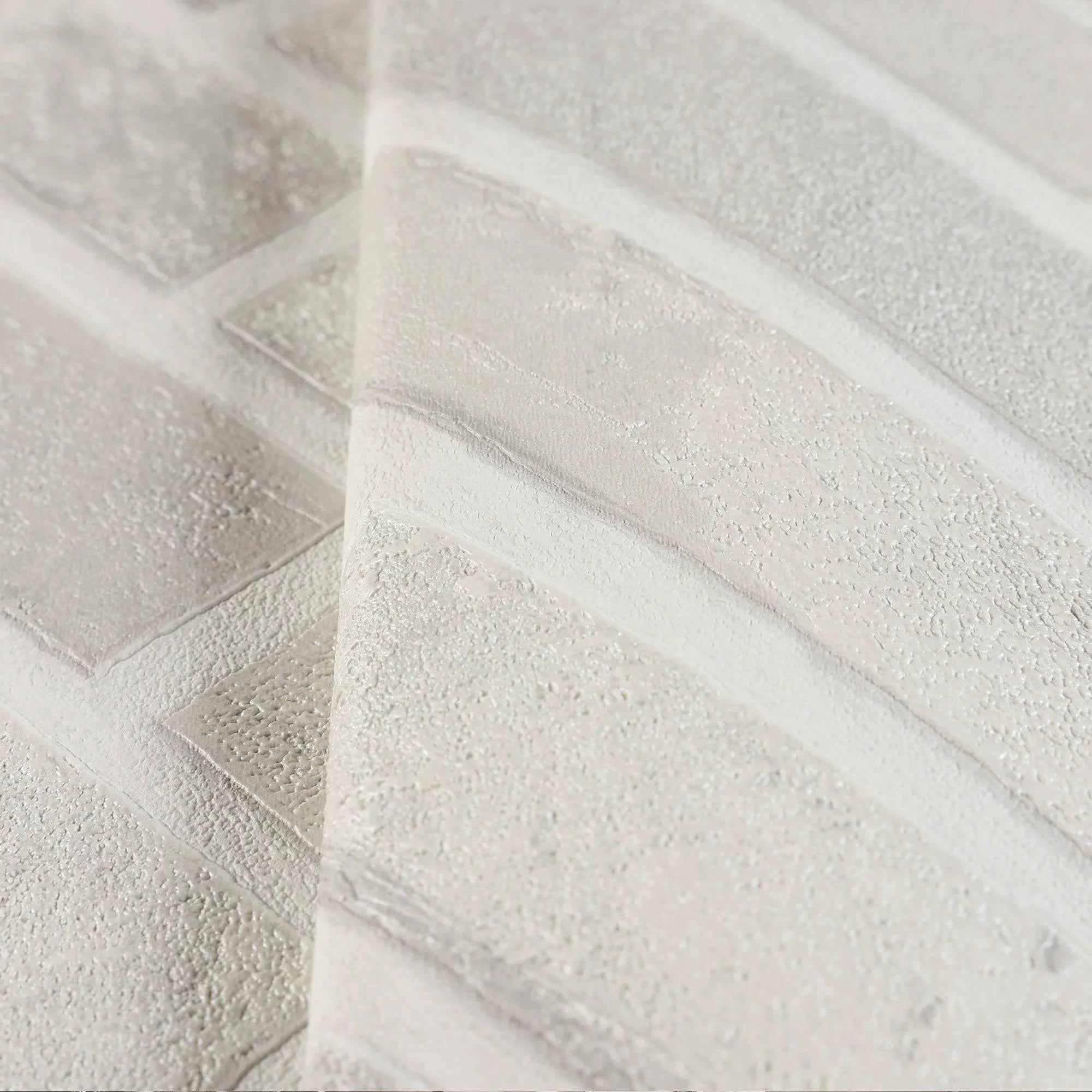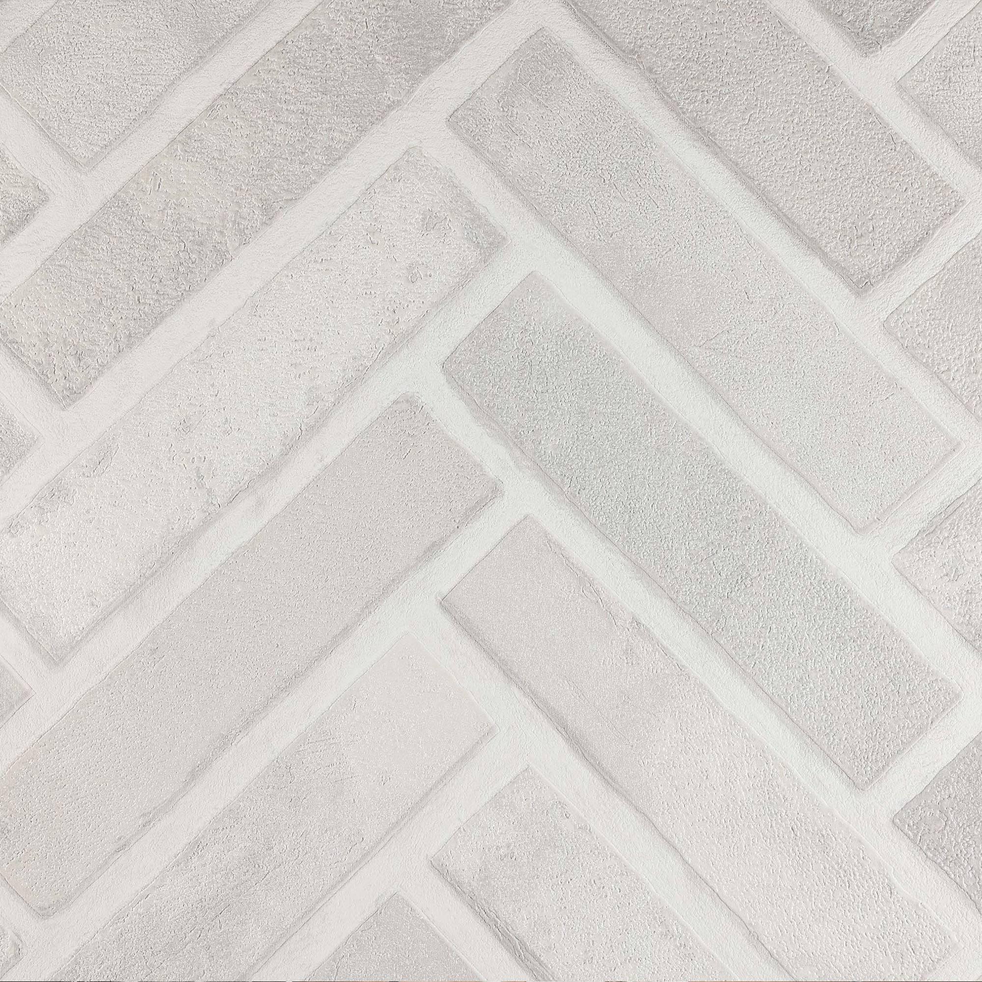 Realistic Embossed Brick Wallpaper, White, Ivory Chevron Pattern Stone Wall Decor, Home Commercial Use Textured Wallcovering