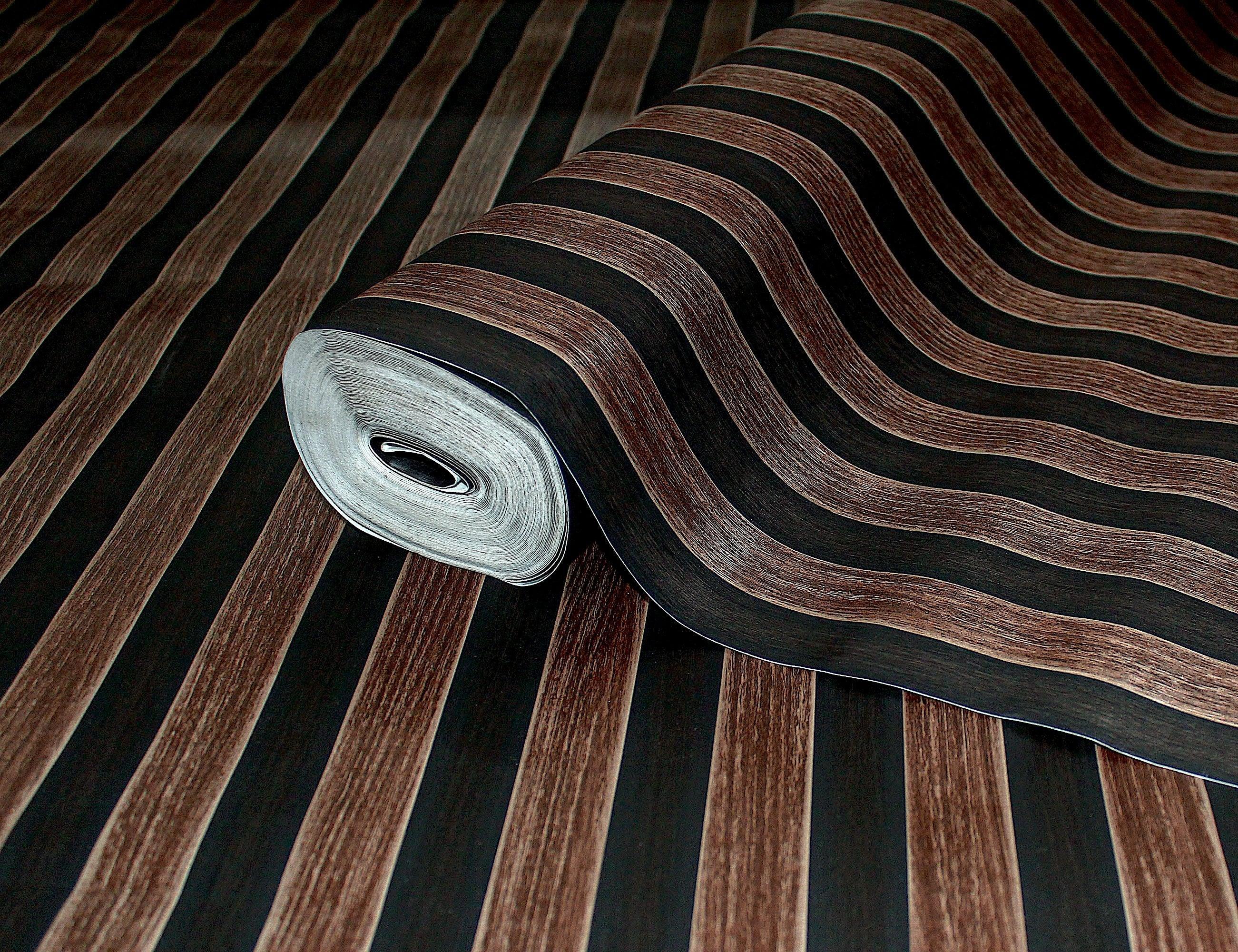 Dark Brown Wood Panel Look Wallpaper, 3D Embossed textured Wooden Pattern Wallcovering, Modern, Stylish