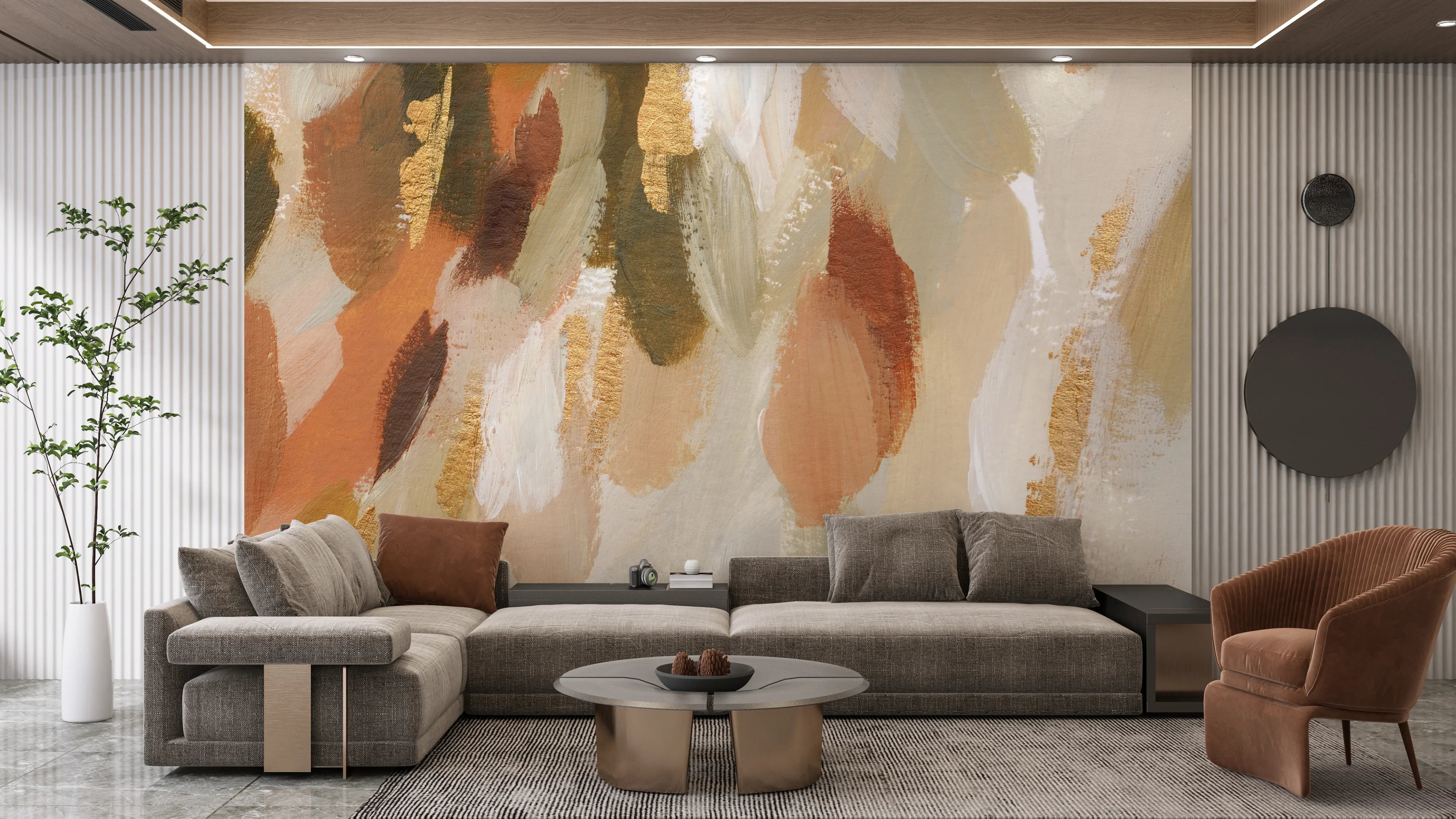 Abstract Hand Painted Wallpaper, Stylish Mural, Oversized Custom Size Wall Art, Non-Woven, Non-Adhesive, Modern Wall Paper, Removable