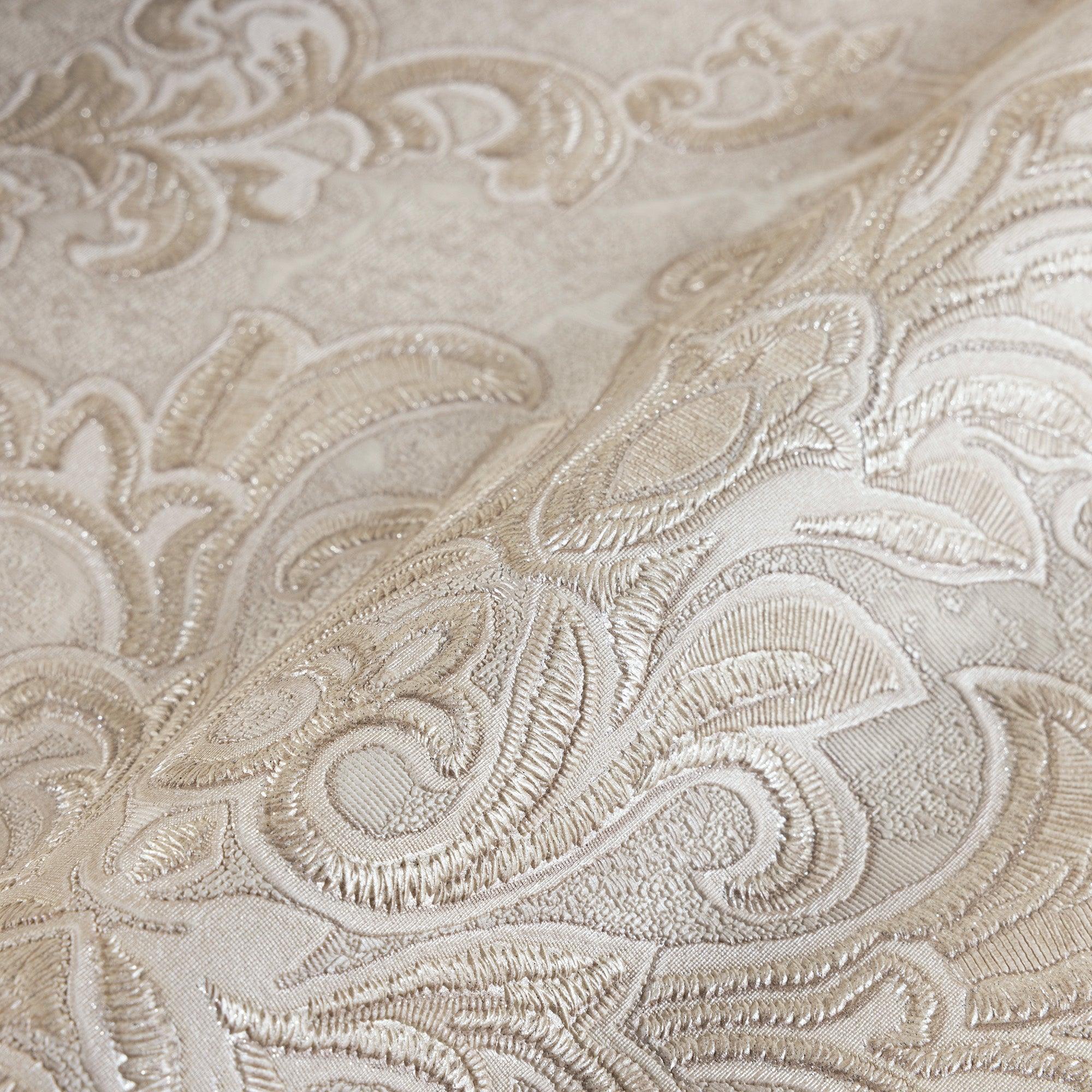 Light Beige Luxury Baroque Deep Embossed Wallpaper, Damask Ornate Patterns Sparkling Wallcovering