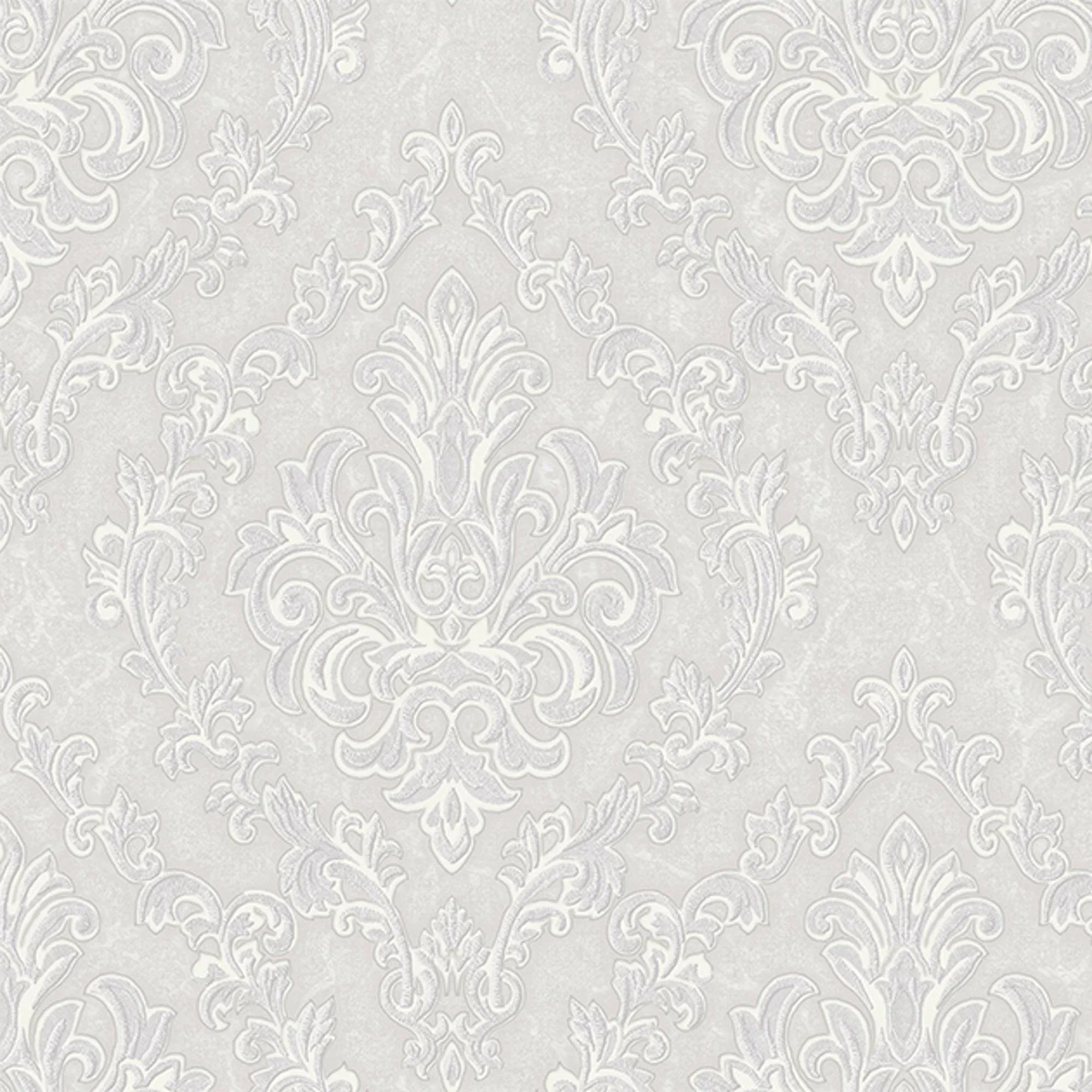 Stylish Baroque Deep Embossed Wallpaper, Light Gray, Timeless Damask Ornate Patterns Sparkling Wallcovering, Elegant Washed Colors Design