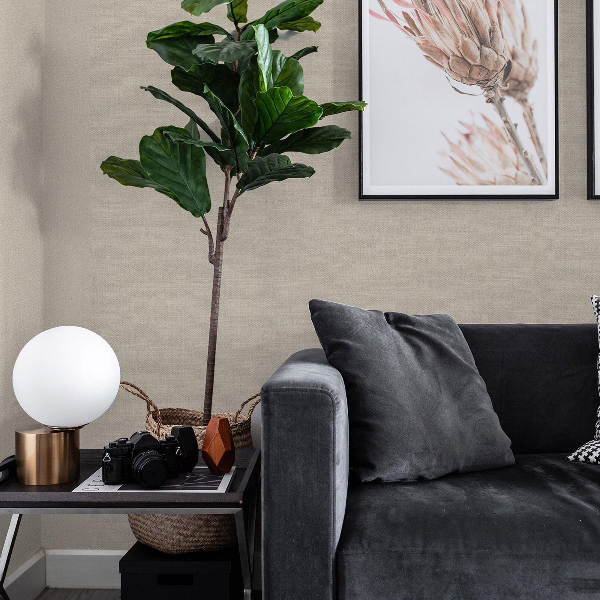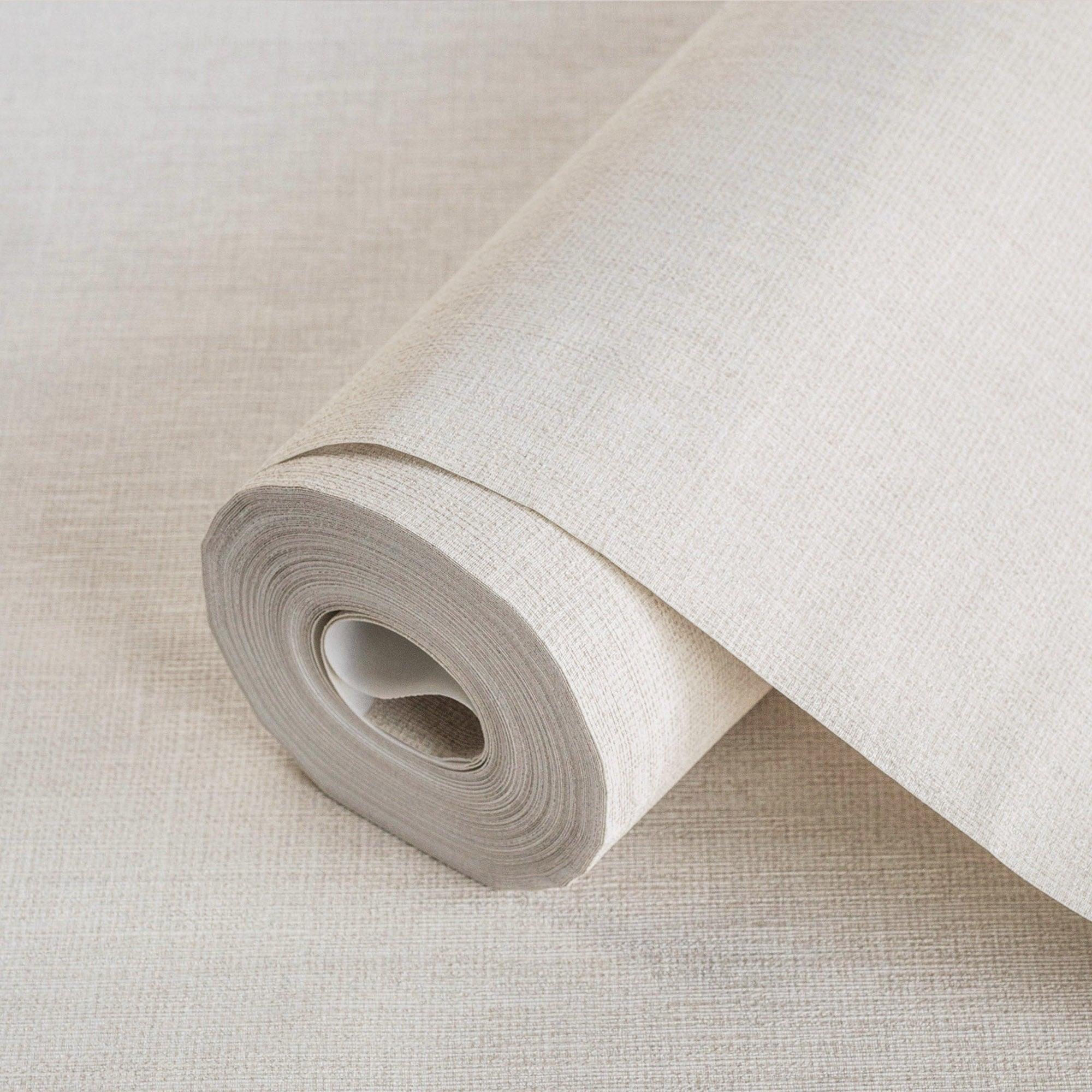 Solid Color Linen Textured Wallpaper, Light Beige Modern Neutral Colors Non-Pasted Wallcovering