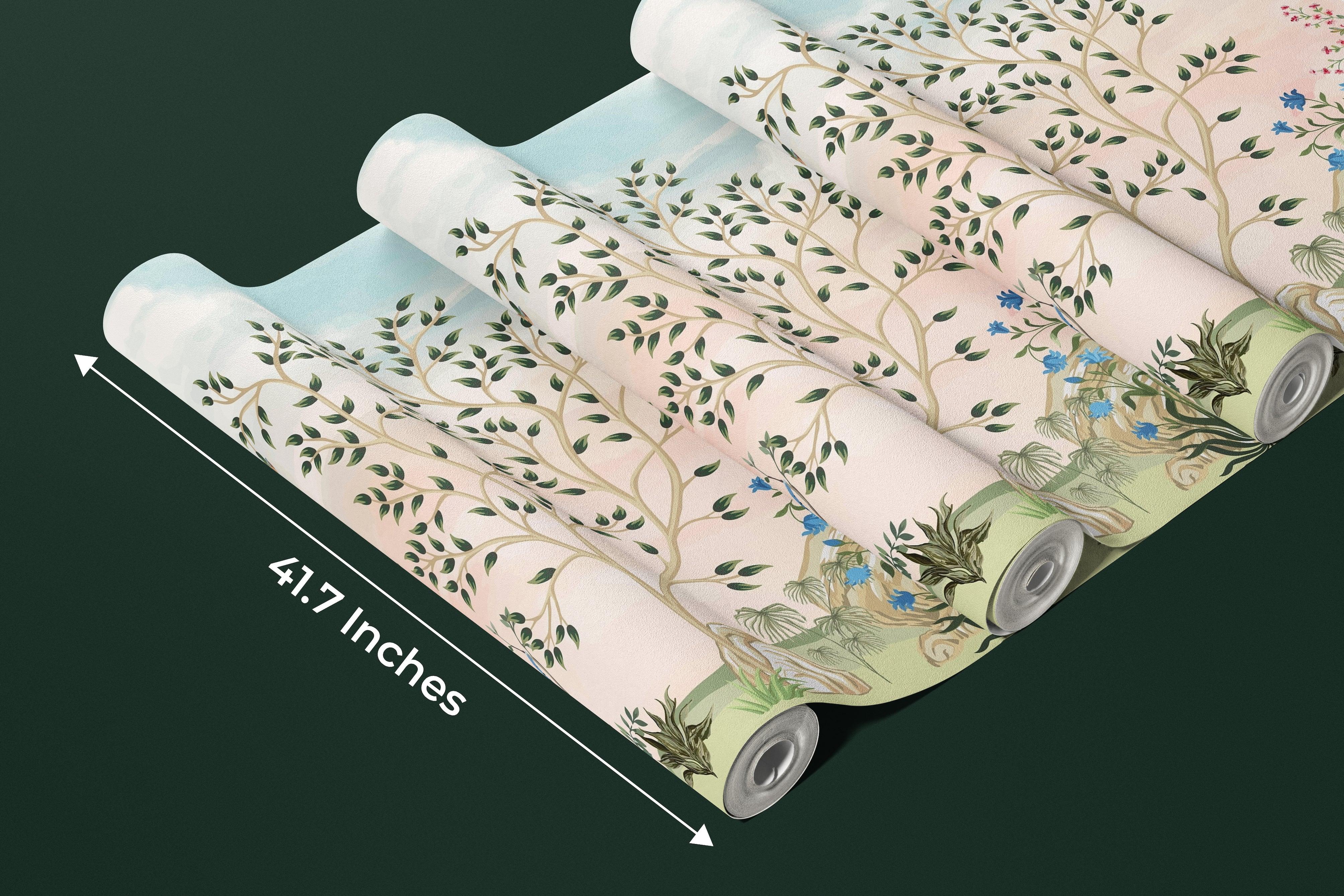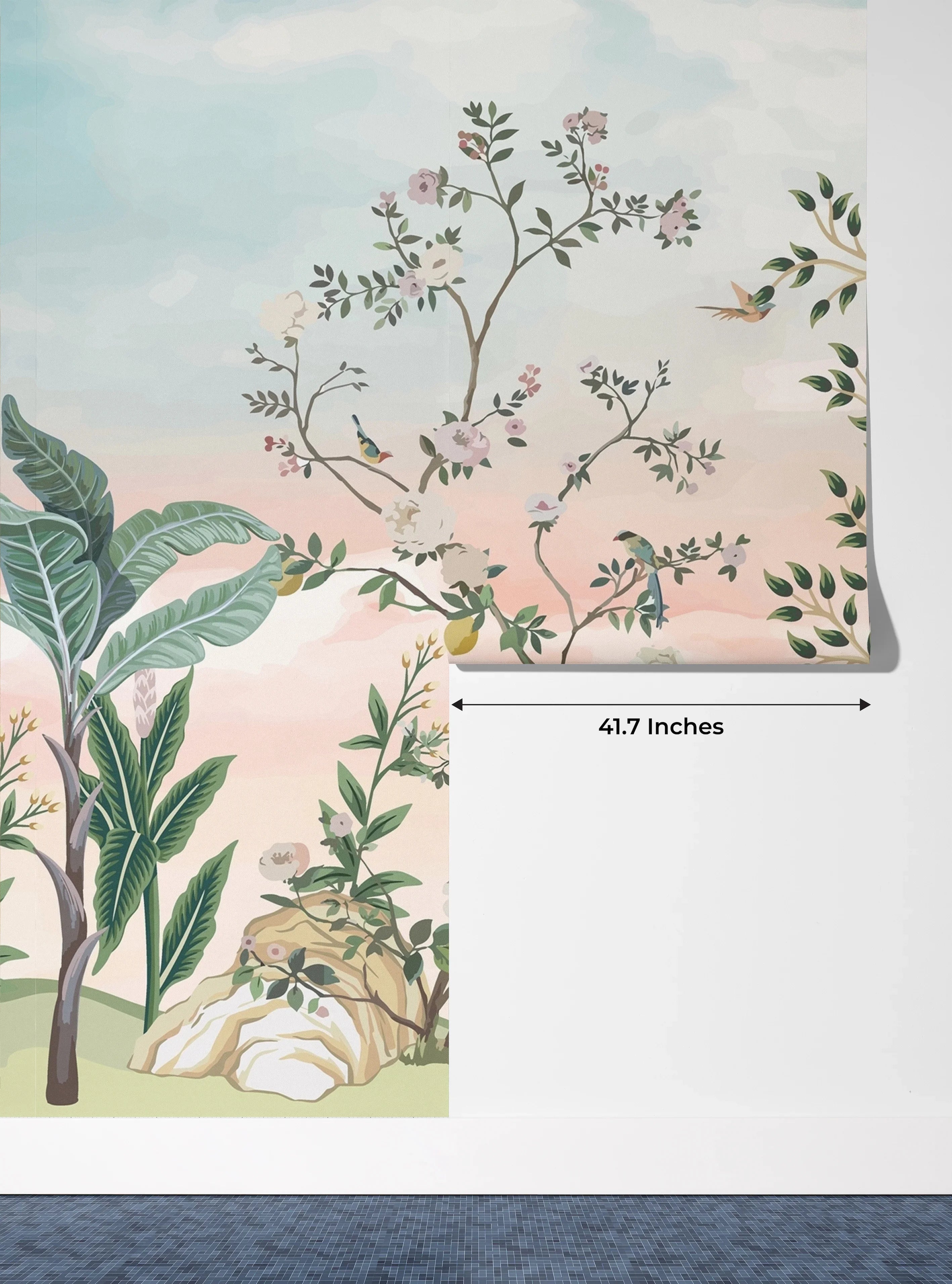 Chinoiserie Wallpaper, Floral Trees Mural, Oversized Custom Size Wall Art, Non-Woven, Non-Adhesive, Modern Wall Paper, Removable