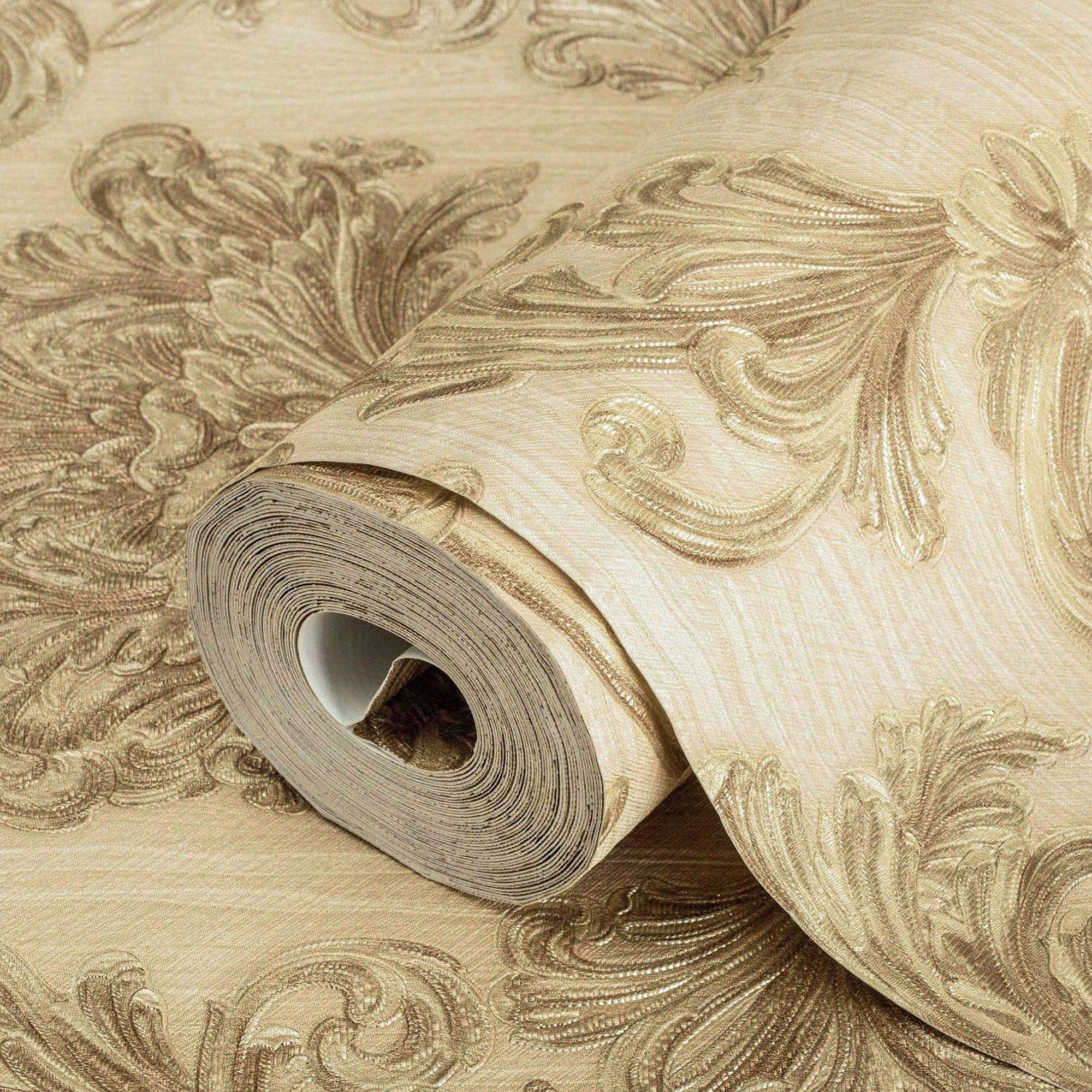 Elegant Damask Embossed Wallpaper, Beige 3D Textured Wallcovering, Traditional, Extra Large 114 sq ft Roll, Stylish Wallpaper, Luxury Floral