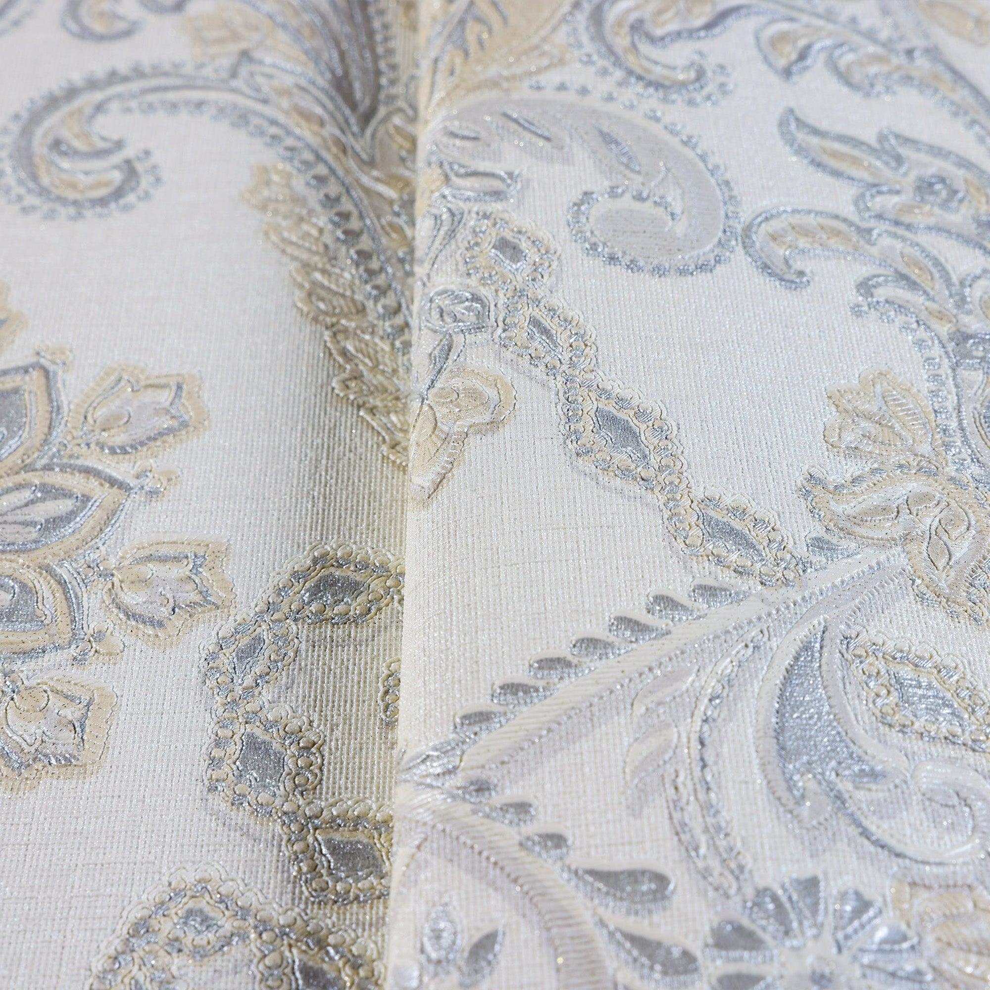 Luxury Deep Embossed Striped Wallpaper, Shiny Light Color Damask 3D Textured Wallcovering, Traditional, Large 114 sq ft Roll, Accent Wall