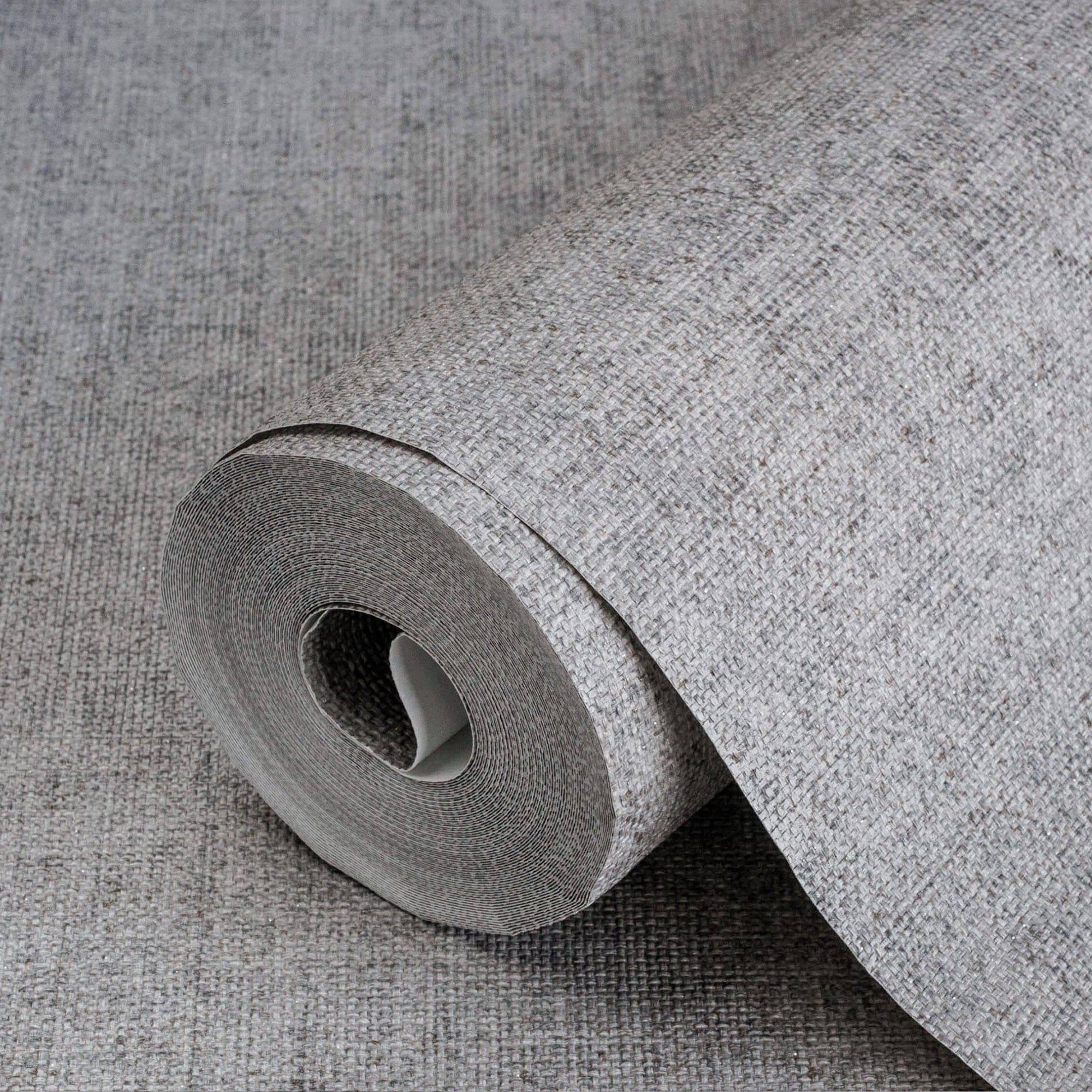 Gray Sparkling Linen Texture Textured Wallpaper, Classical Woven Fabric Decorative Wallcovering