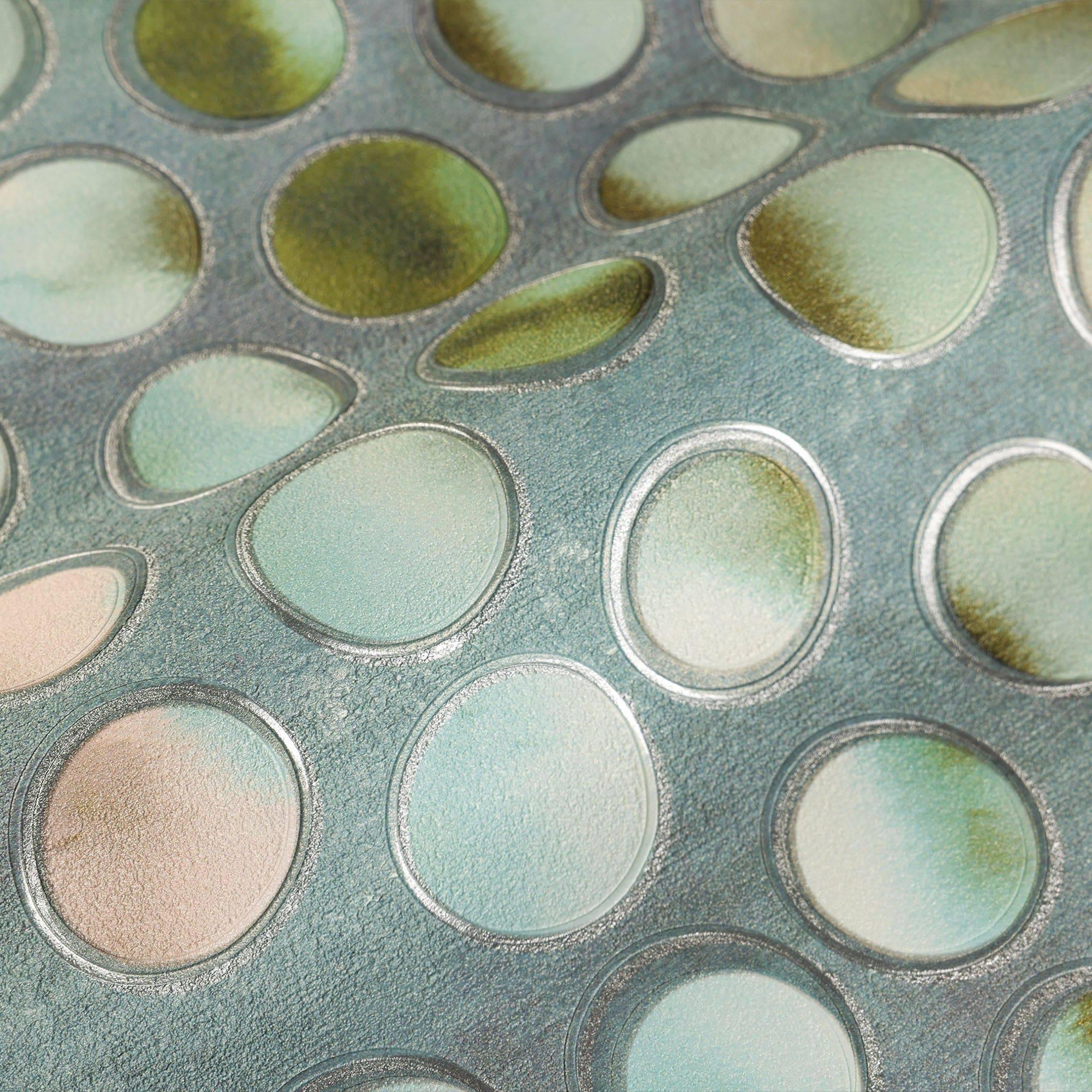 Modern Circles Geometric Wallpaper, Rich Textured Embossed Wallcovering, Traditional, Luxury Wallpaper, Extra Large 114 sq ft Roll, Green