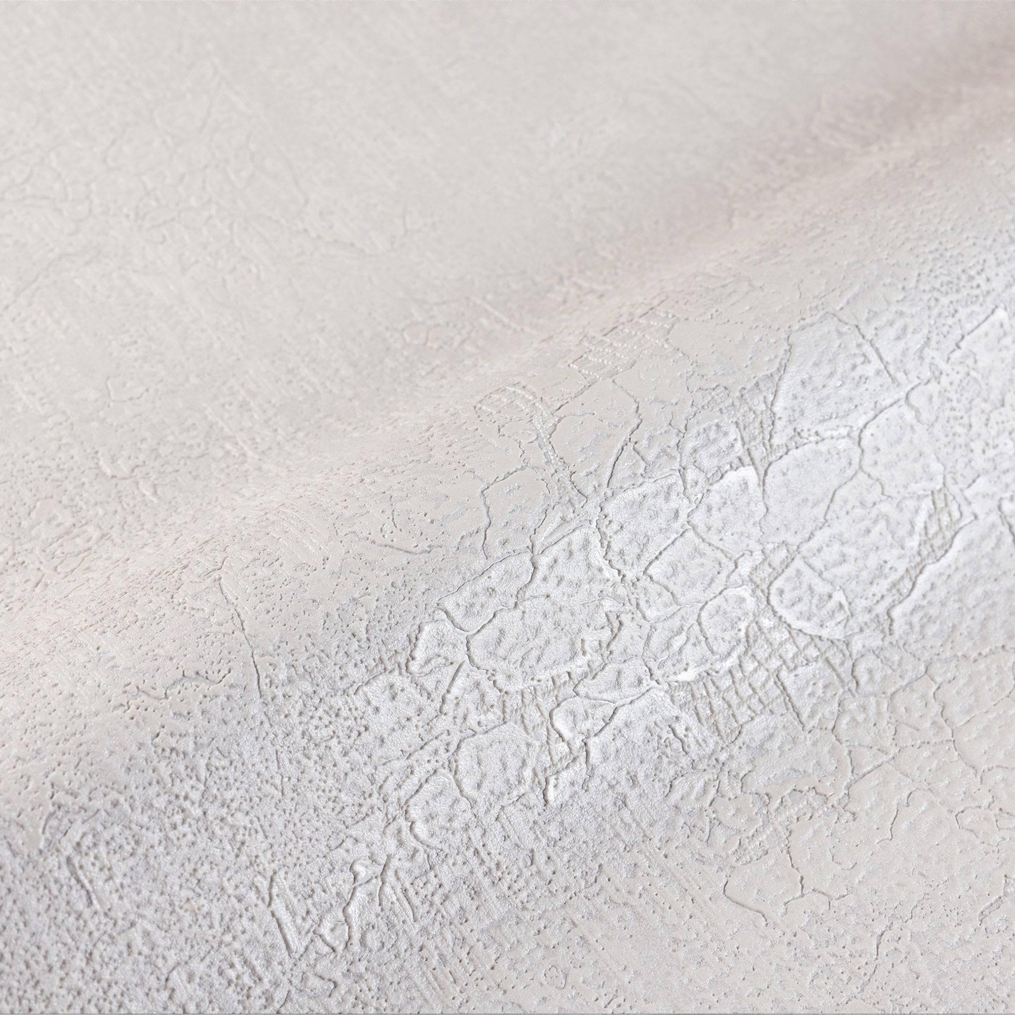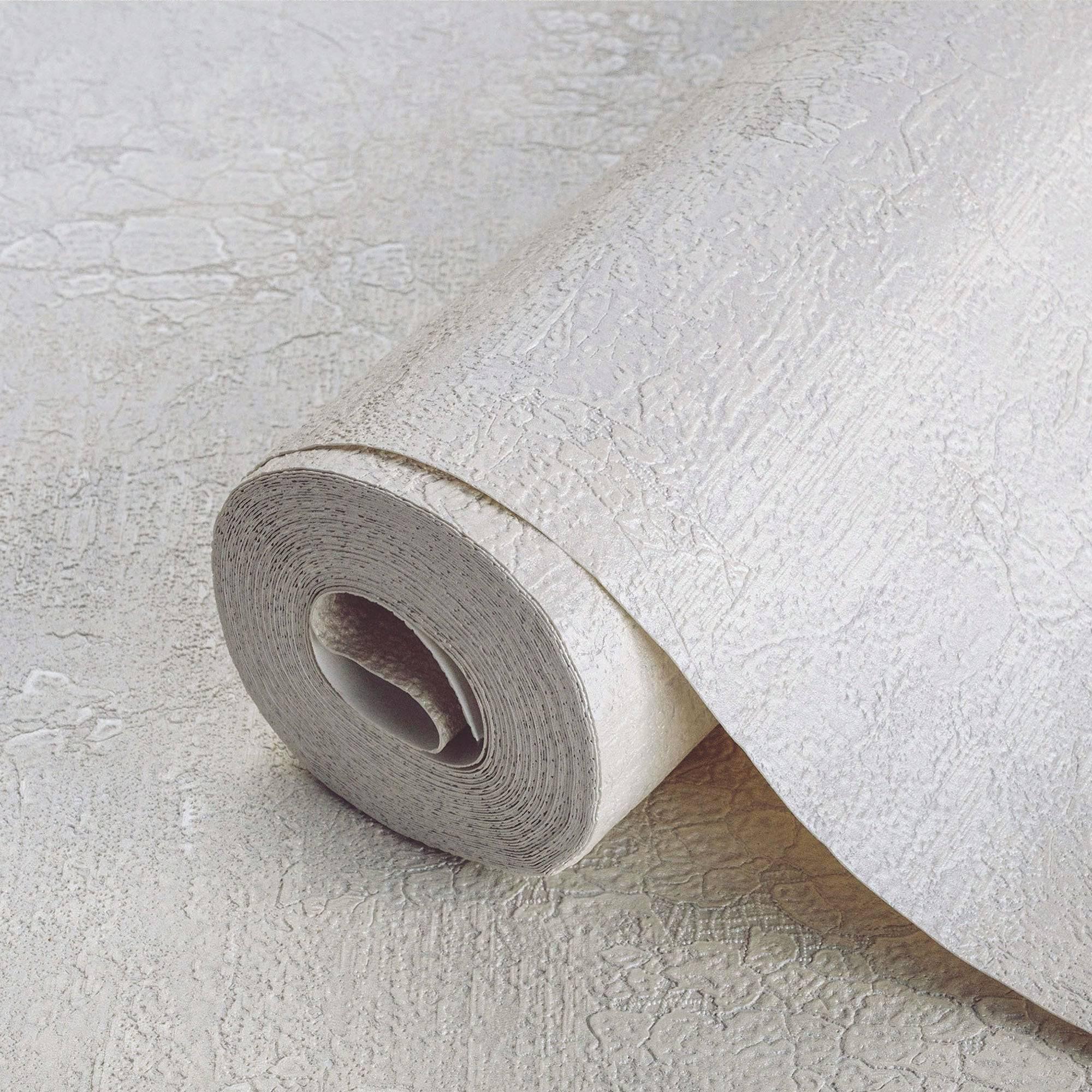 Ivory Distressed Solid Color Wallpaper, 3D Embossed Shiny Wallcovering, Weathered Effect