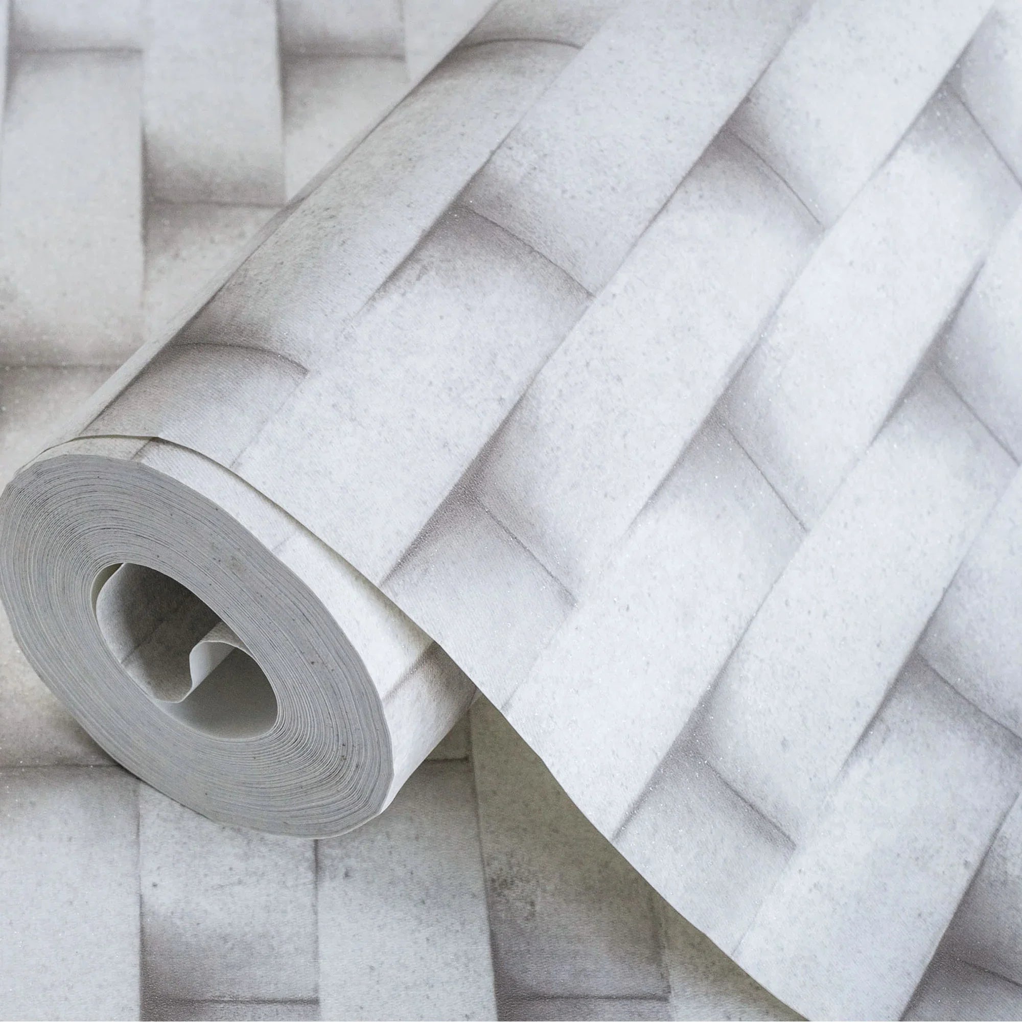 Wall Brick Embossed Cubic Geometric Wallpaper, Home Wall Decor, Aesthetic Wallpaper, Textured Wallcovering Non-Adhesive and Non-Peel