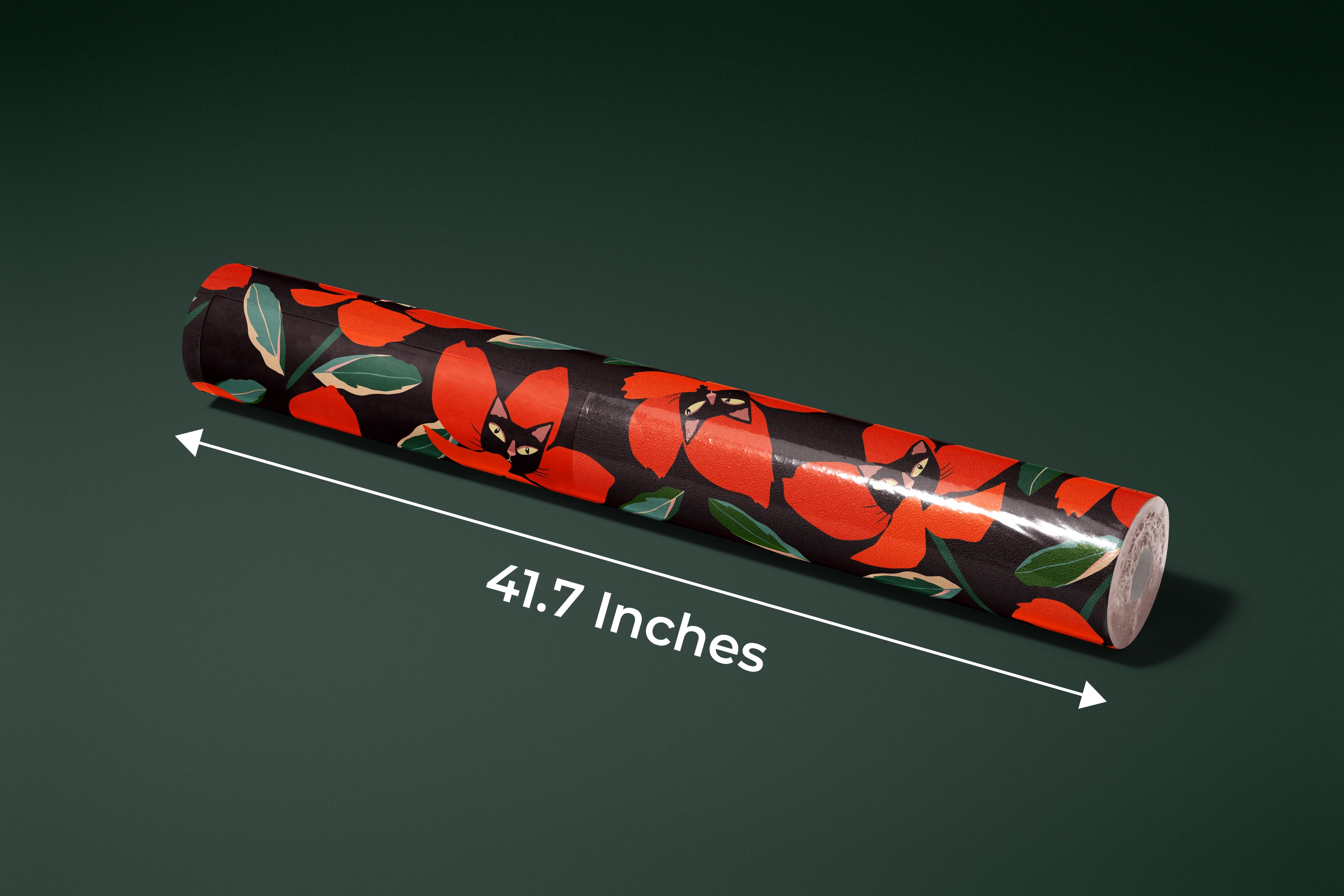 Red Floral, Kittens Wallpaper, Seamless Pattern Mural, Oversized Custom Size Wall Art, Non-Woven, Non-Adhesive, Modern Wall Paper, Removable