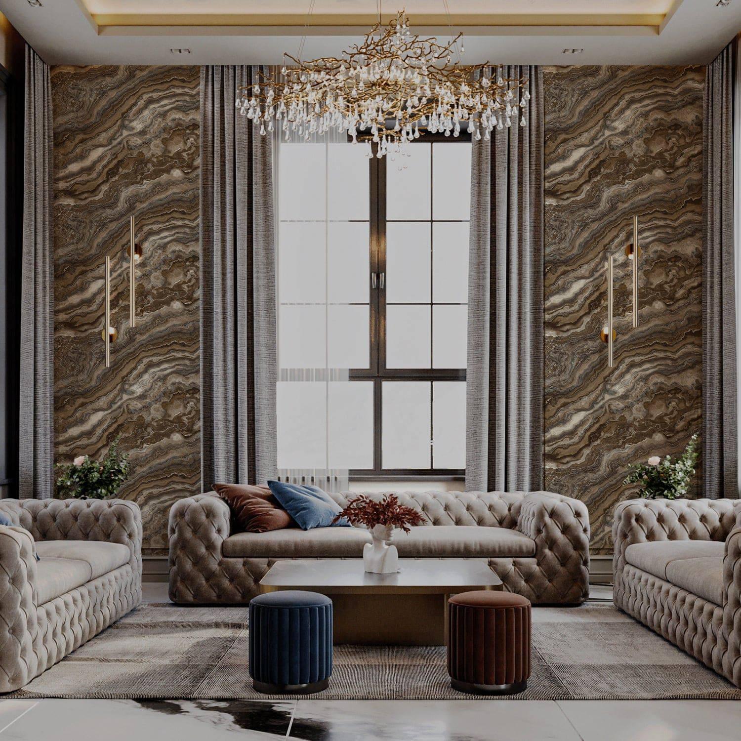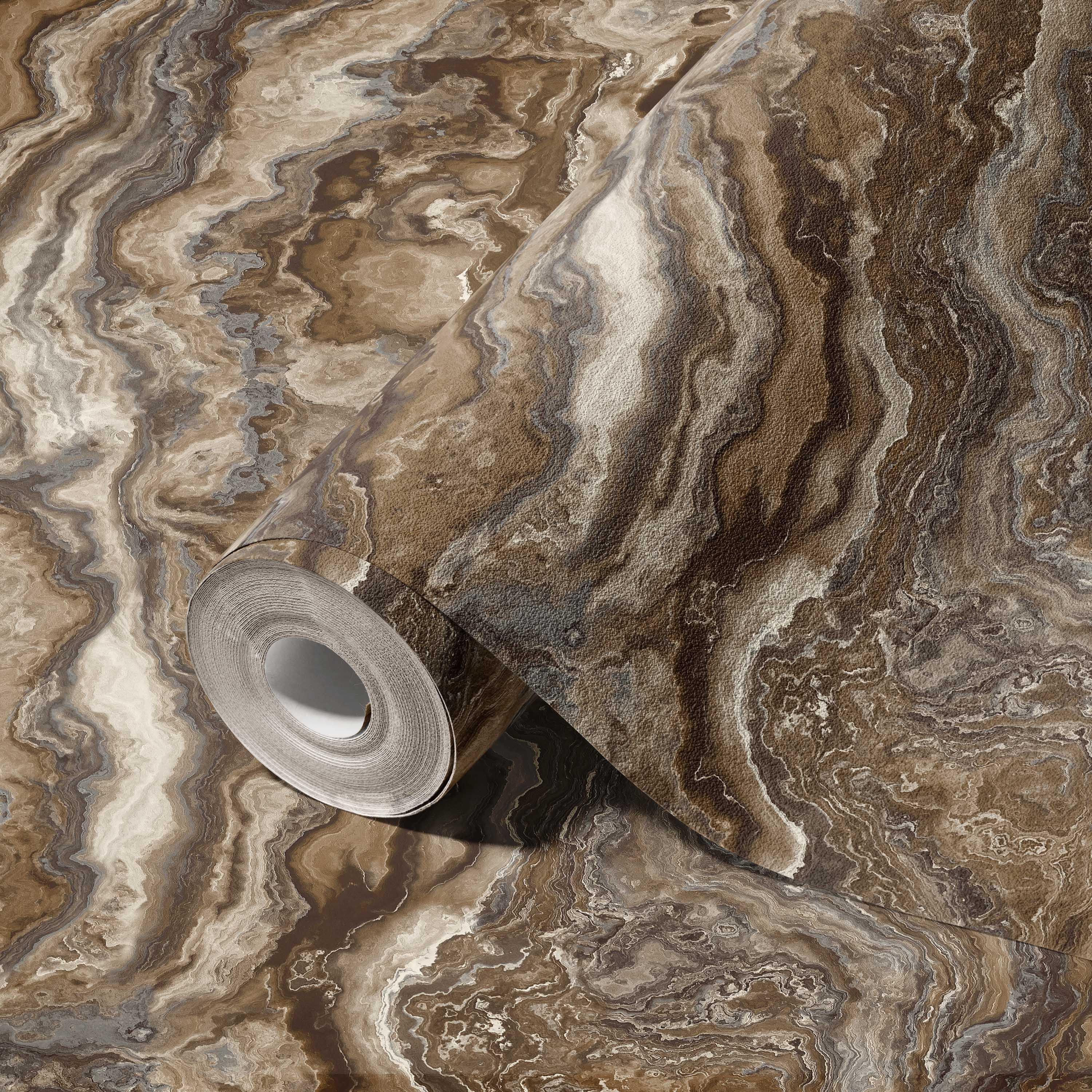 Modern Dark Marble Shiny Wallpaper, Home Wall Decor, Brown Luxury Modern Wallpaper, Textured Wallcovering Non-Adhesive, Large 177 sq ft Roll