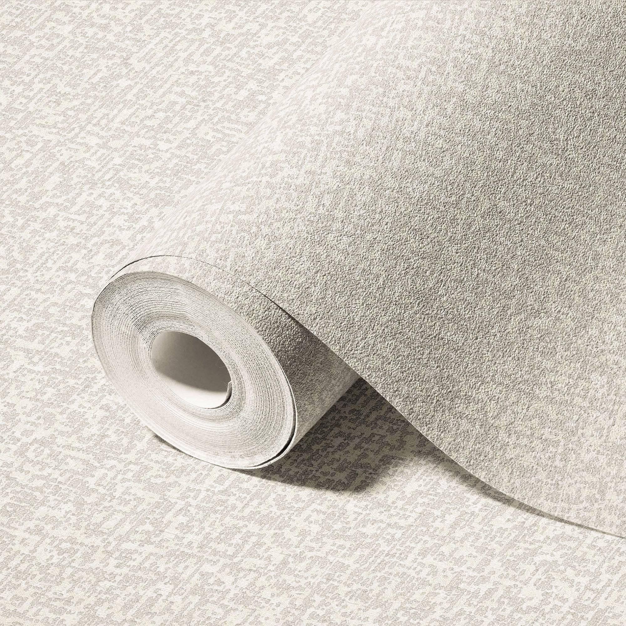 Ivory Distressed Solid Color Wallpaper, 3D Embossed Shiny Wallcovering, Weathered Effect