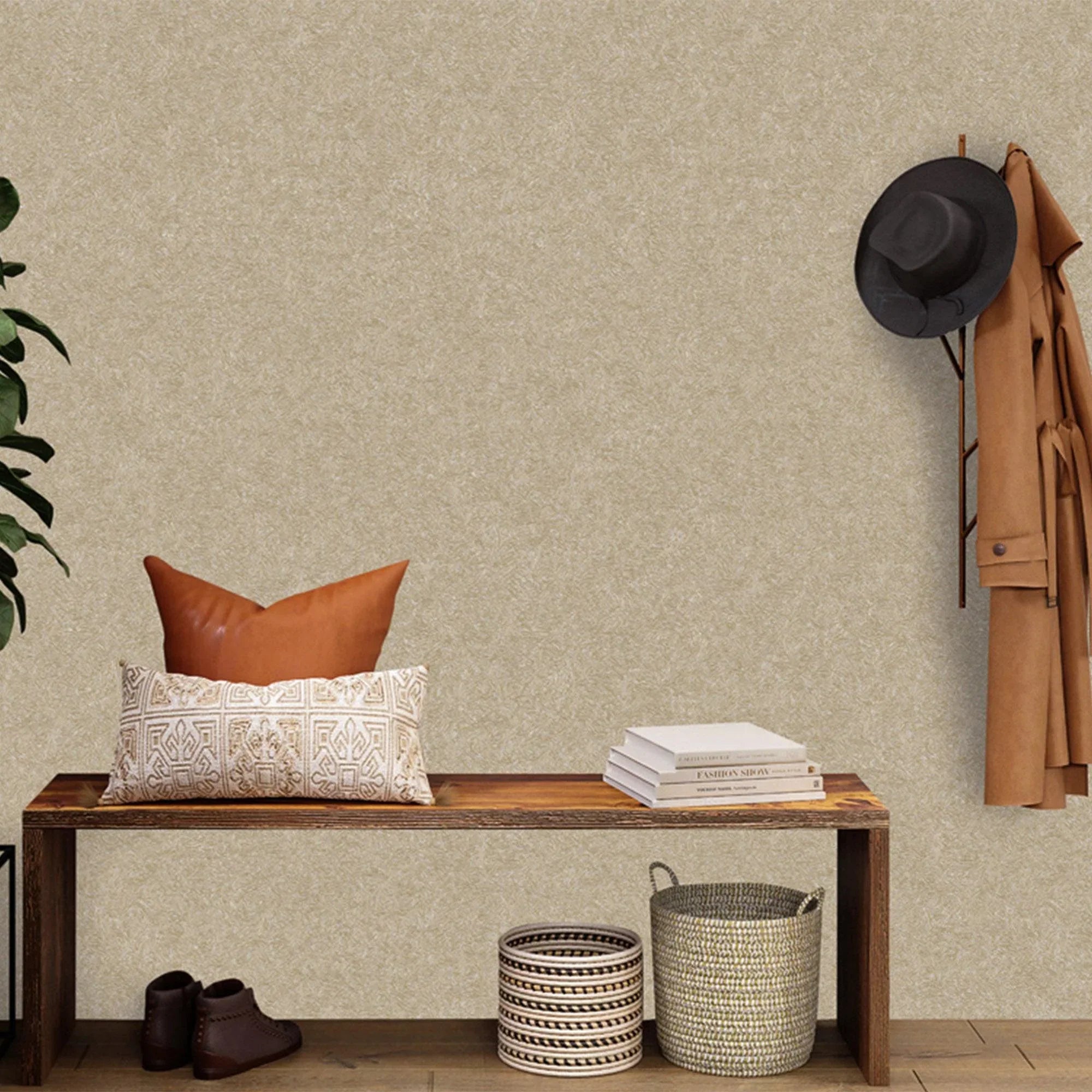Chic 3D Embossed Wallpaper, Beige Glittering Solid Color Modern Wall Paper for Home and Commercial Use, Non-Woven