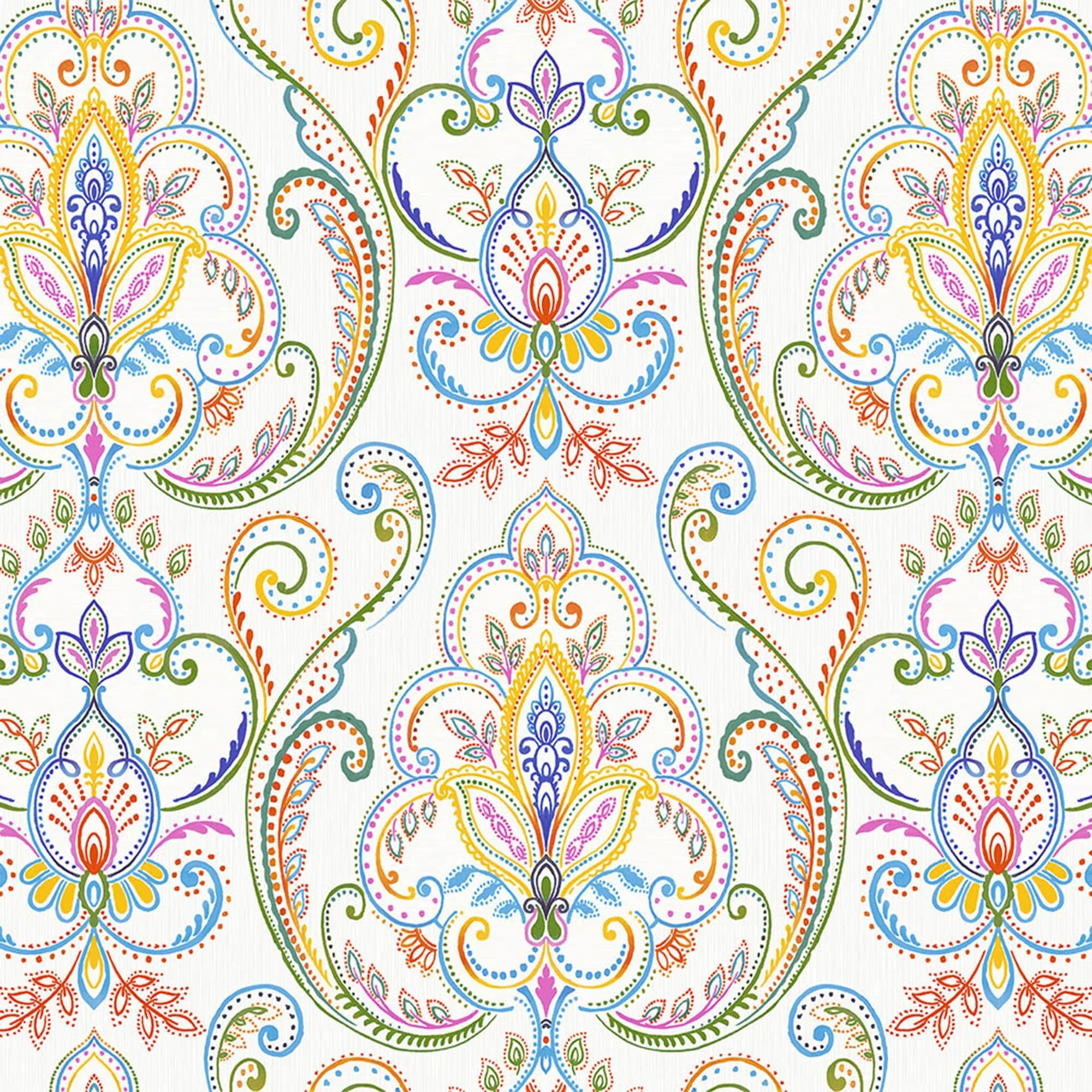 White Elegant Damask 3D Embossed Wallpaper, Vibrant Colors Textured Luxury Wallpaper