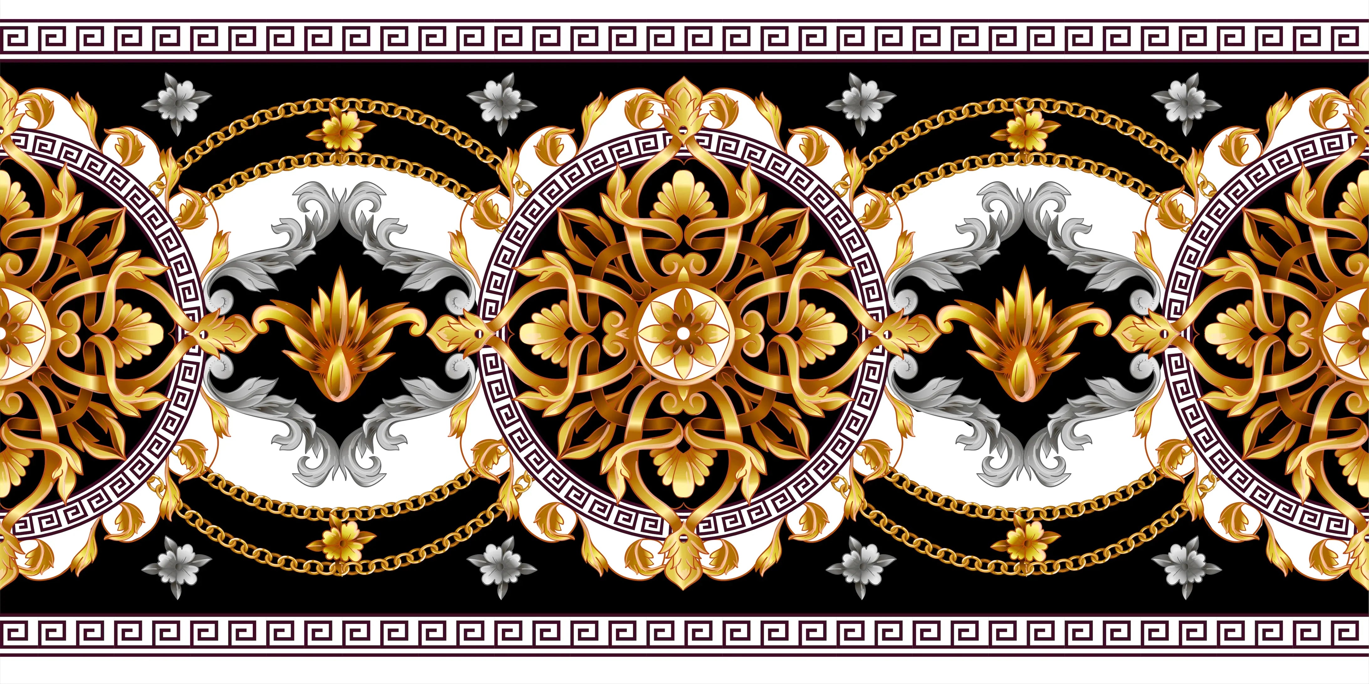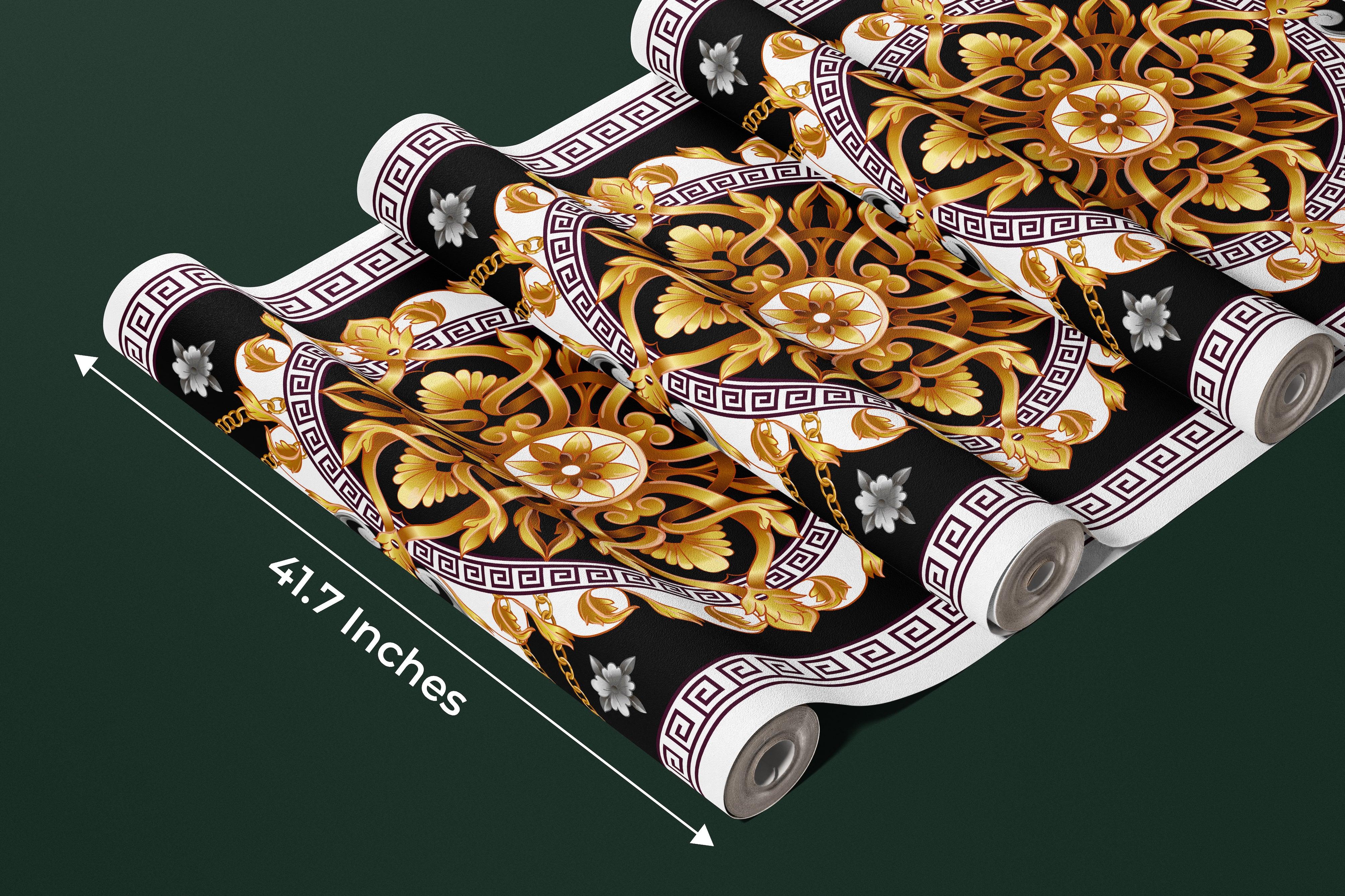 Golden Baroque Wallpaper, Black Background Mural, Oversized Custom Size Wall Art, Non-Woven, Non-Adhesive, Modern Wall Paper, Removable