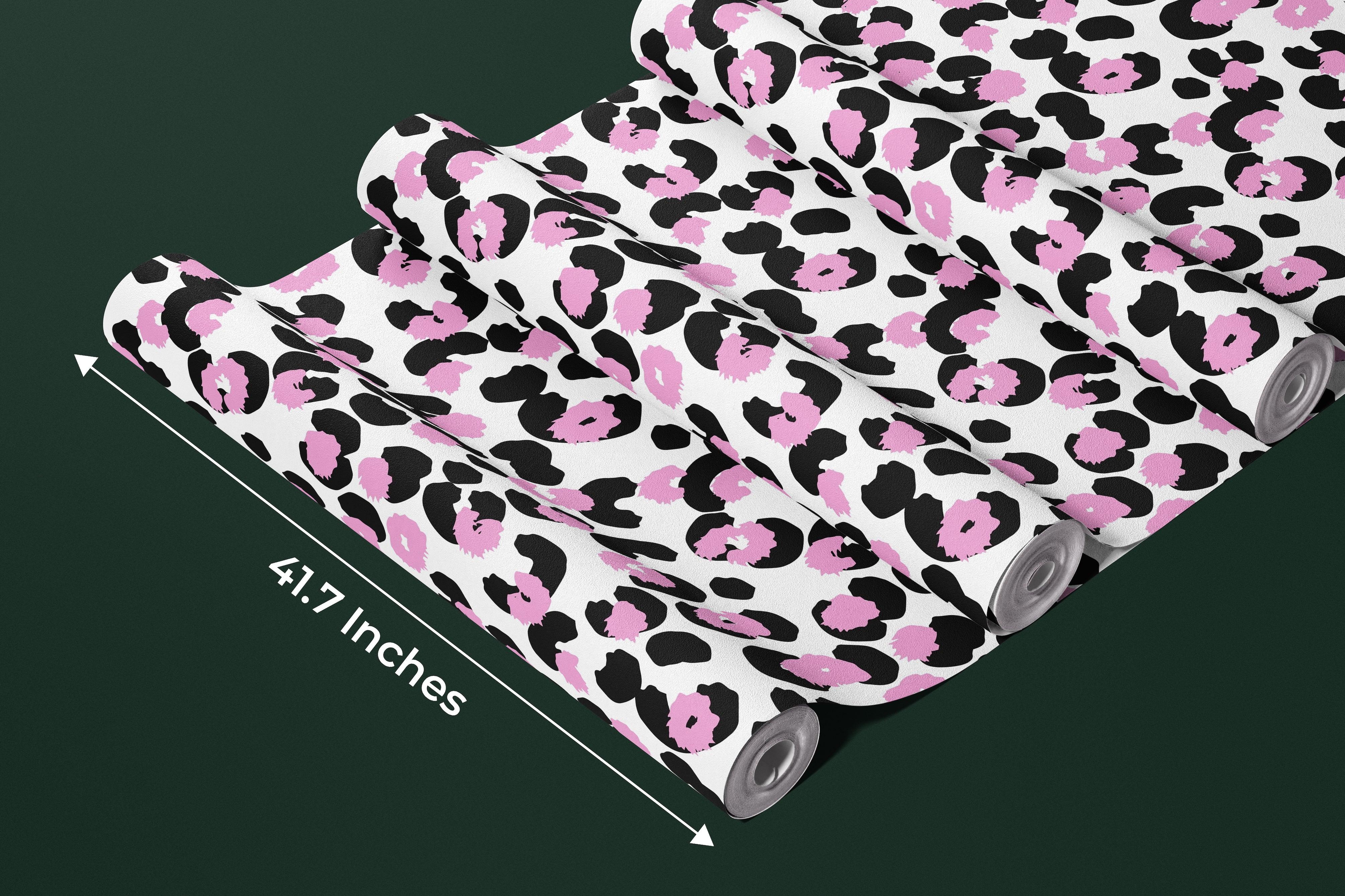 Pink and Black Leopard Wallpaper, Seamless Pattern Mural, Oversized Custom Size Wall Art, Non-Woven, Non-Adhesive, Modern Wall Paper, Removable