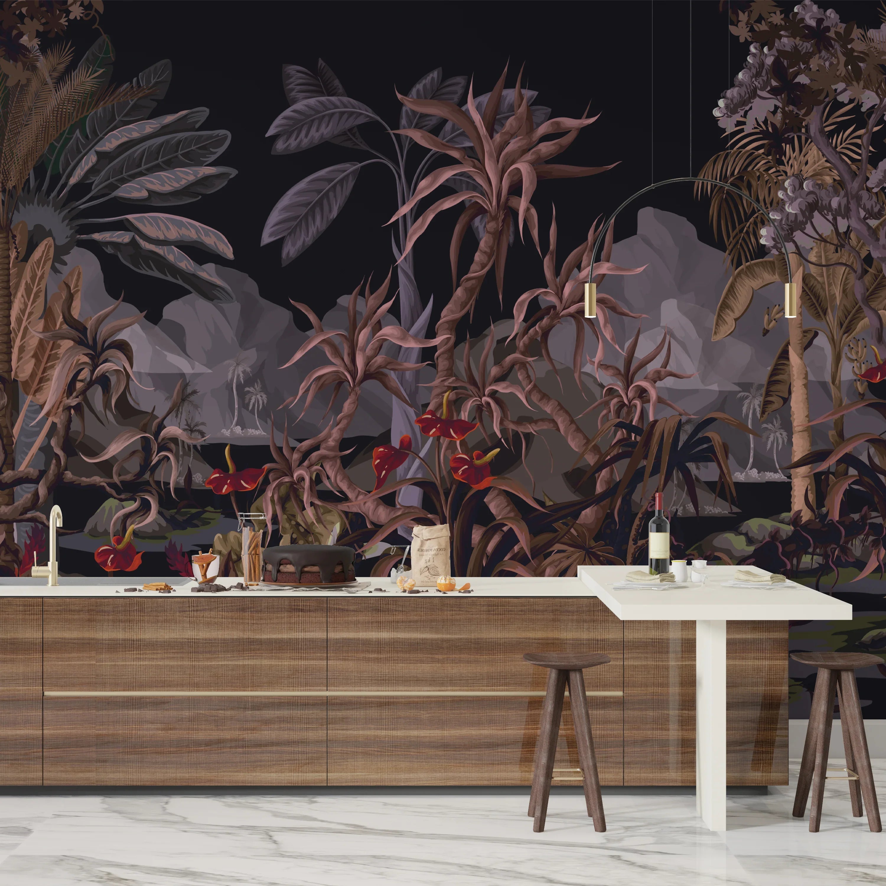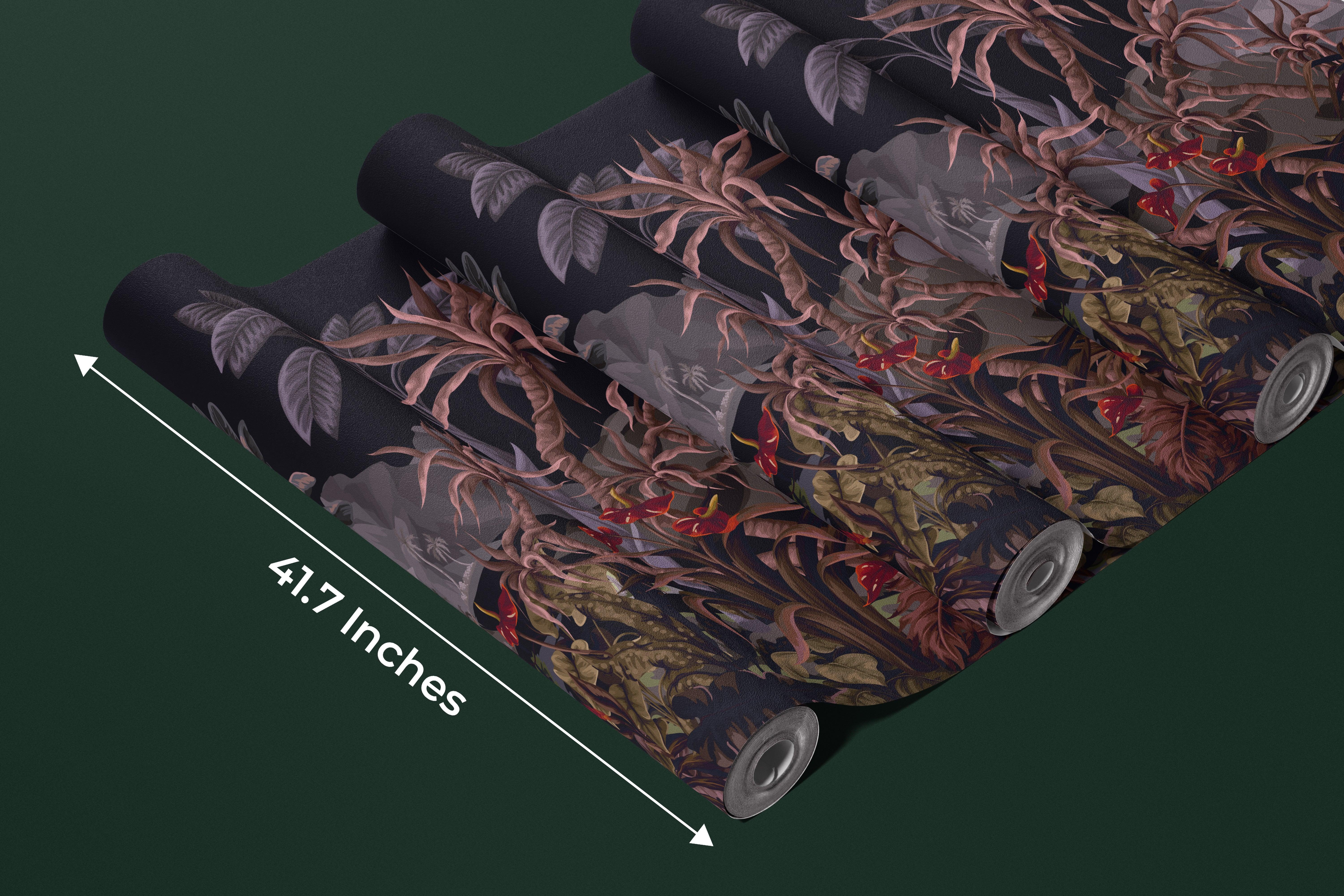 Dark Jungle Landscape Wallpaper, Tropical Trees Wall Mural, Oversized Custom Size Wall Art, Non-Woven, Non-Adhesive, Modern Wall Paper, Removable