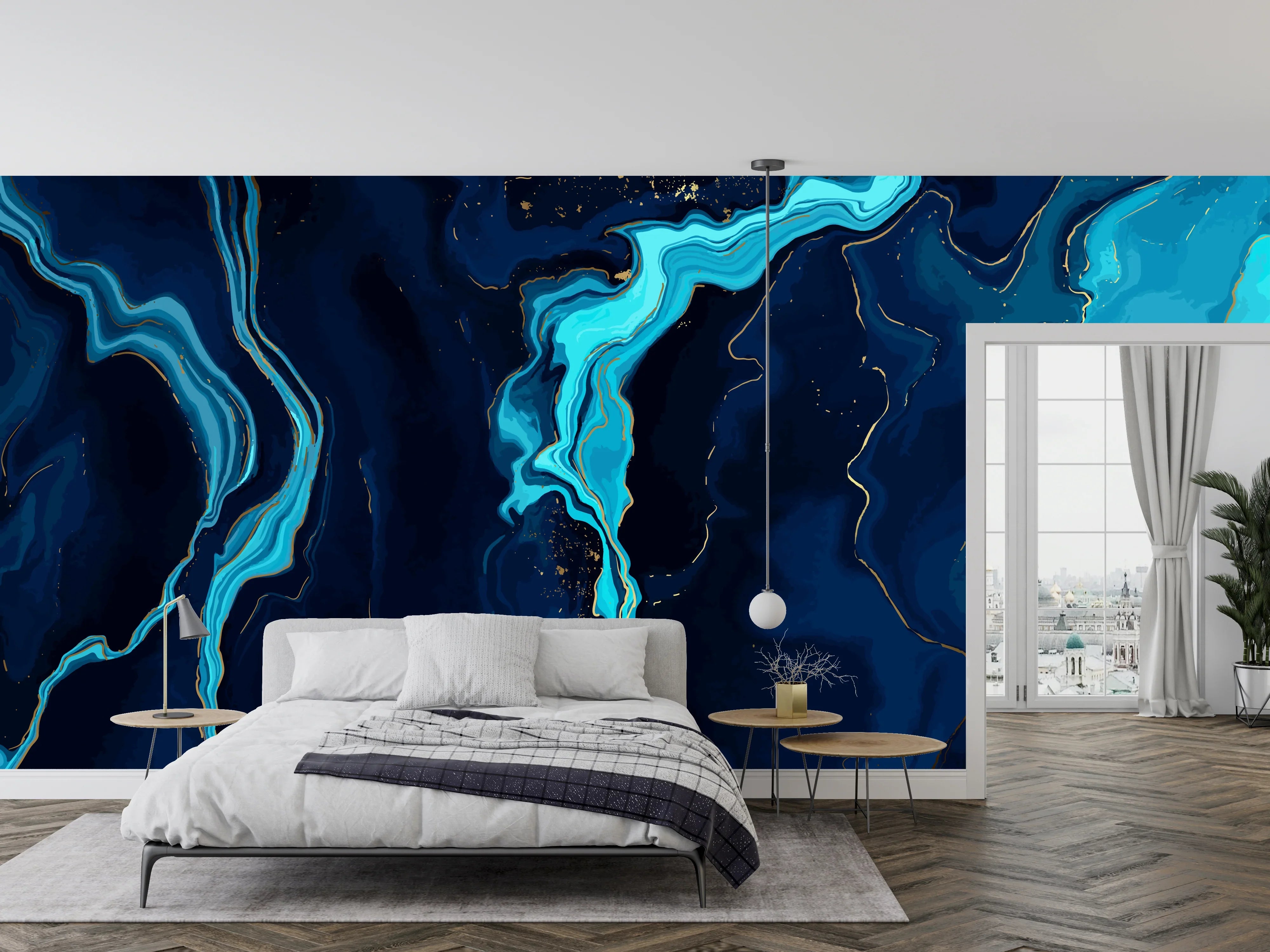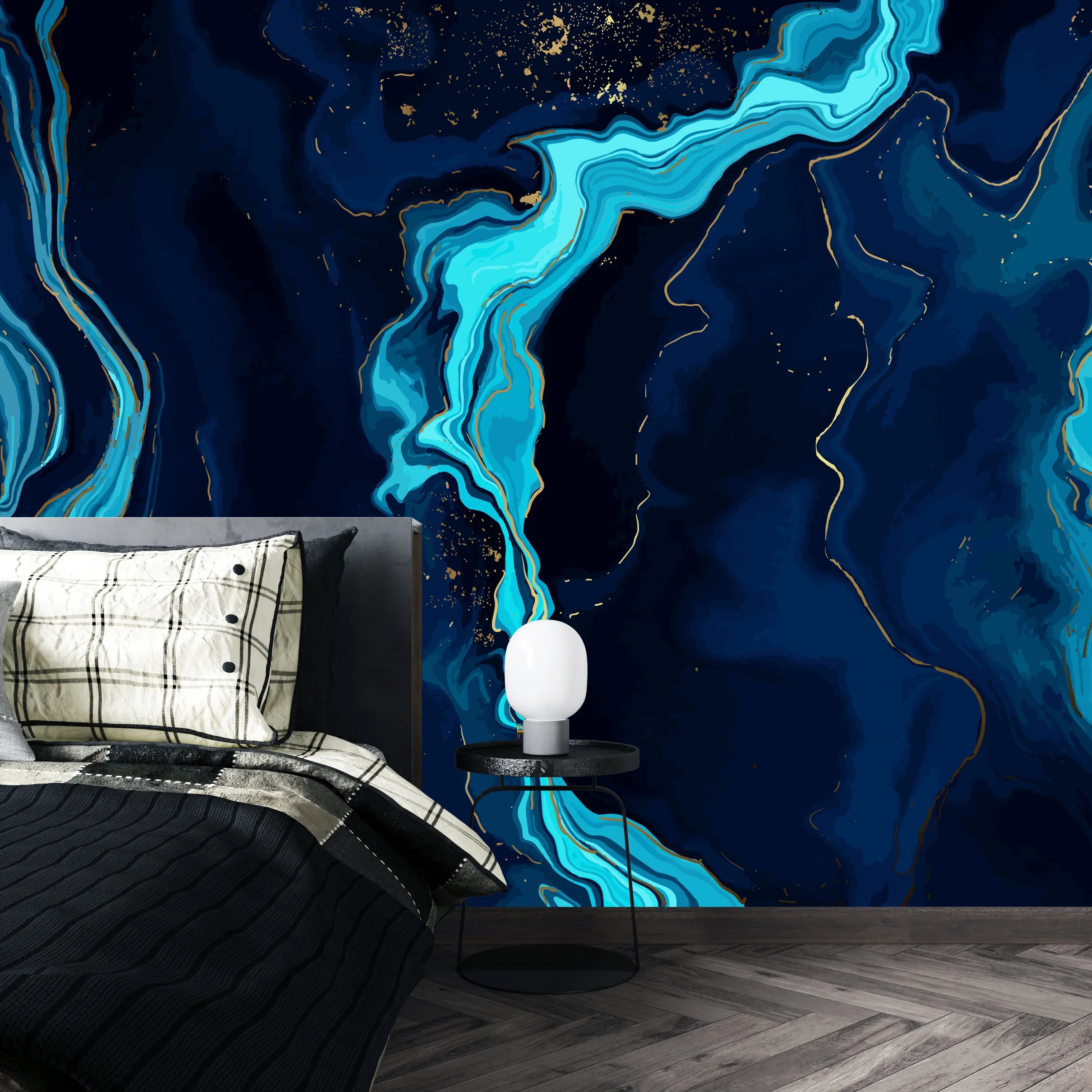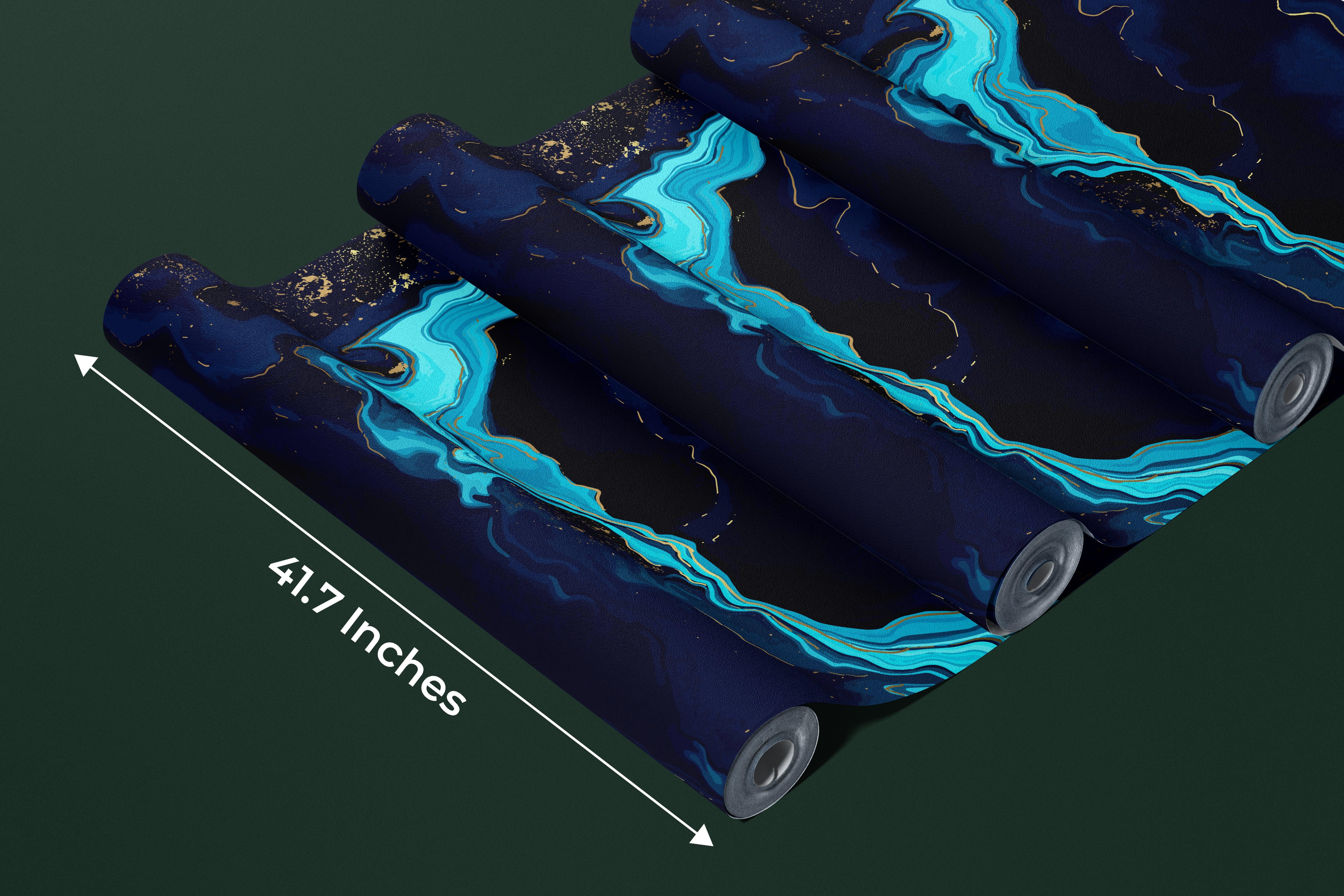 Dark Blue Marble Wallpaper, Gold Abstract Mural, Oversized Custom Size Wall Art, Non-Woven, Non-Adhesive, Modern Wall Paper, Removable