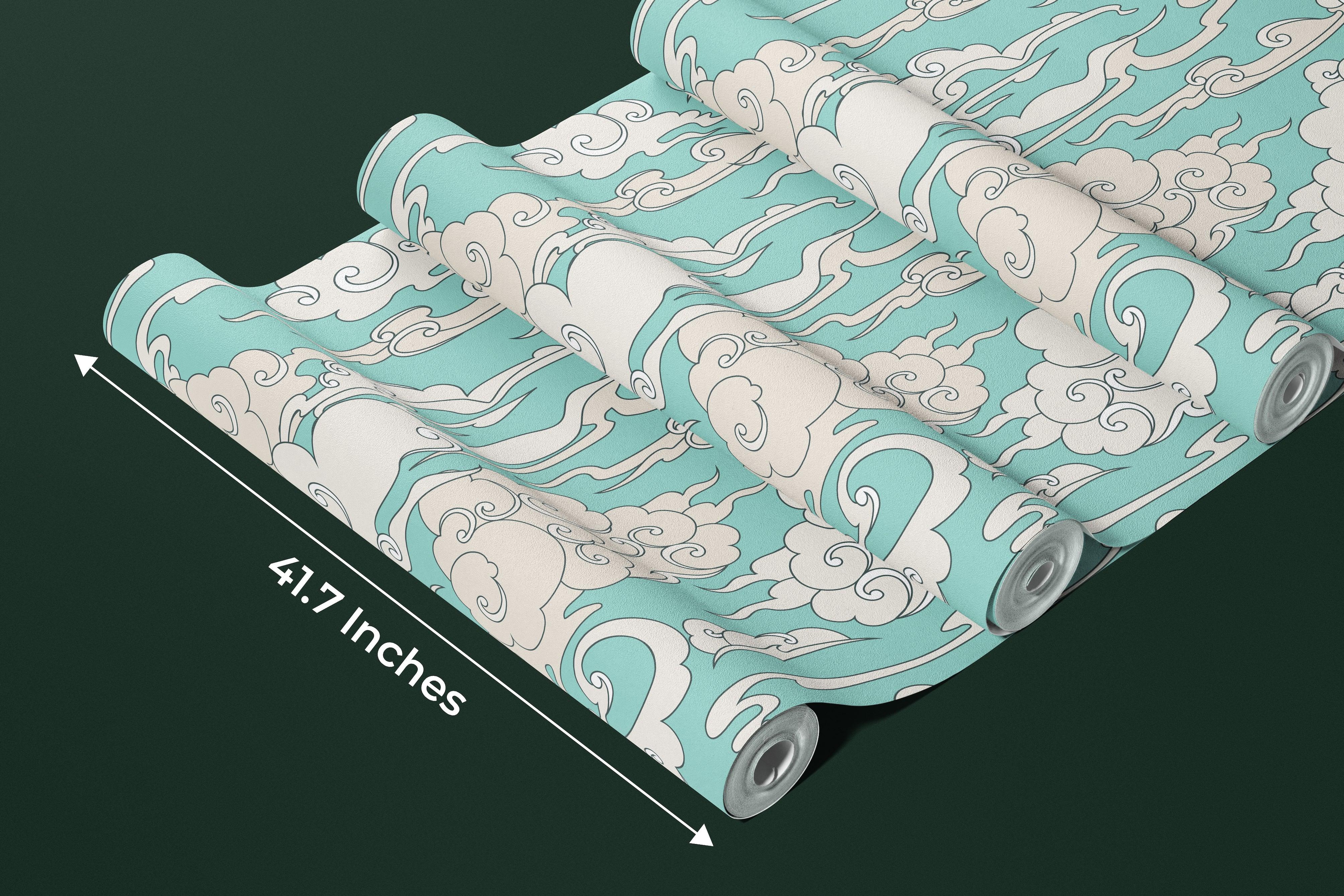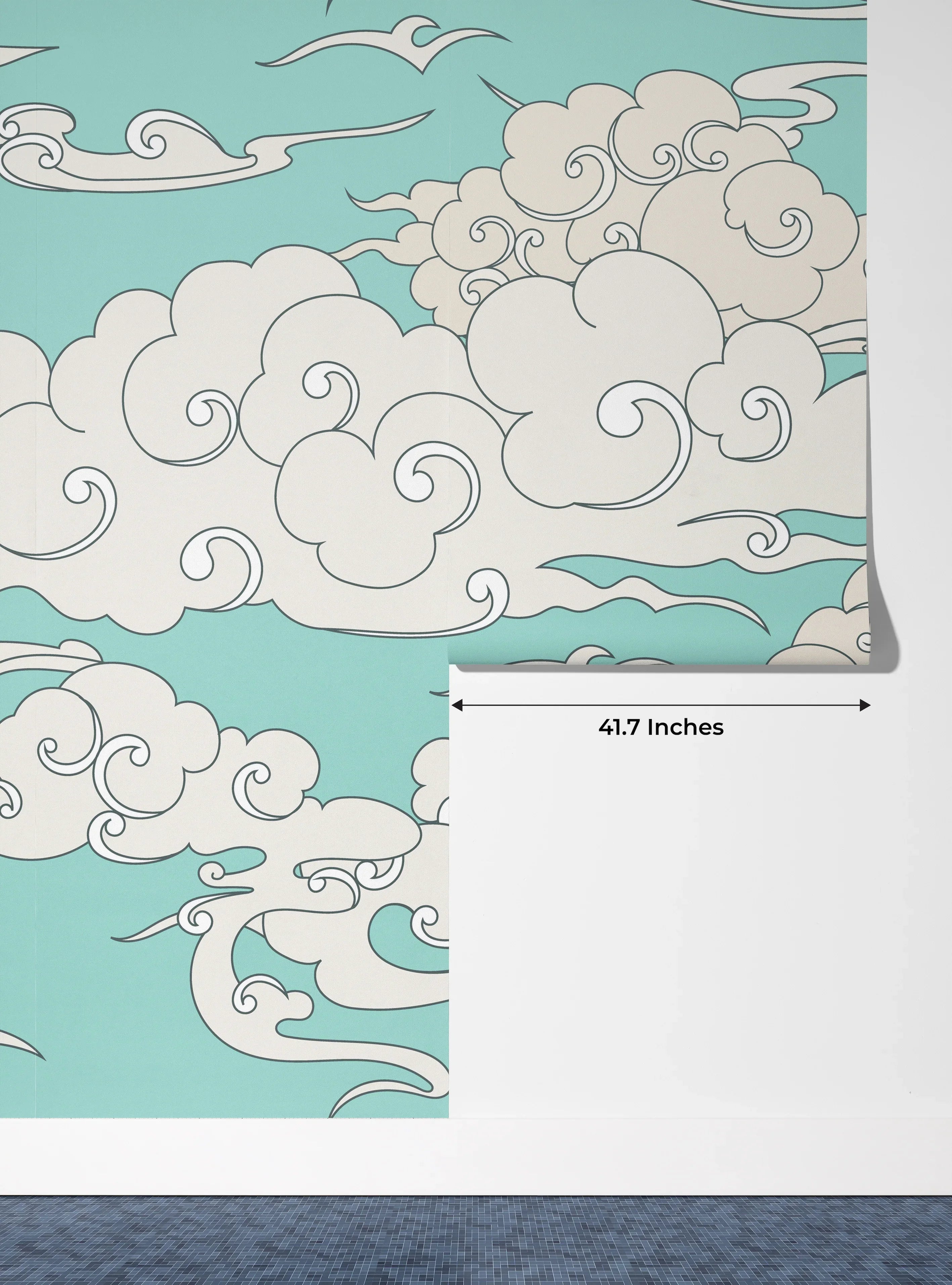 Clouds, Blue Background Wallpaper, Seamless Pattern Mural, Oversized Custom Size Wall Art, Non-Woven, Non-Adhesive, Modern Wall Paper, Removable