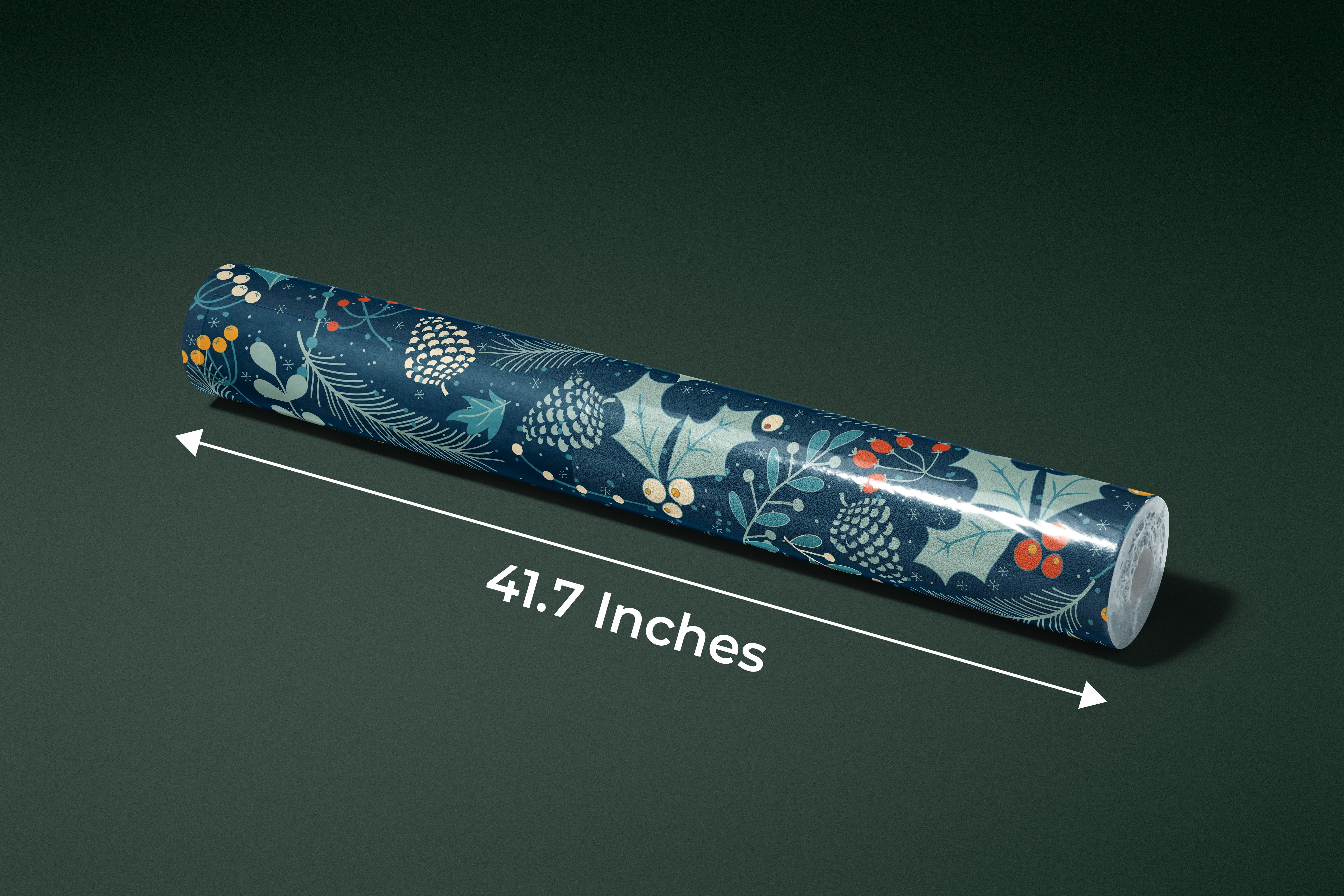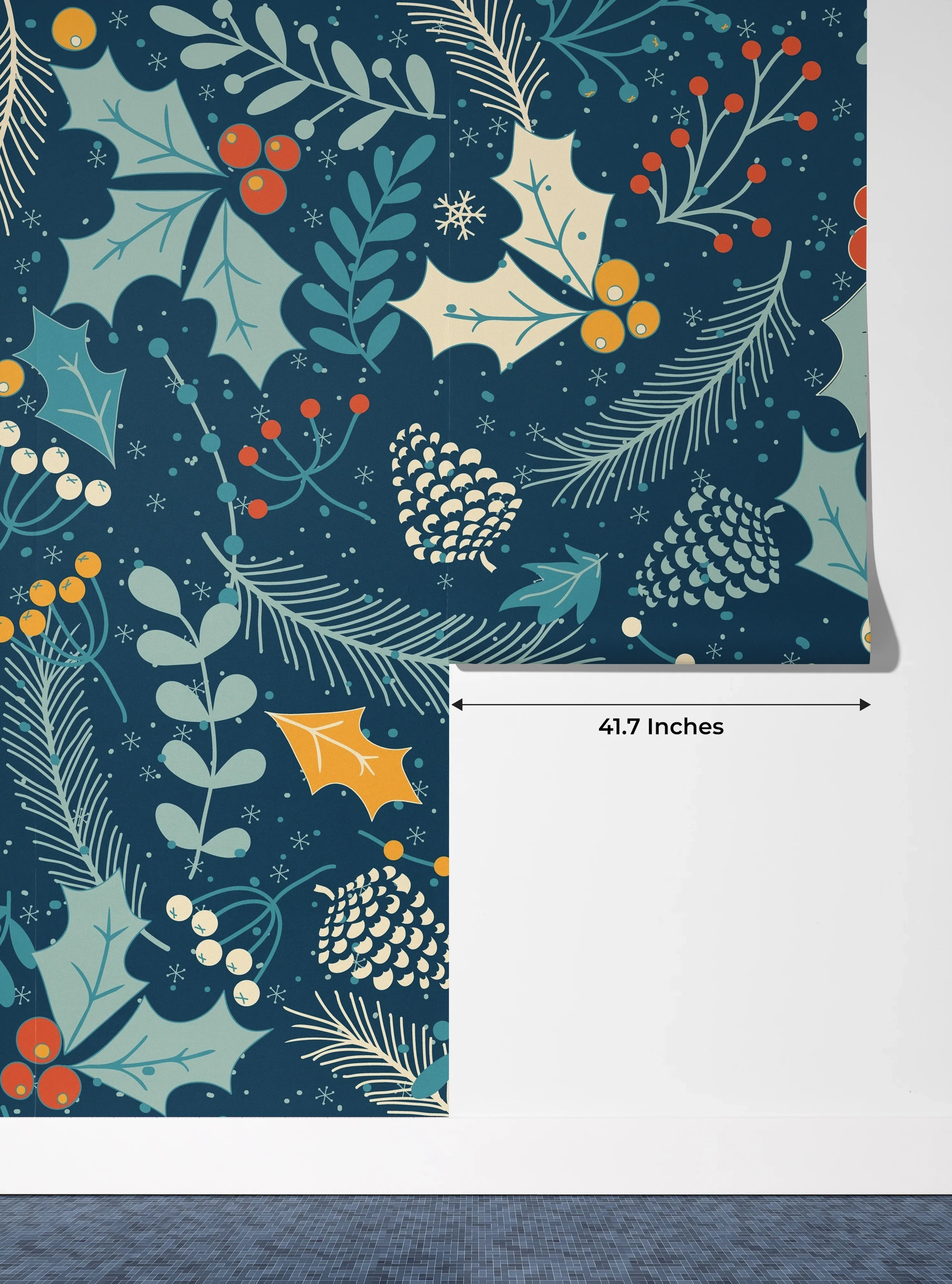 Leaves and Berries, Dark Blue Background Wallpaper, Seamless Pattern Mural, Oversized Custom Size Wall Art, Non-Woven, Non-Adhesive, Modern Wall Paper, Removable
