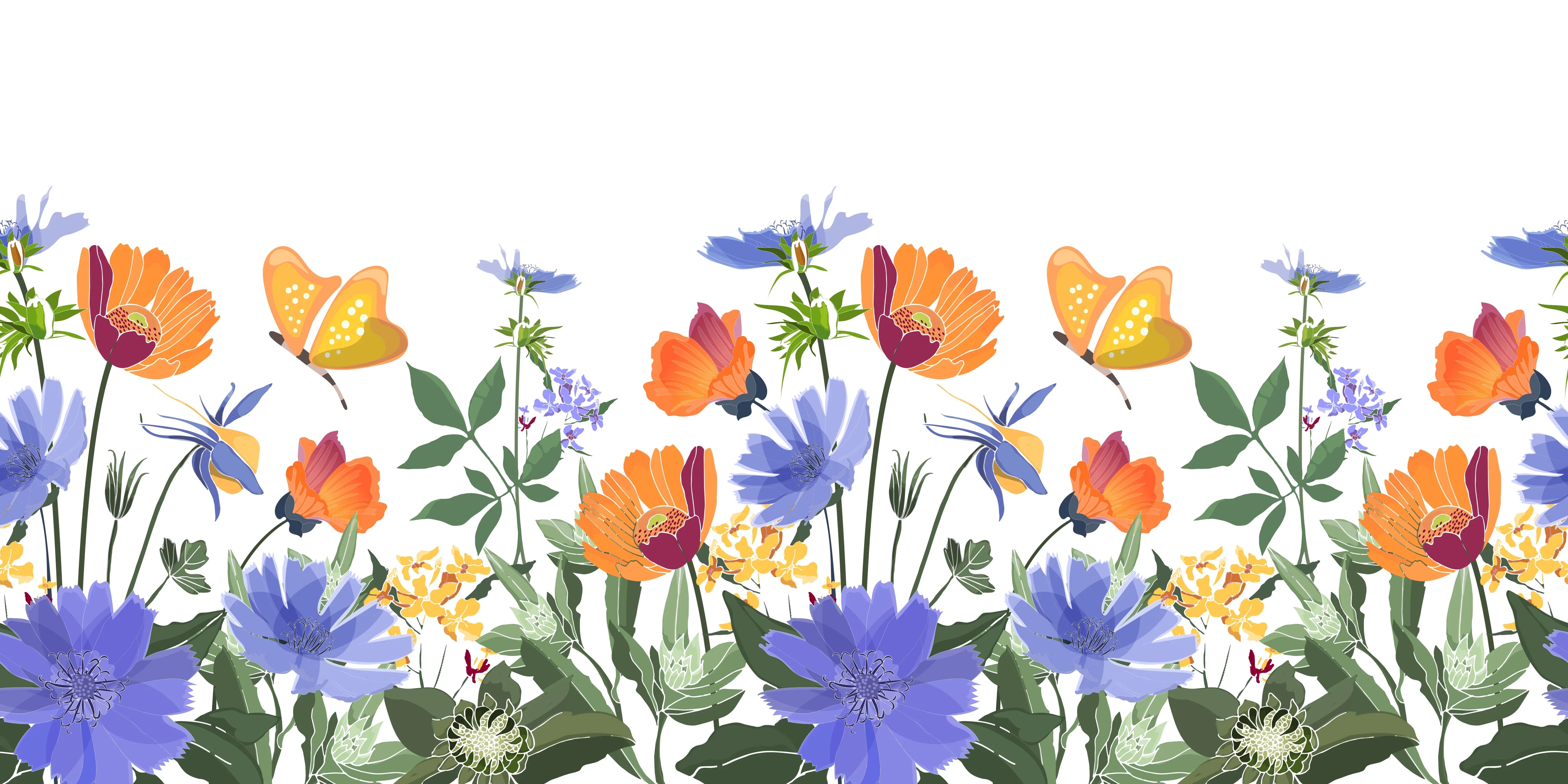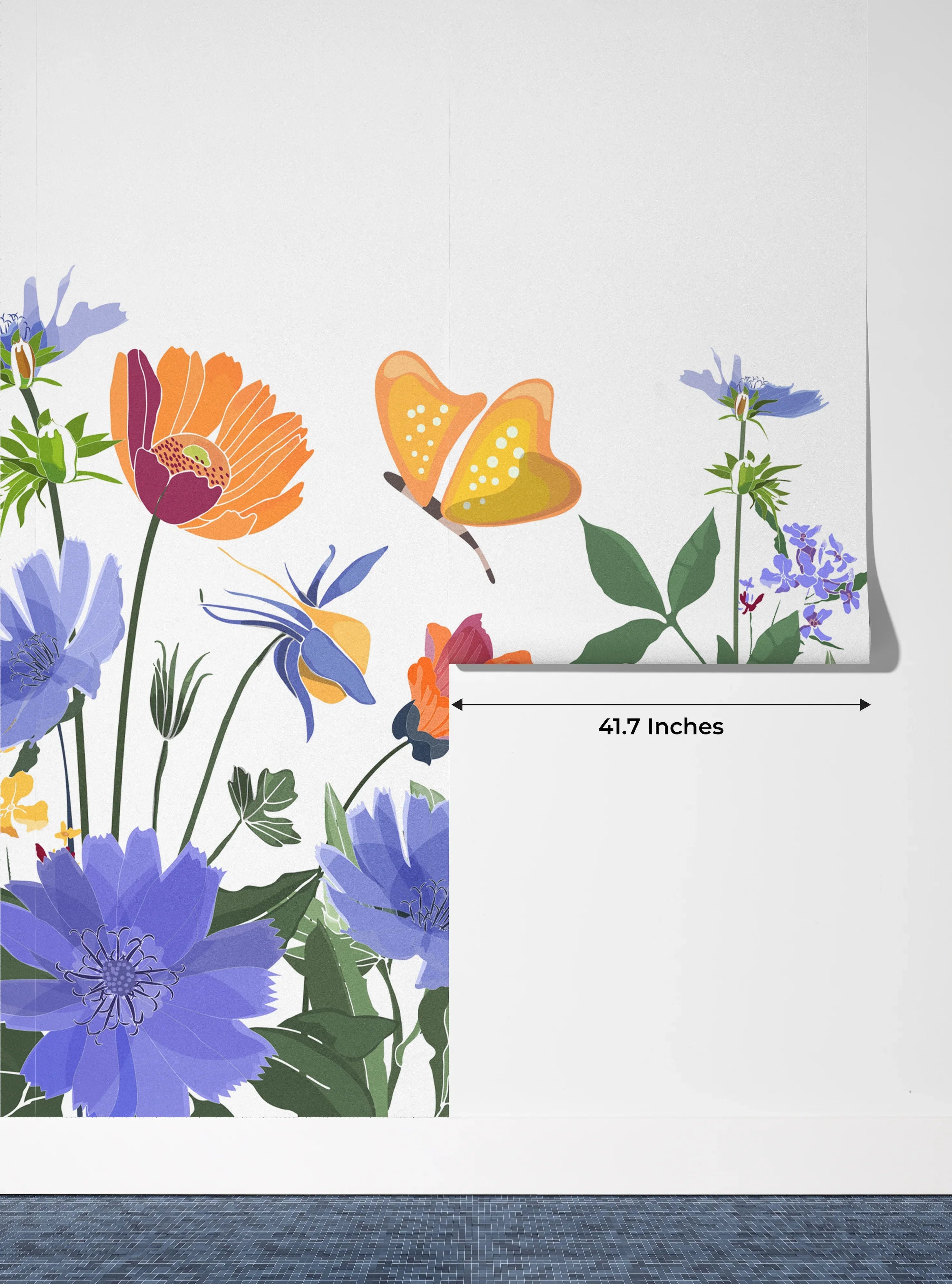 Summer Flowers Wallpaper, Seamless Pattern Mural, Oversized Custom Size Wall Art, Non-Woven, Non-Adhesive, Modern Wall Paper, Removable