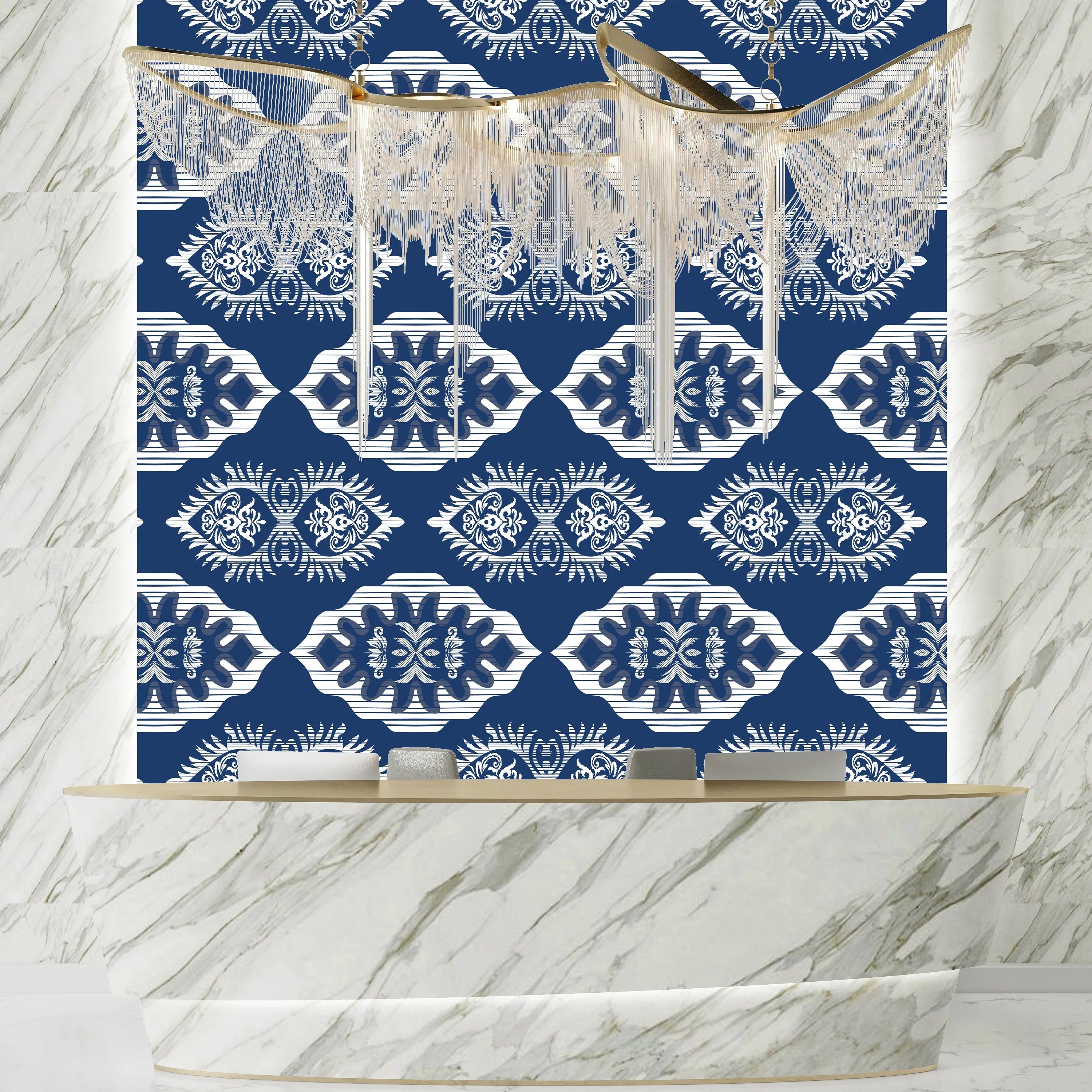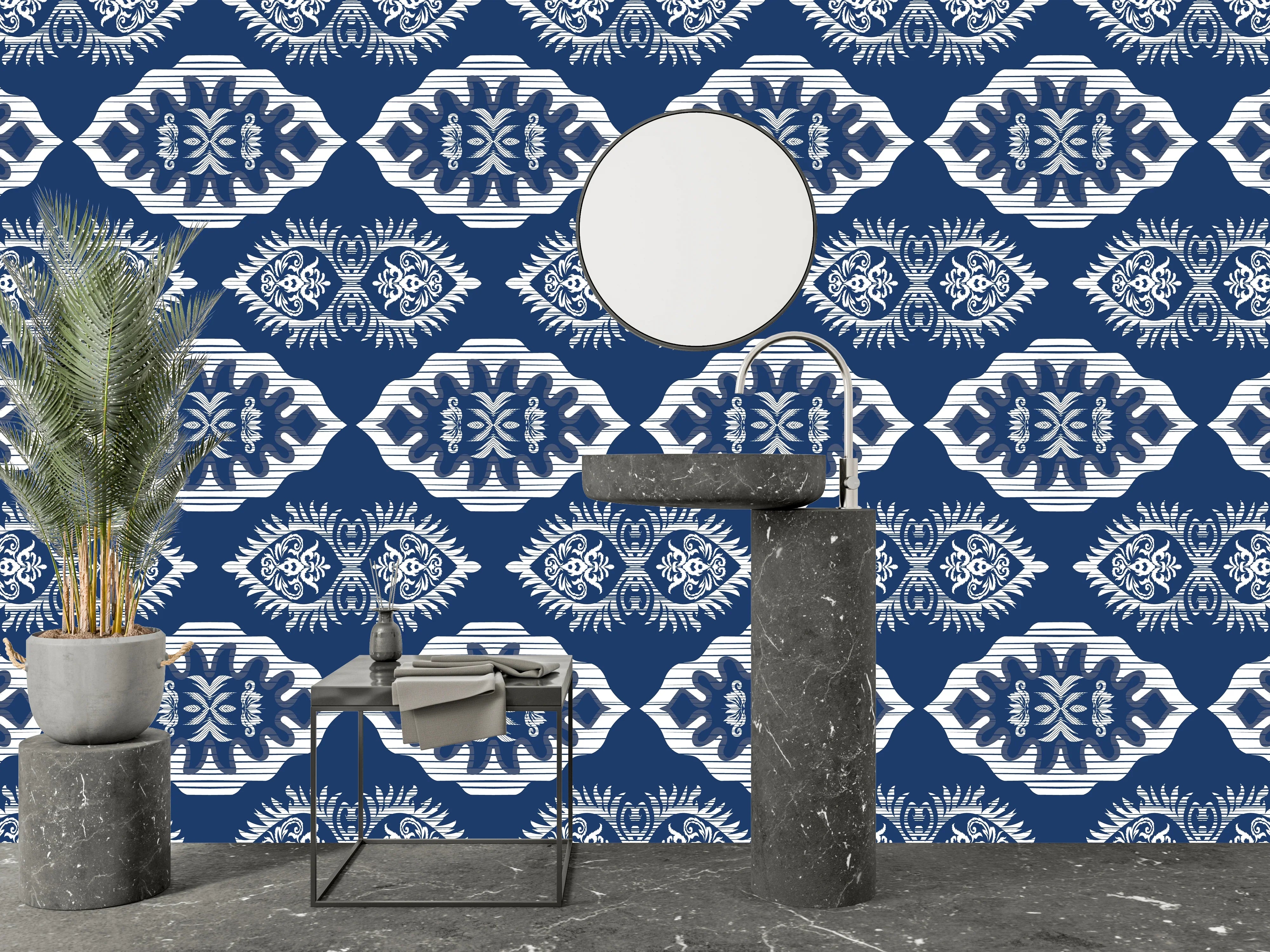 Floral Ikat Wallpaper, Seamless Pattern Mural, Oversized Custom Size Wall Art, Non-Woven, Non-Adhesive, Modern Wall Paper, Removable