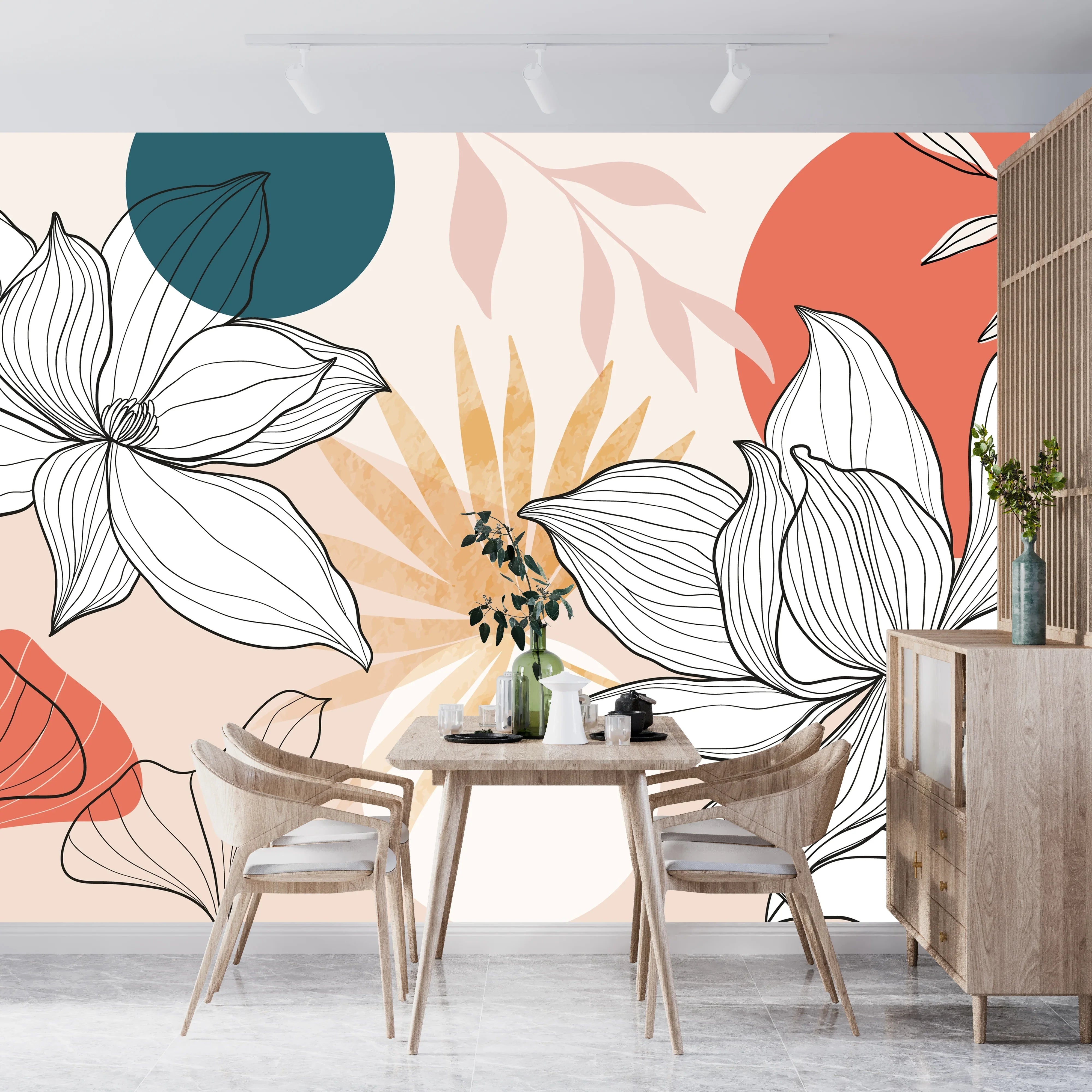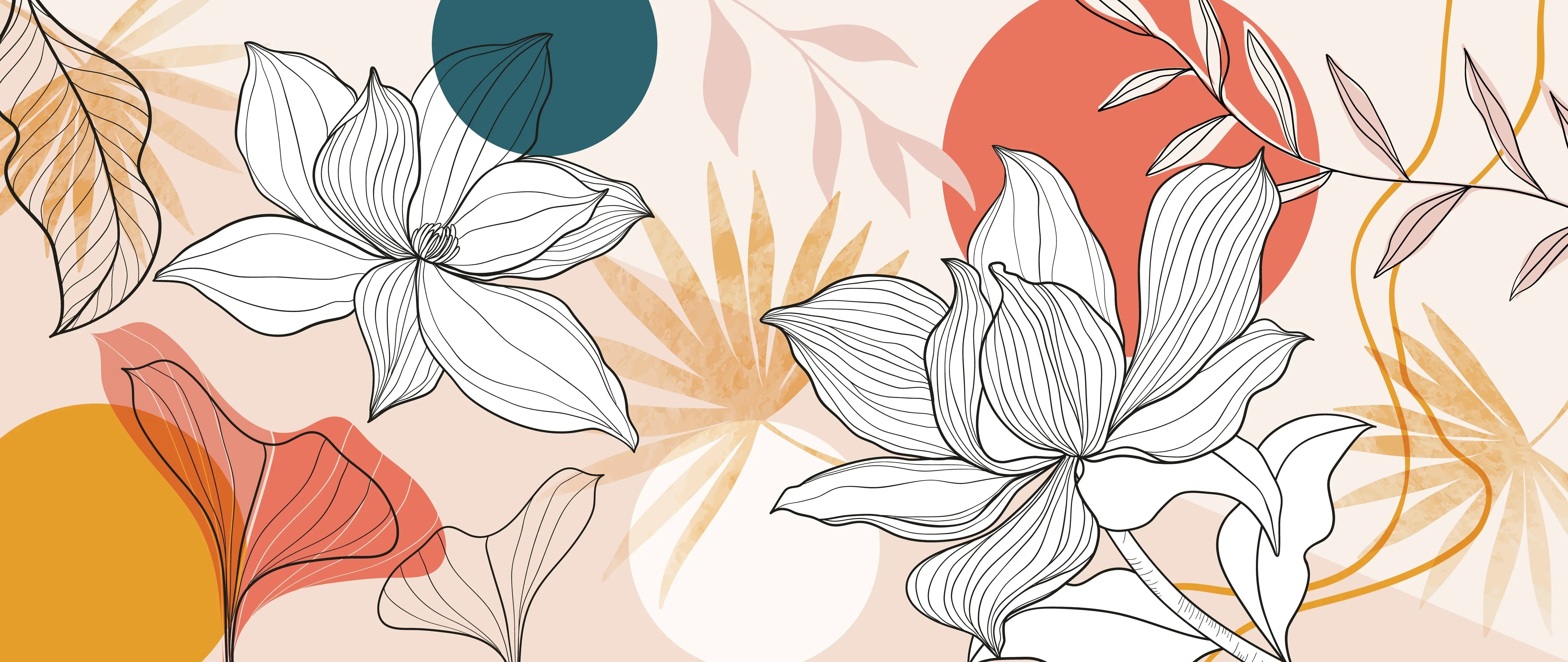 Floral and Botanical Wallpaper, Line Art Mural, Oversized Custom Size Wall Art, Non-Woven, Non-Adhesive, Modern Wall Paper, Removable