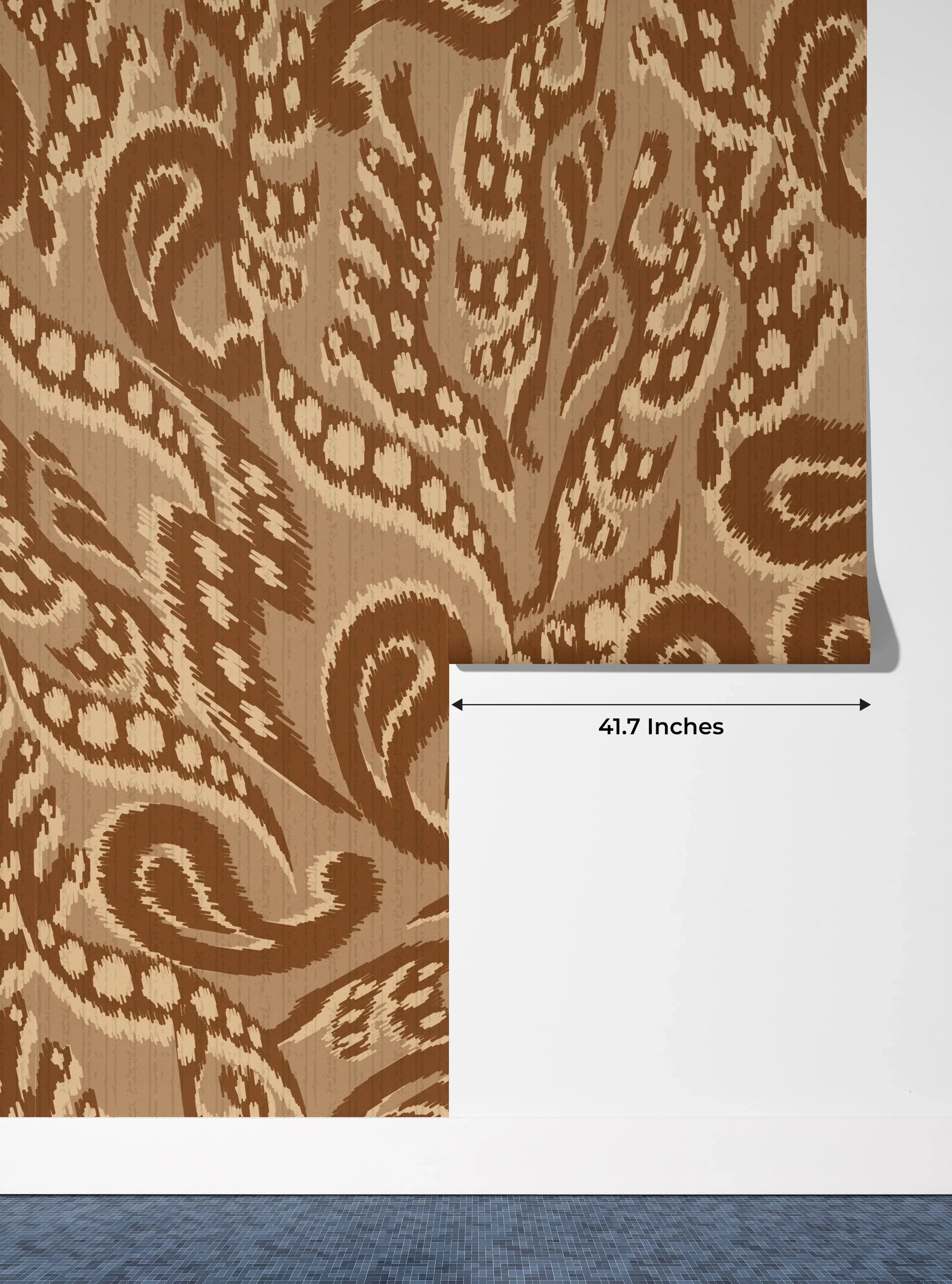 Brown Ikat Wallpaper, Seamless Pattern Mural, Oversized Custom Size Wall Art, Non-Woven, Non-Adhesive, Modern Wall Paper, Removable