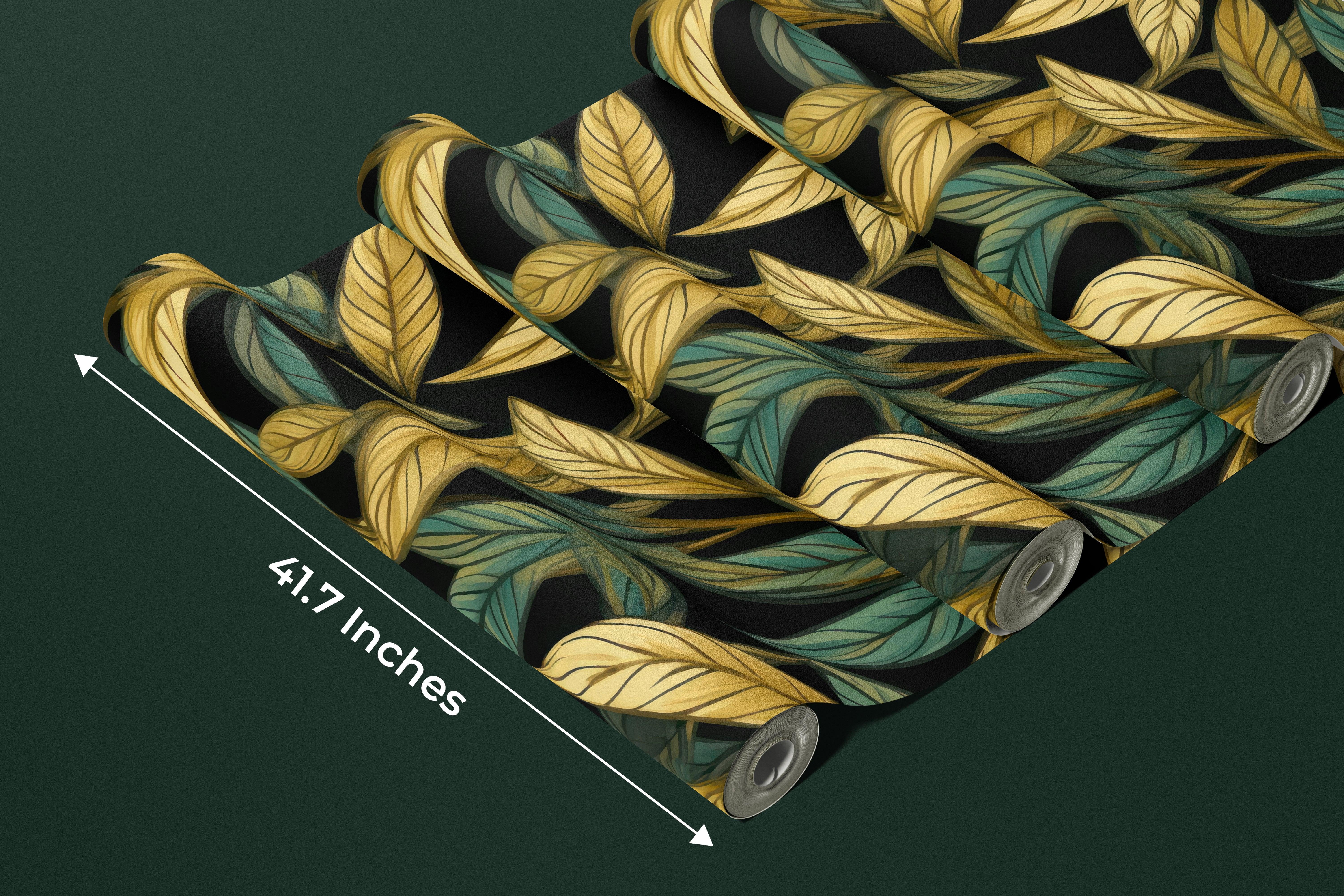 Gold and Light Green Leaves Wallpaper, Seamless Pattern Mural, Oversized Custom Size Wall Art, Non-Woven, Non-Adhesive, Modern Wall Paper, Removable