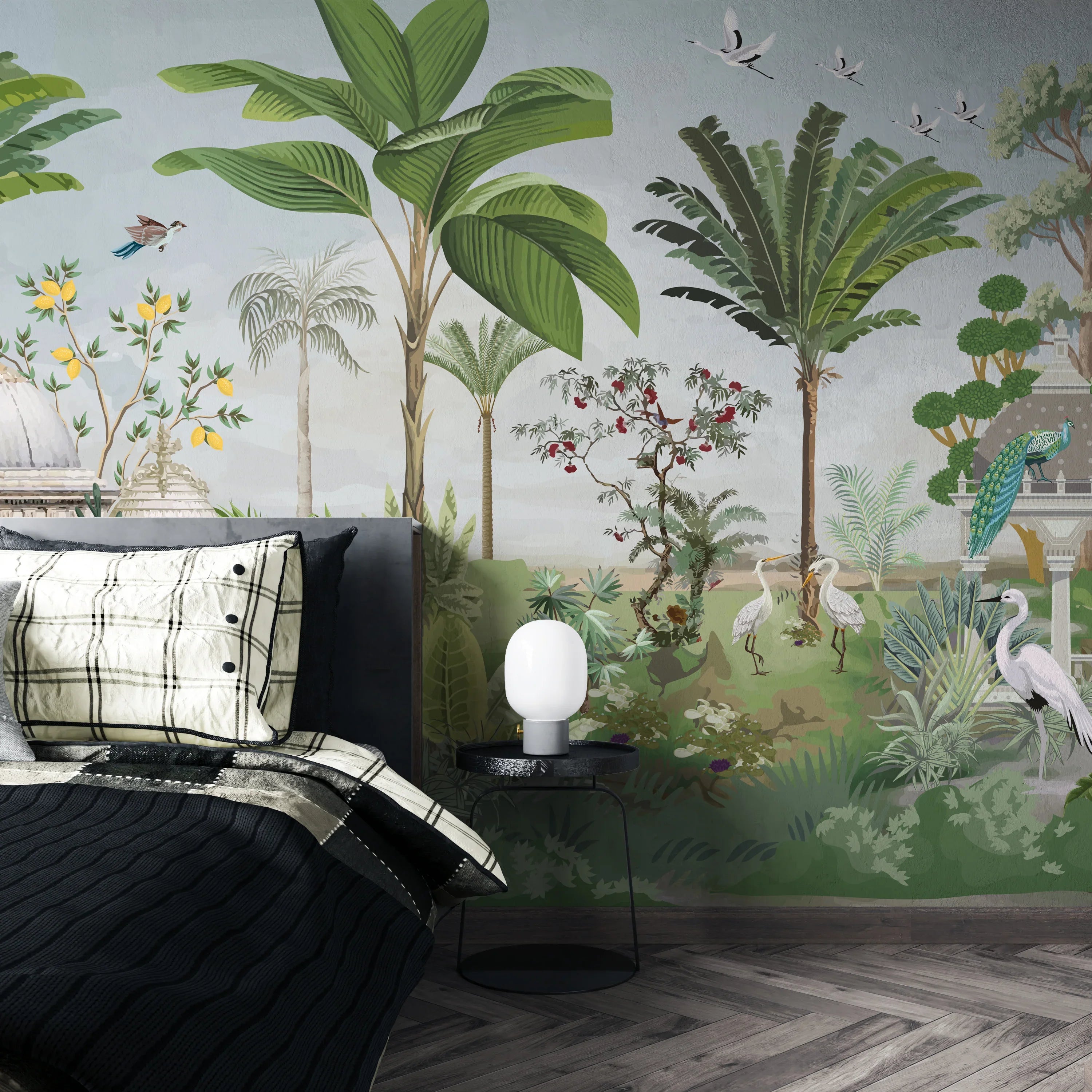 Mughal Garden-Dome Wallpaper, Birds Wall Mural, Oversized Custom Size Wall Art, Non-Woven, Non-Adhesive, Modern Wall Paper, Removable