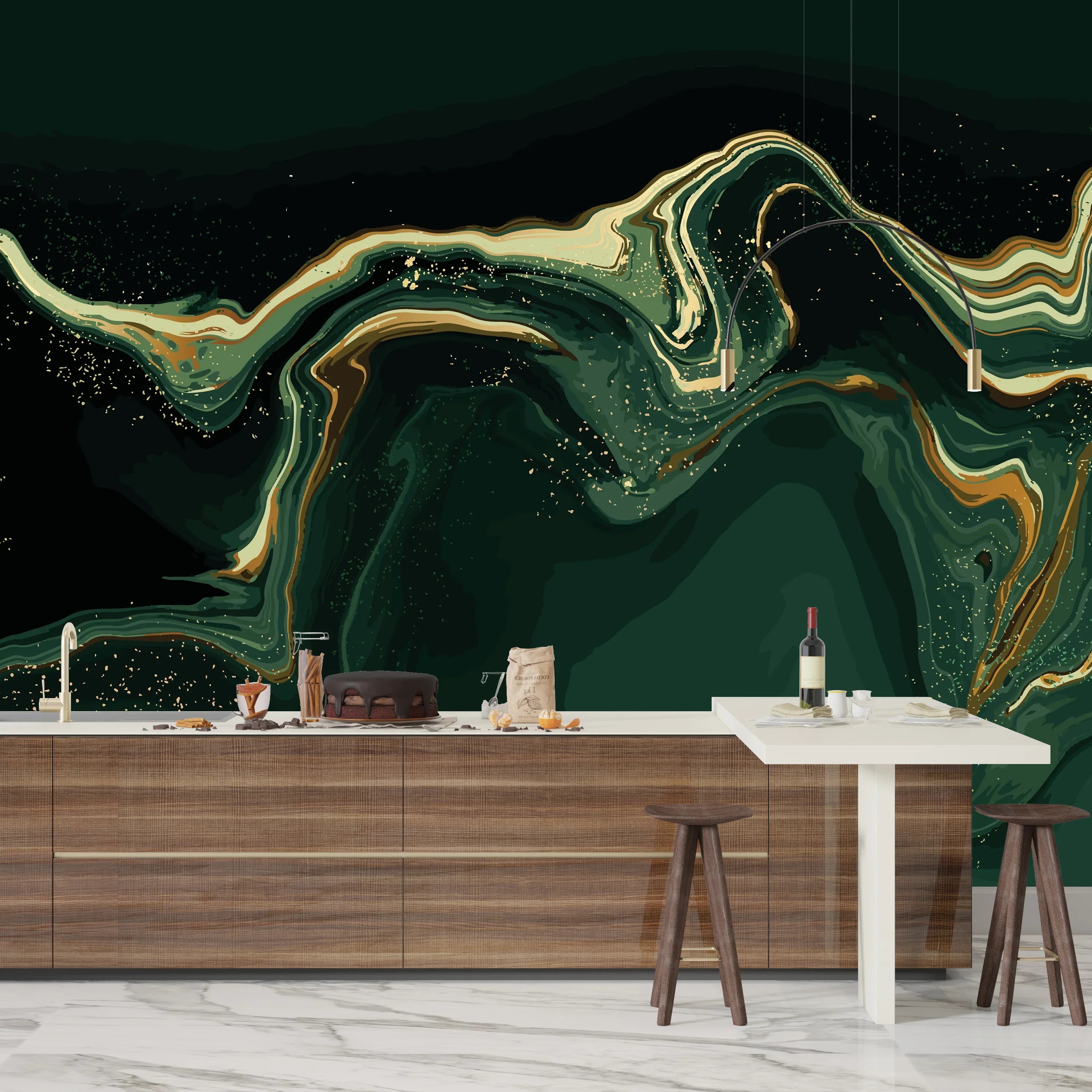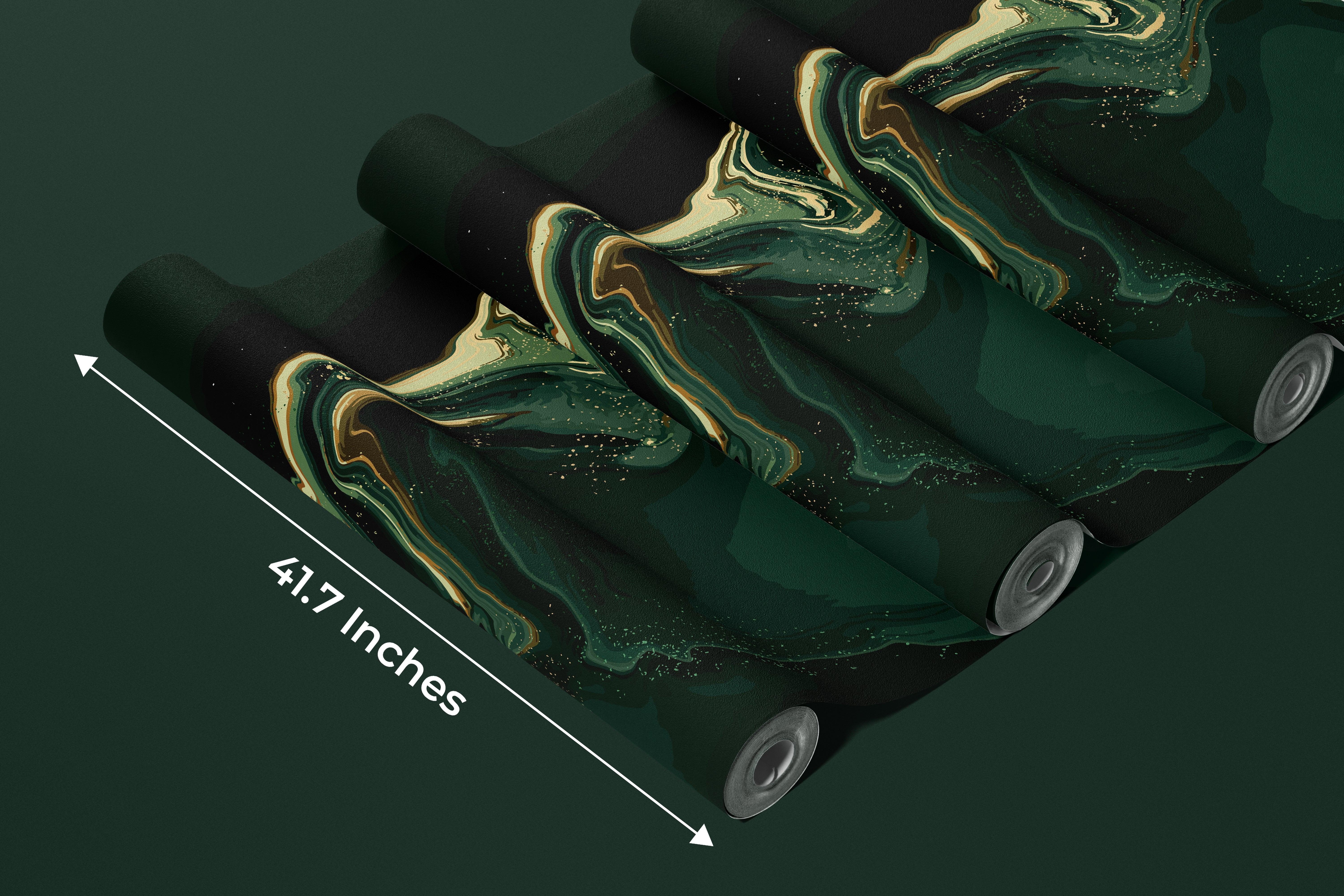 Dark Emerald Green Marble Wallpaper, Gold Abstract Mural, Oversized Custom Size Wall Art, Non-Woven, Non-Adhesive, Modern Wall Paper, Removable
