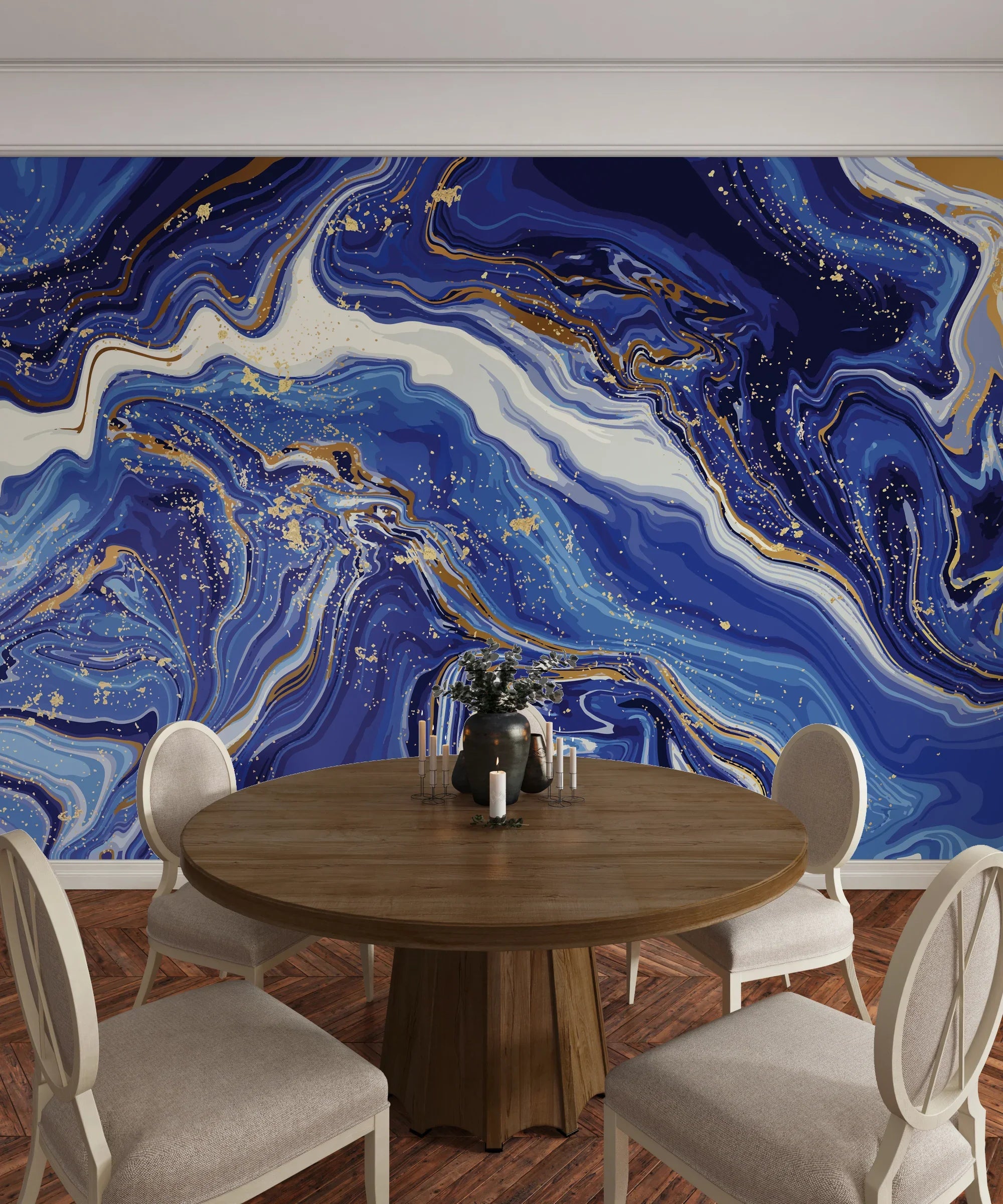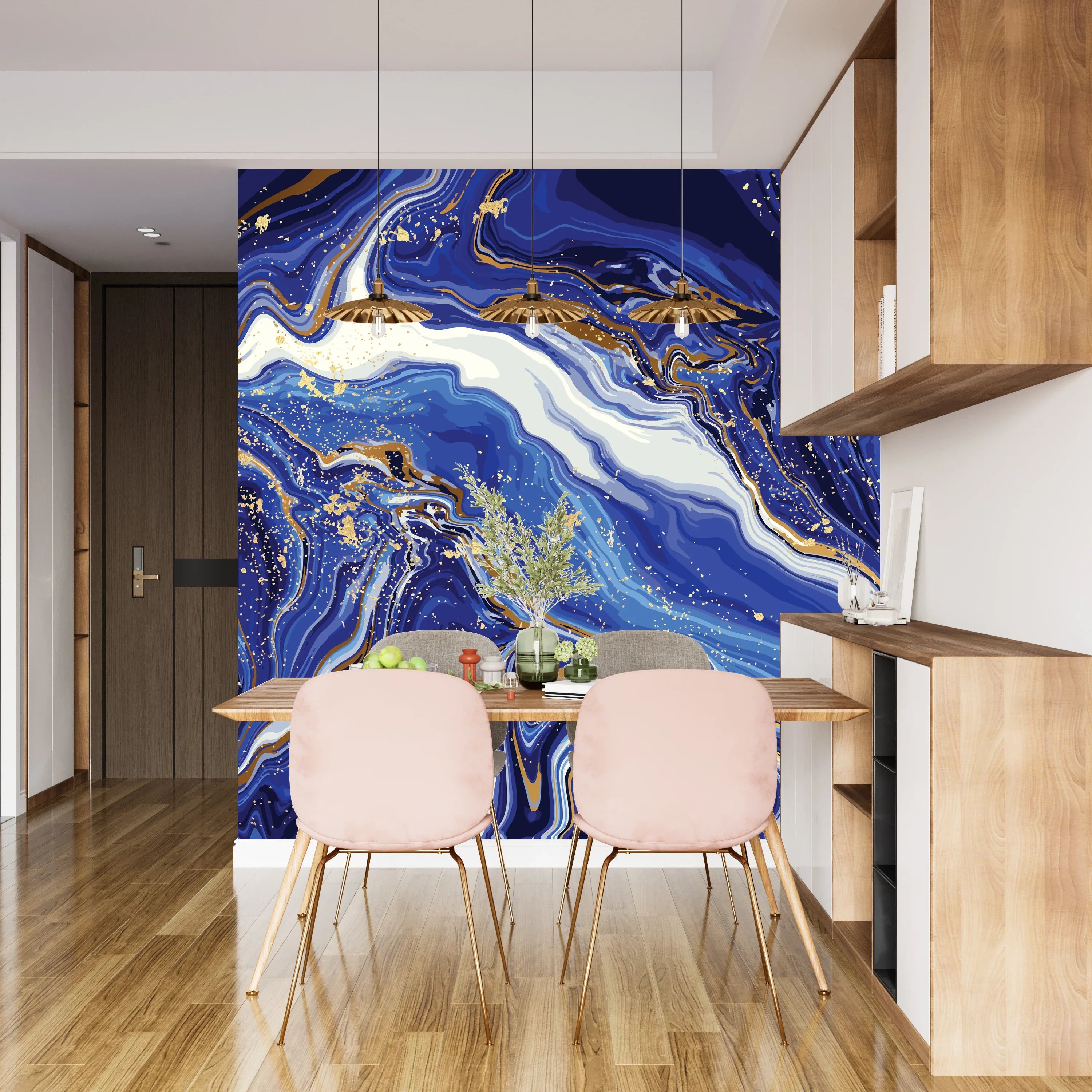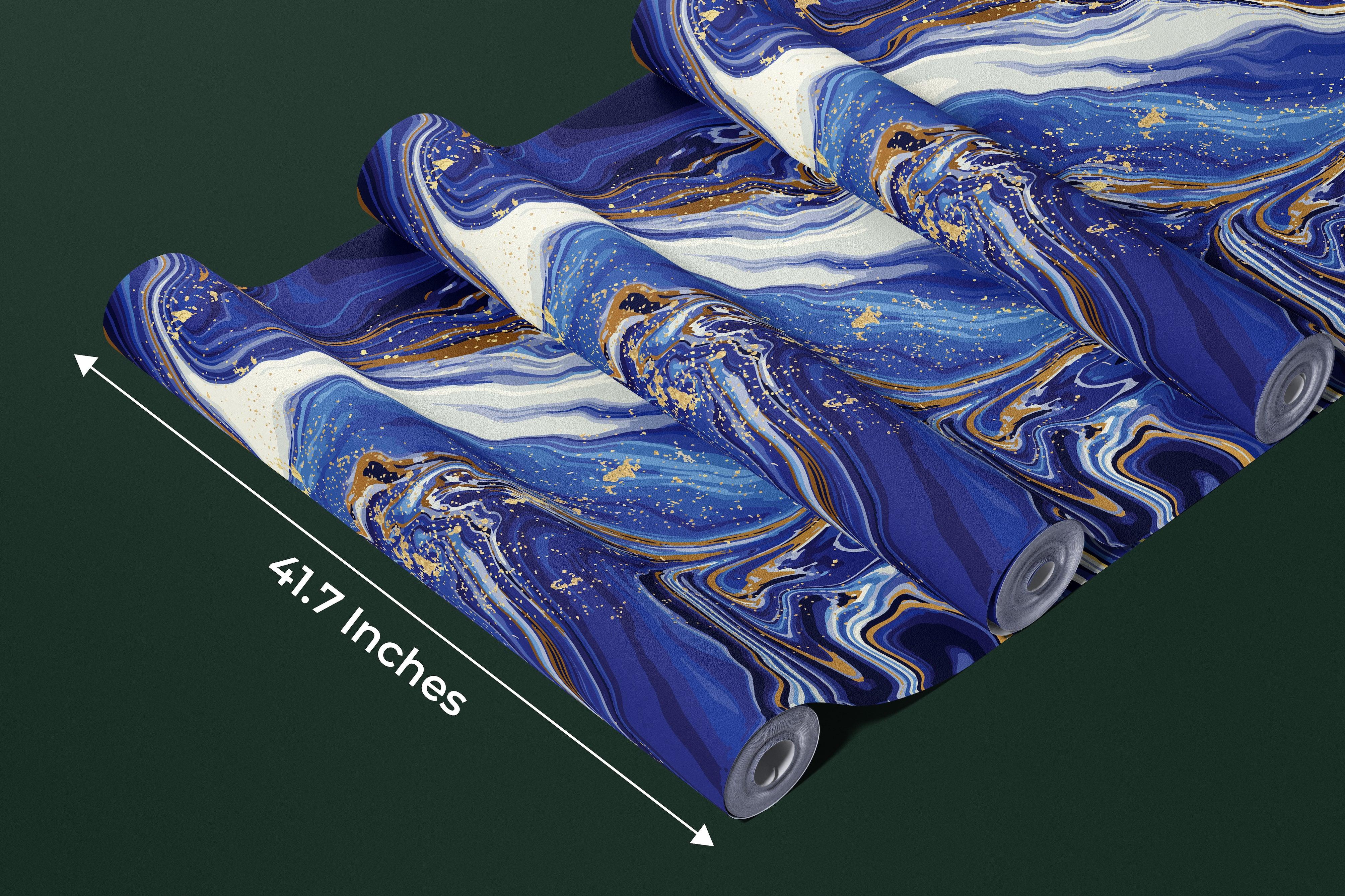 Blue Marble Wallpaper, Gold Abstract Mural, Oversized Custom Size Wall Art, Non-Woven, Non-Adhesive, Modern Wall Paper, Removable