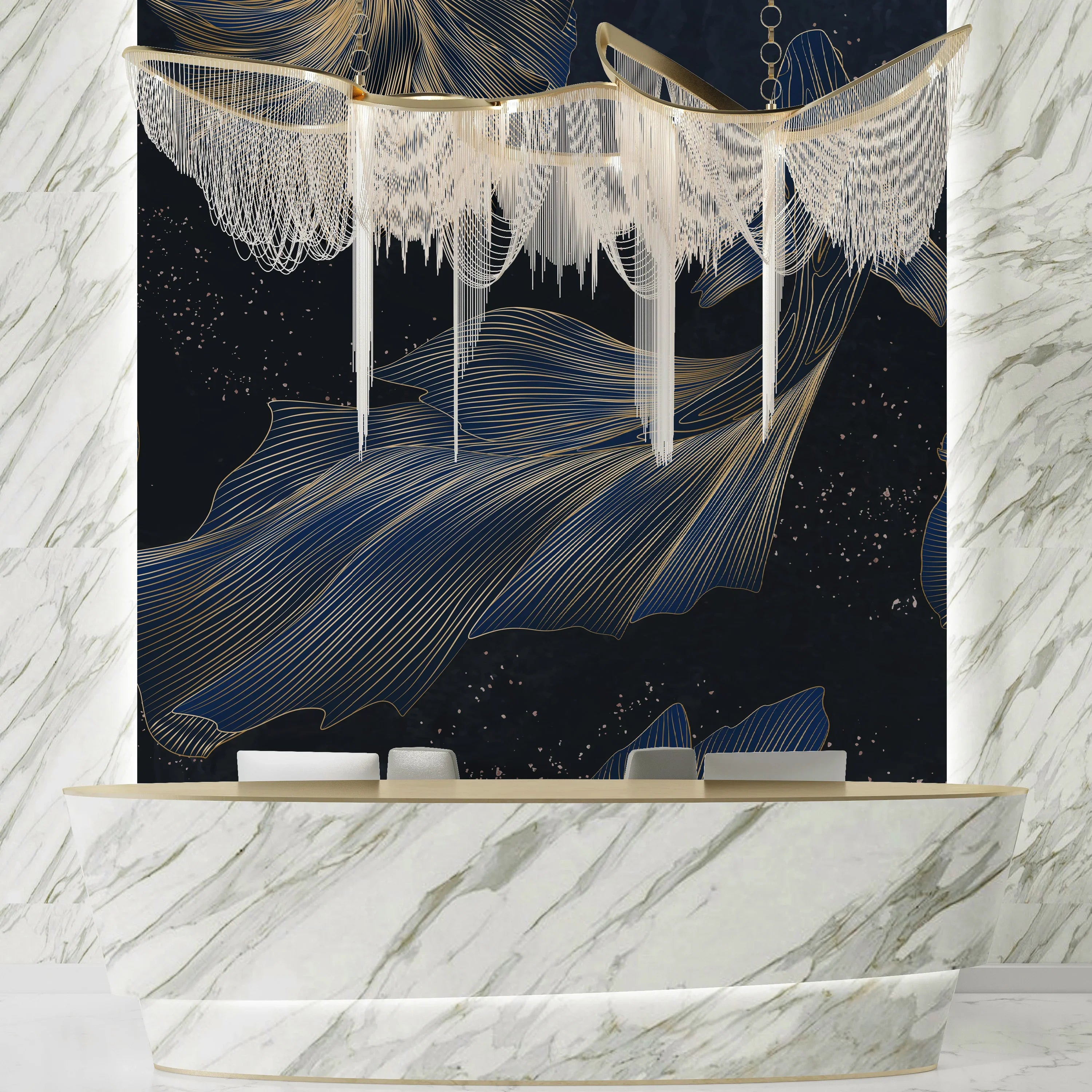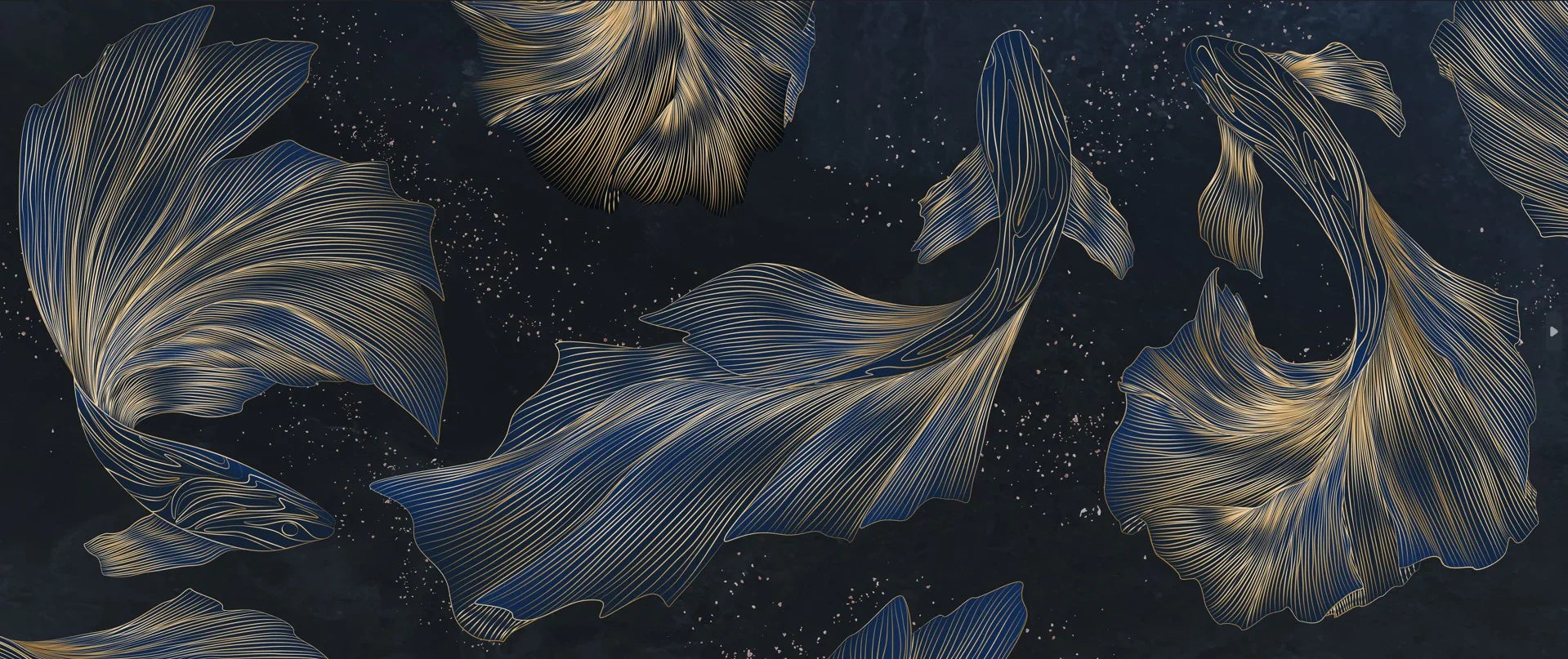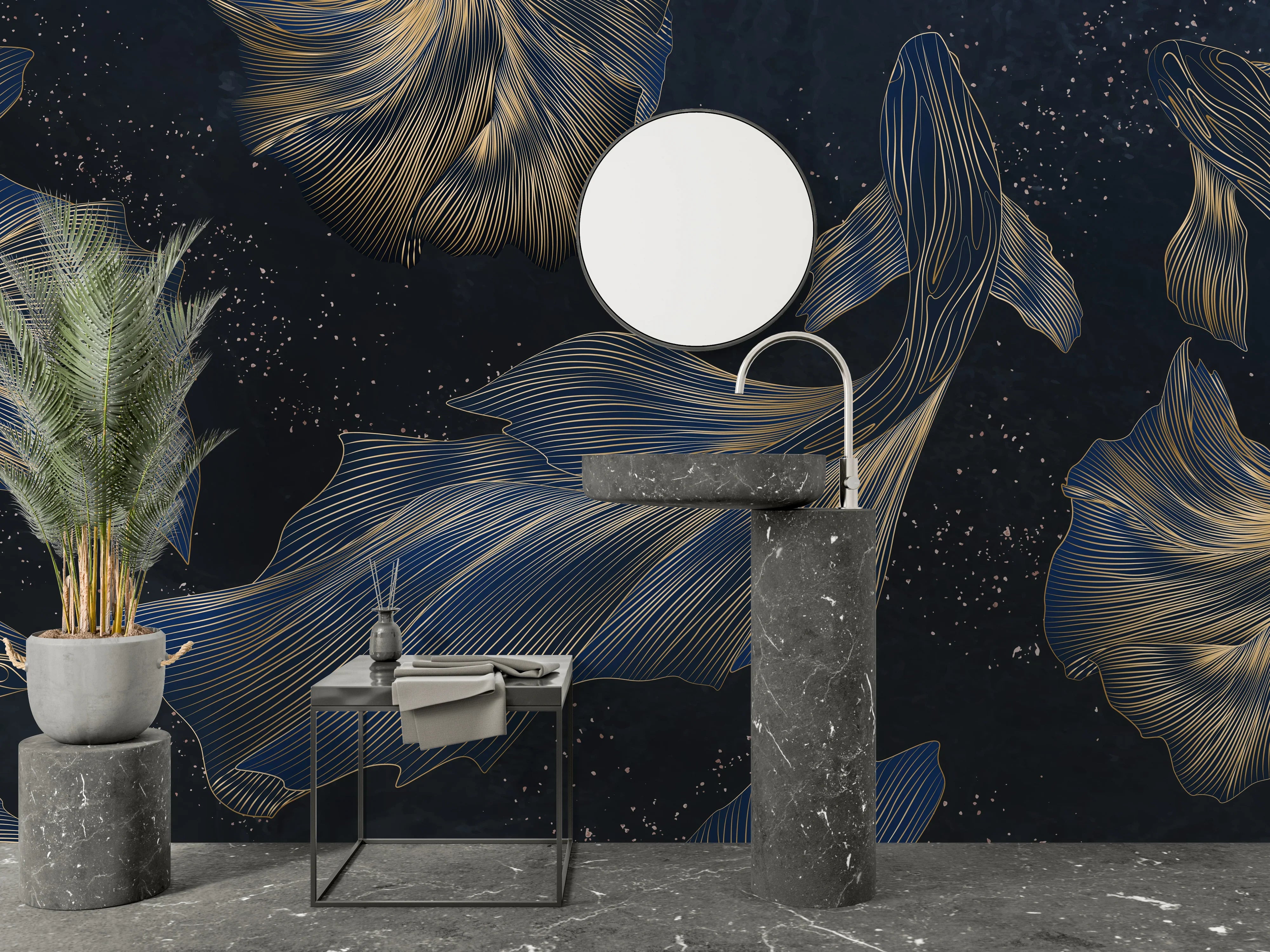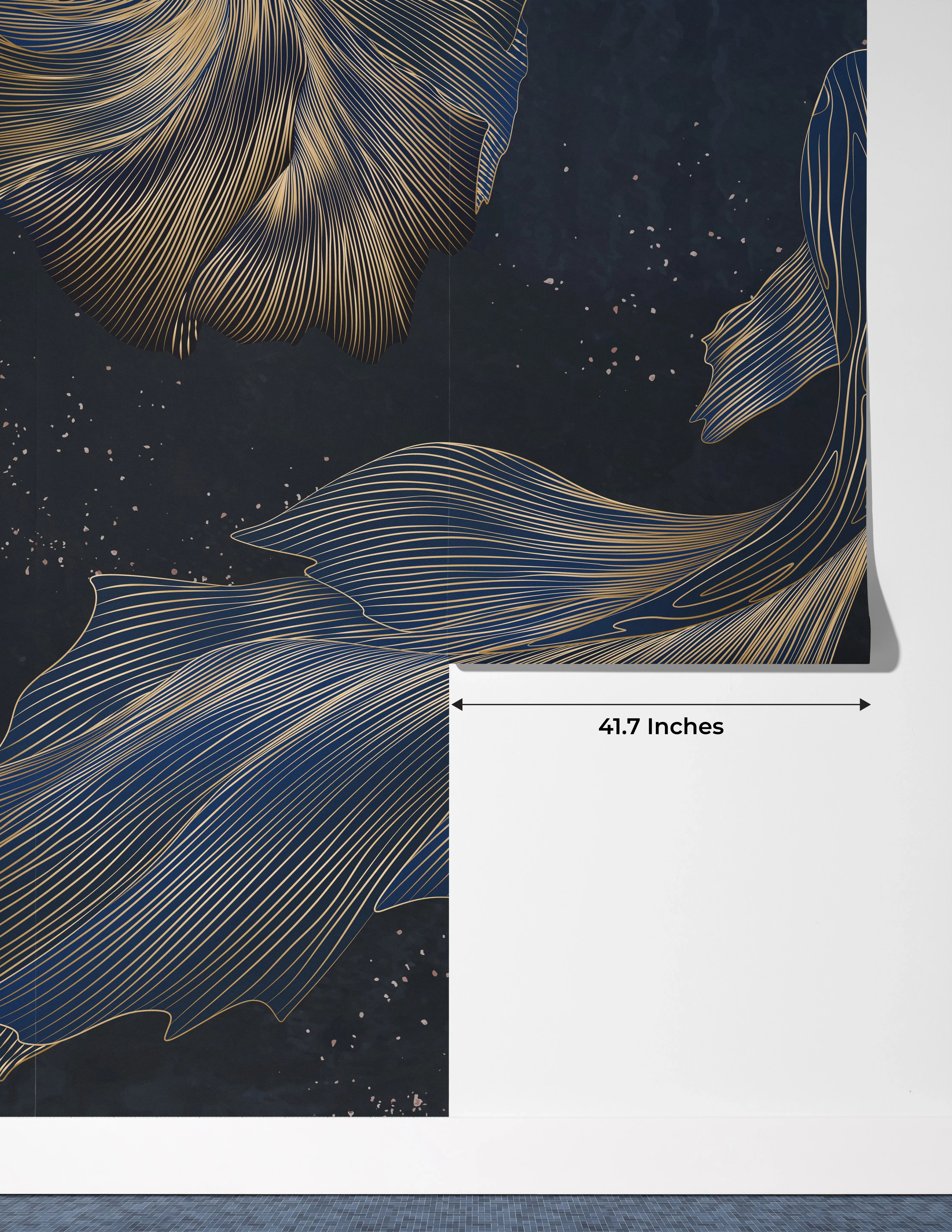 Koi Fish Wallpaper, Golden Line Style Wall Mural, Oversized Custom Size Wall Art, Non-Woven, Non-Adhesive, Modern Wall Paper, Removable