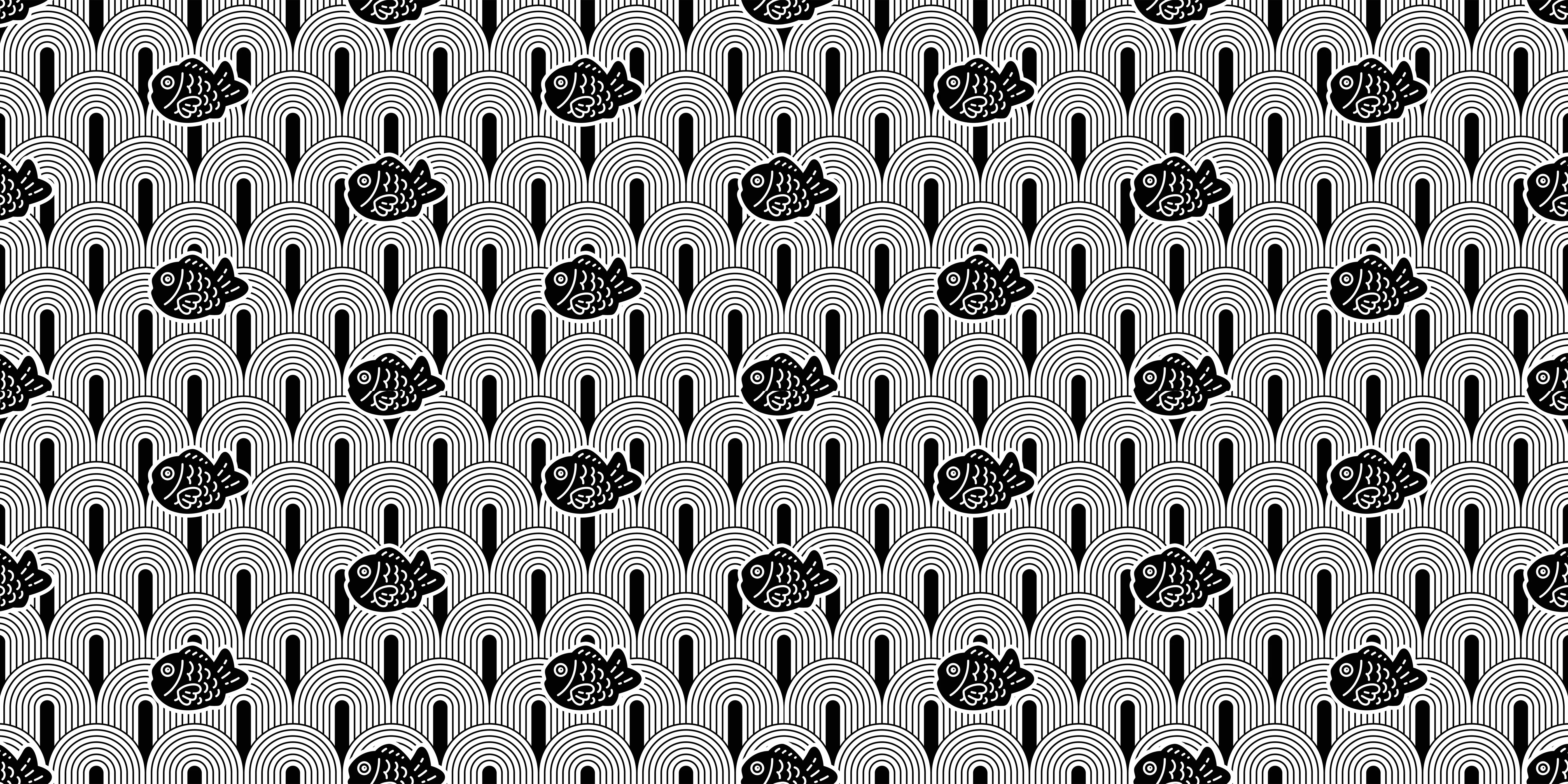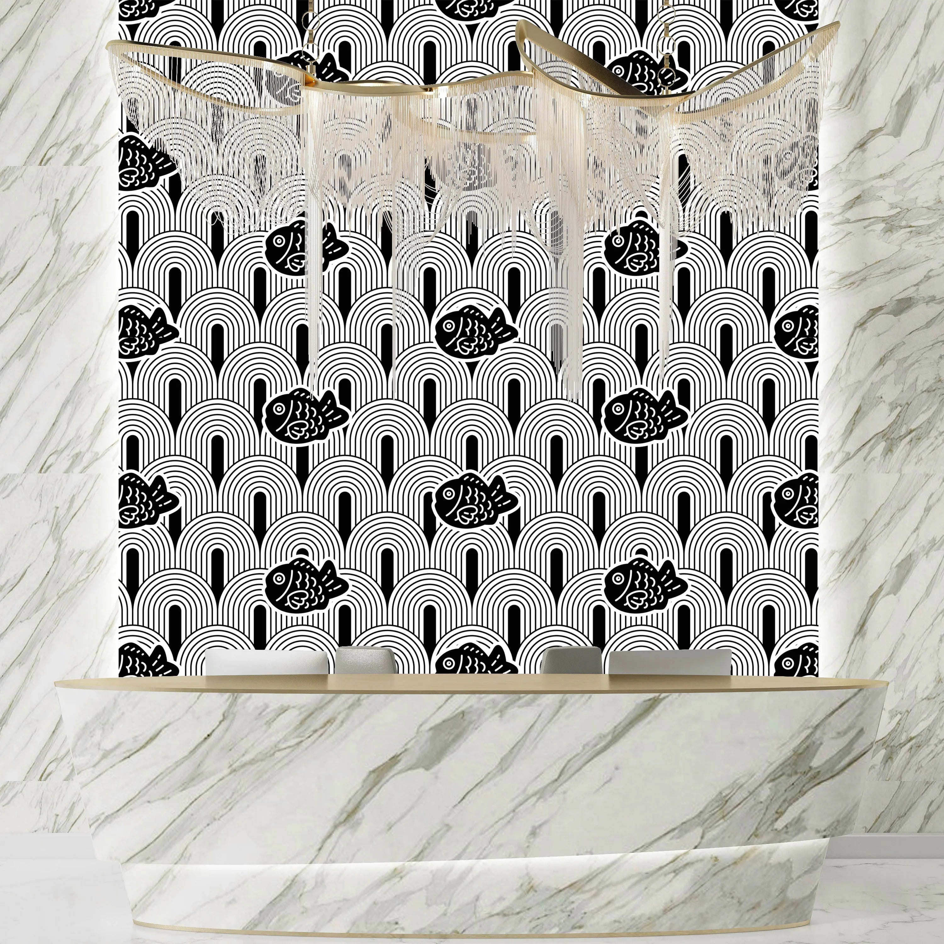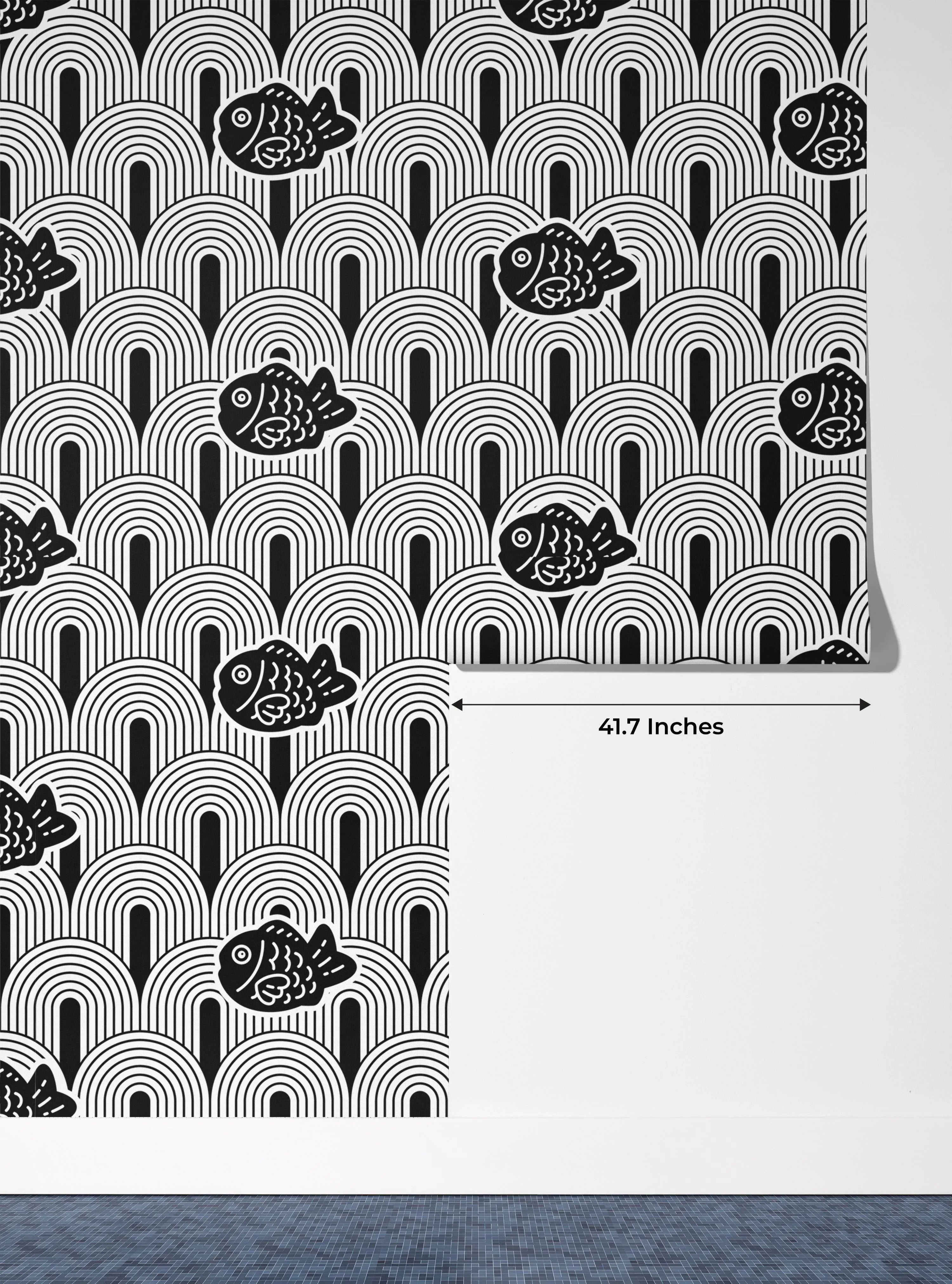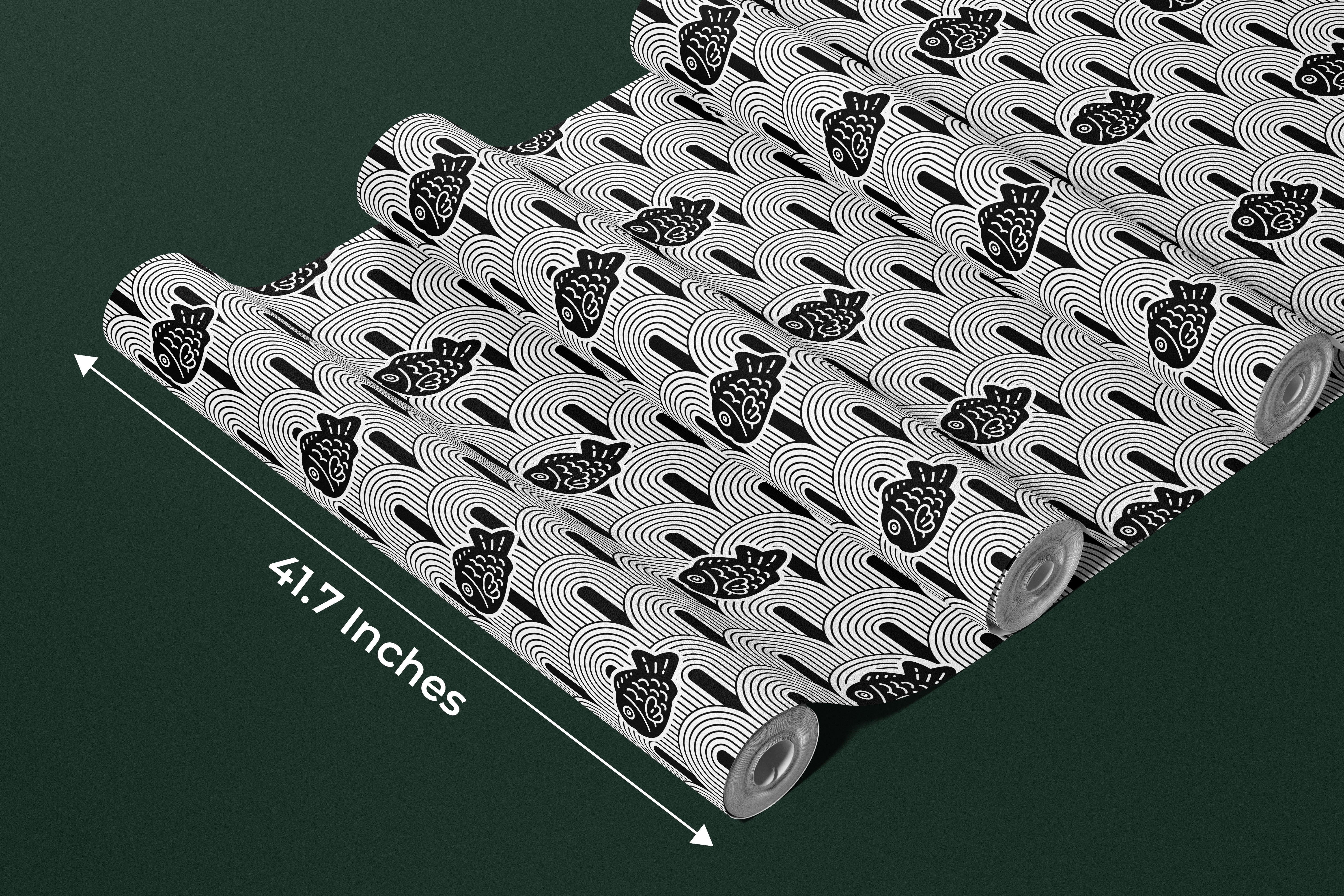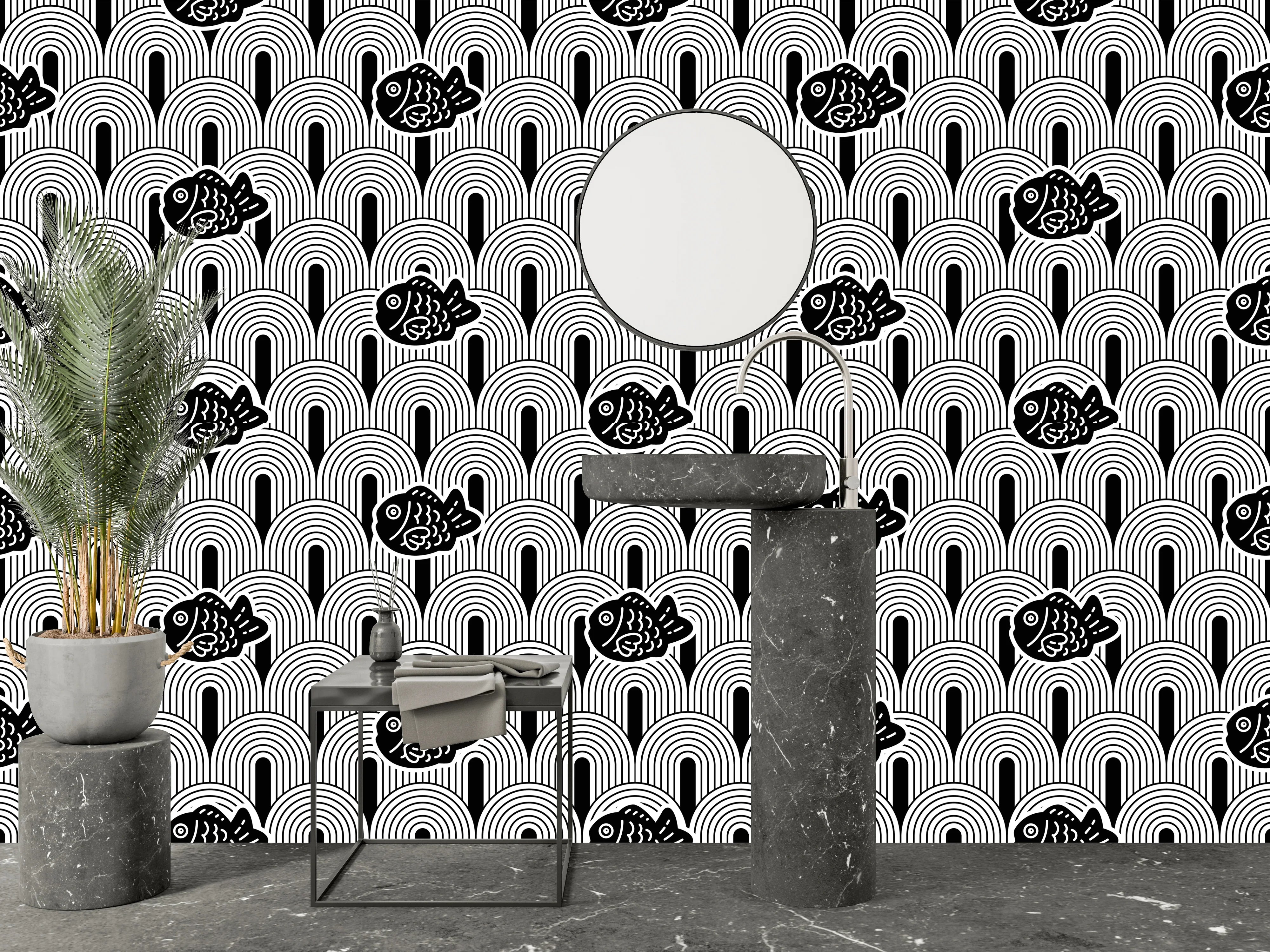 Japan Wave, Fish Wallpaper, Seamless Pattern Mural, Oversized Custom Size Wall Art, Non-Woven, Non-Adhesive, Modern Wall Paper, Removable