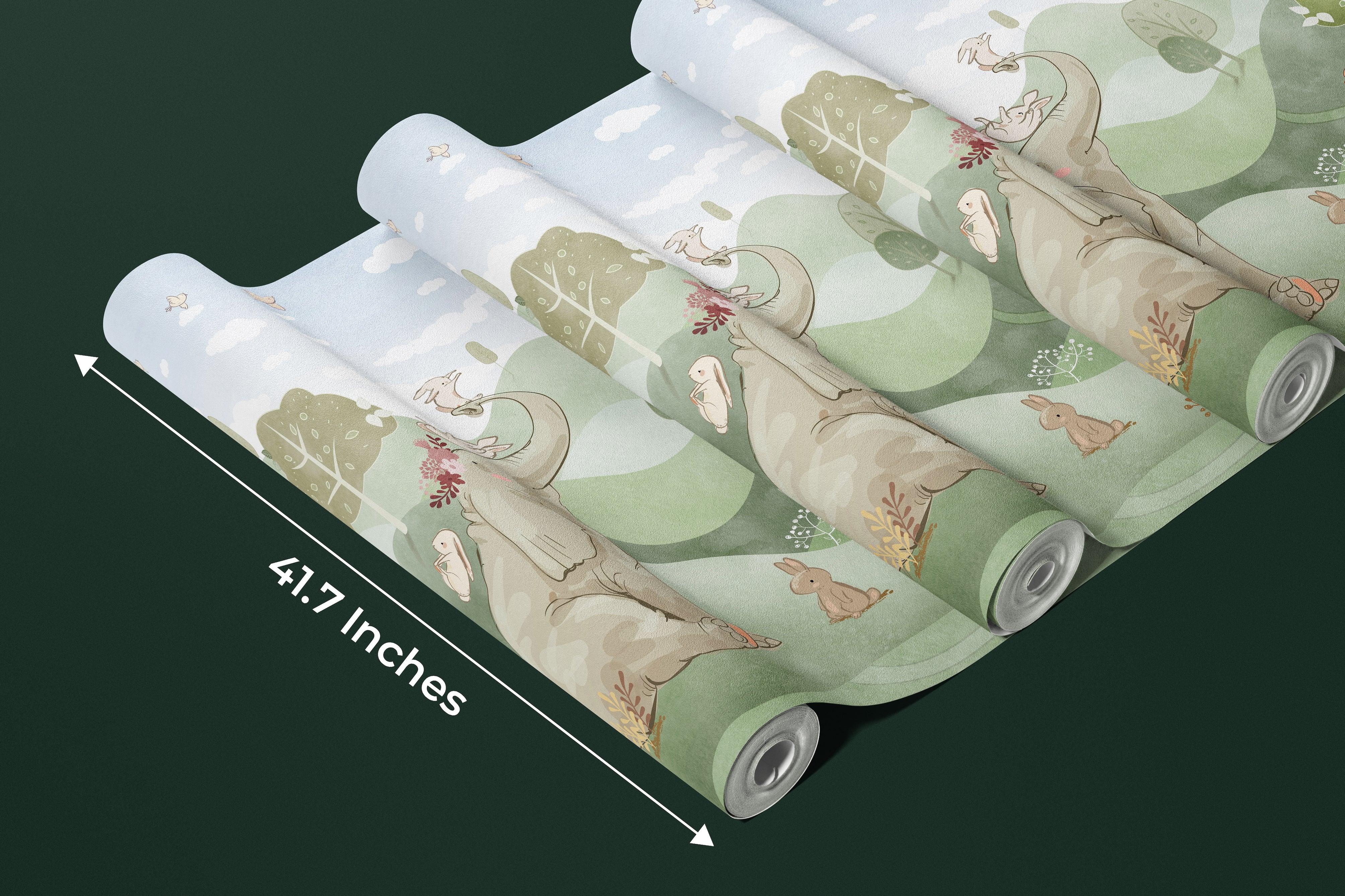 Forest Animals Wallpaper, Woodland Summer Mural, Oversized Custom Size Wall Art, Non-Woven, Non-Adhesive, Modern Wall Paper, Removable