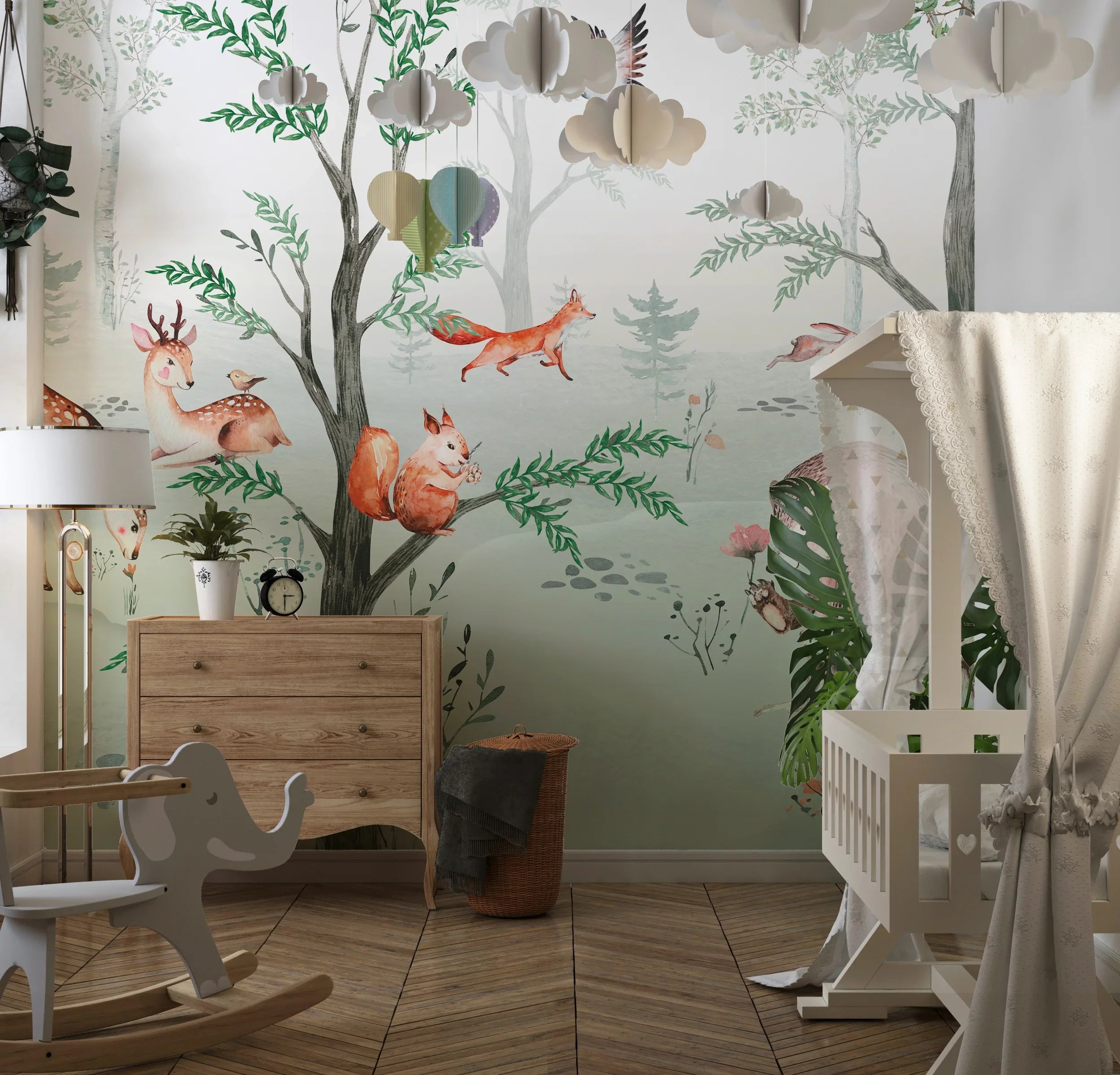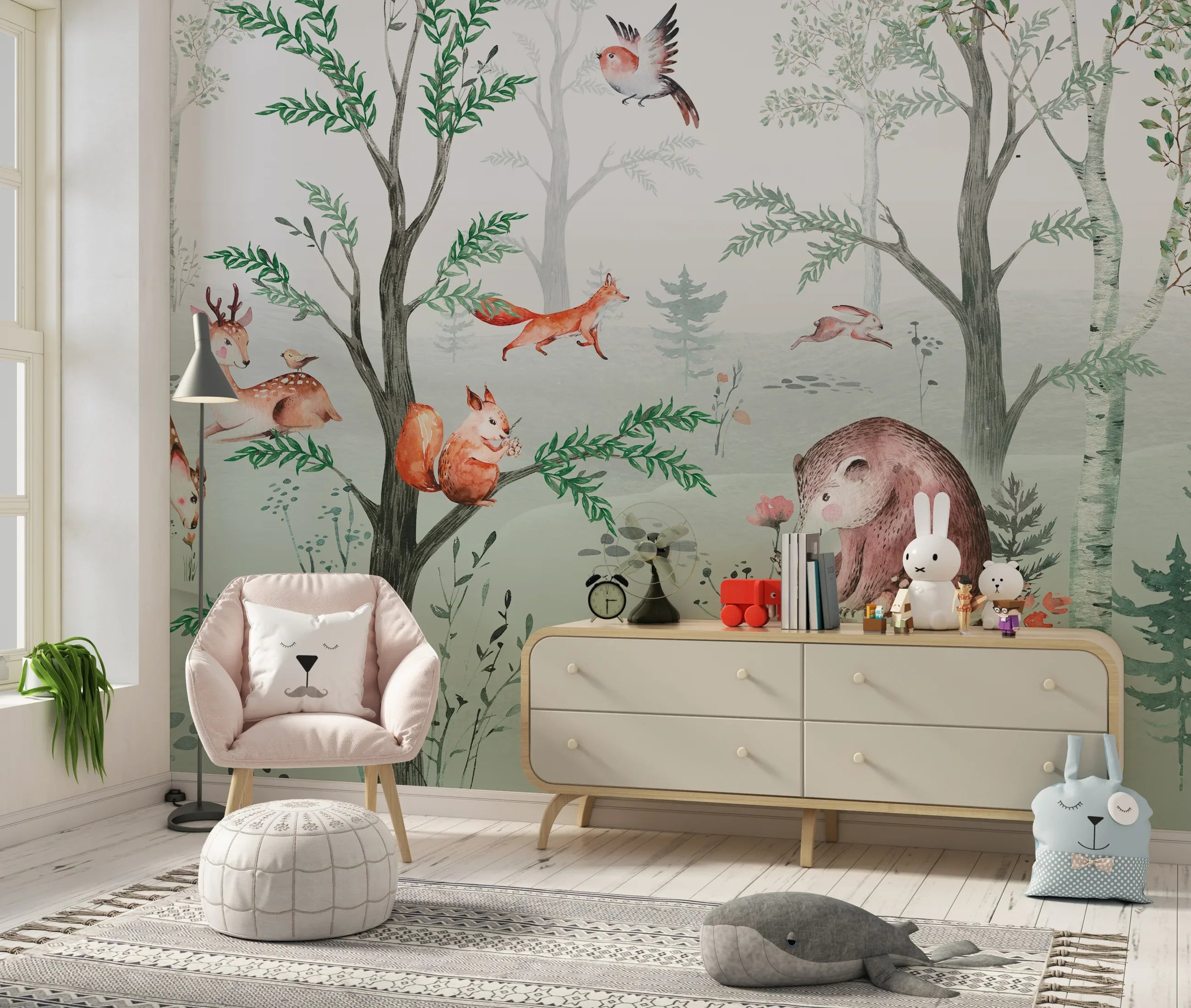 Cute Animals Wallpaper, Kids Mural, Oversized Custom Size Wall Art, Non-Woven, Non-Adhesive, Modern Wall Paper, Removable