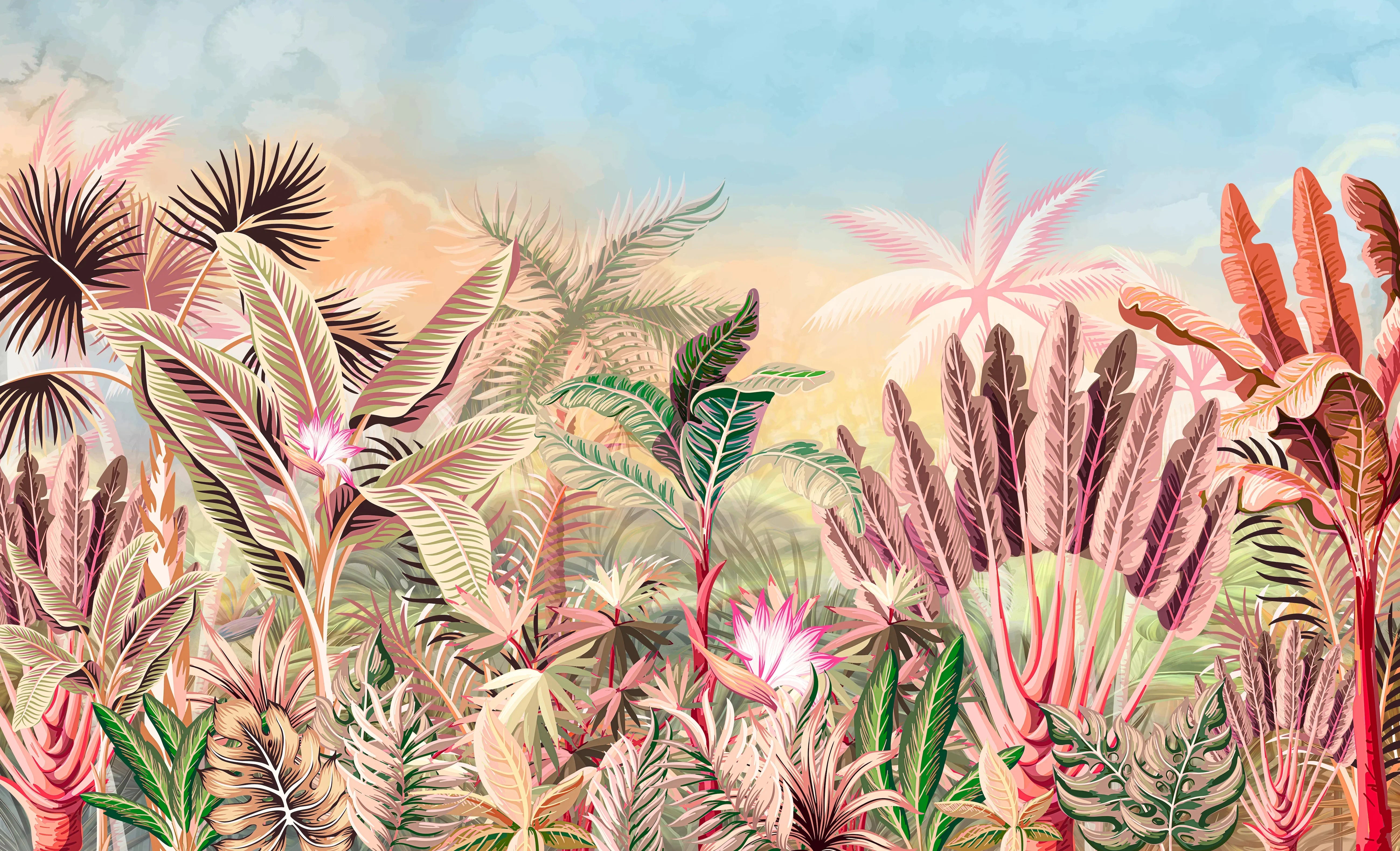 Tropical Forest Wallpaper, Leaves and Trees Mural, Oversized Custom Size Wall Art, Non-Woven, Non-Adhesive, Modern Wall Paper, Removable