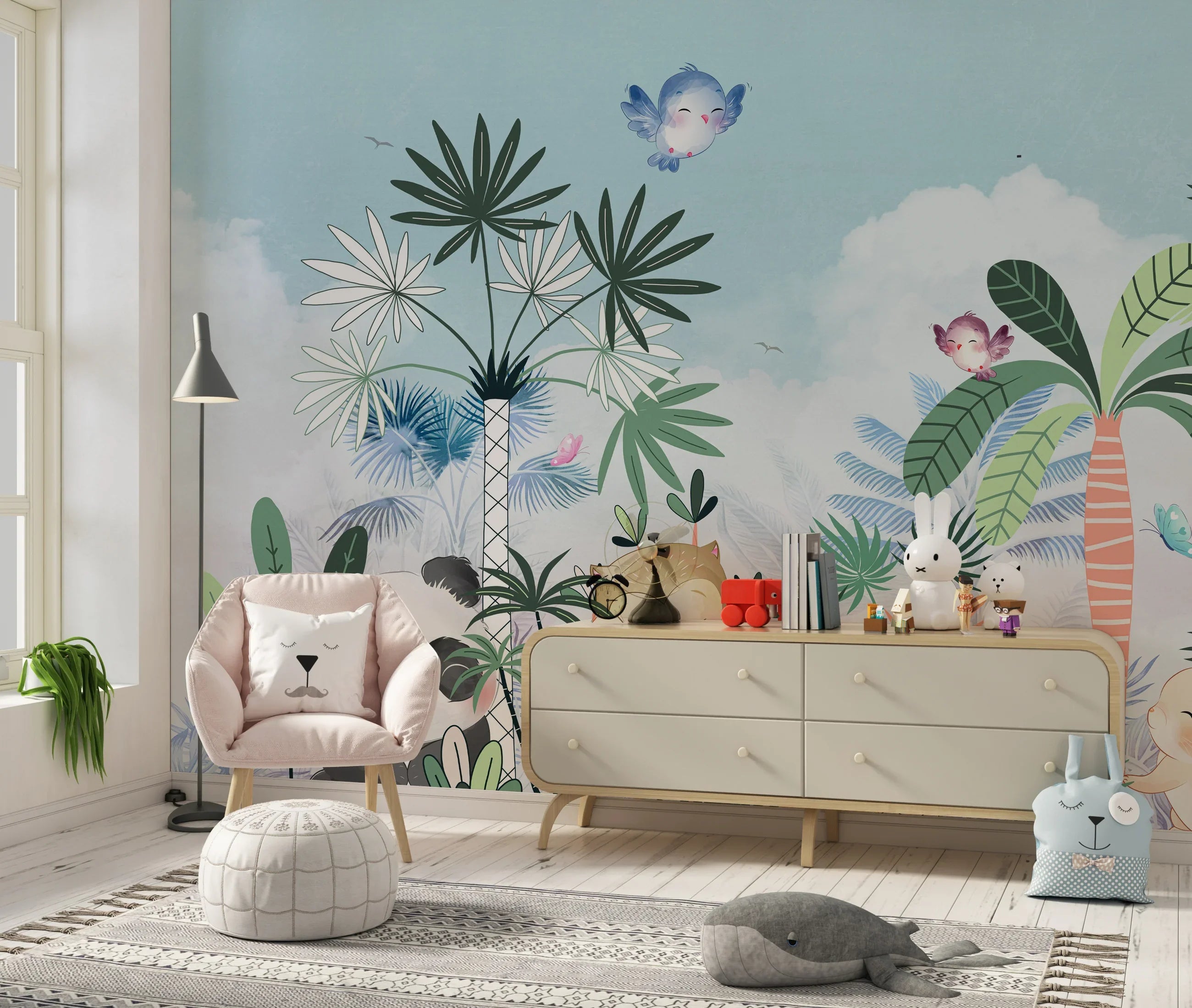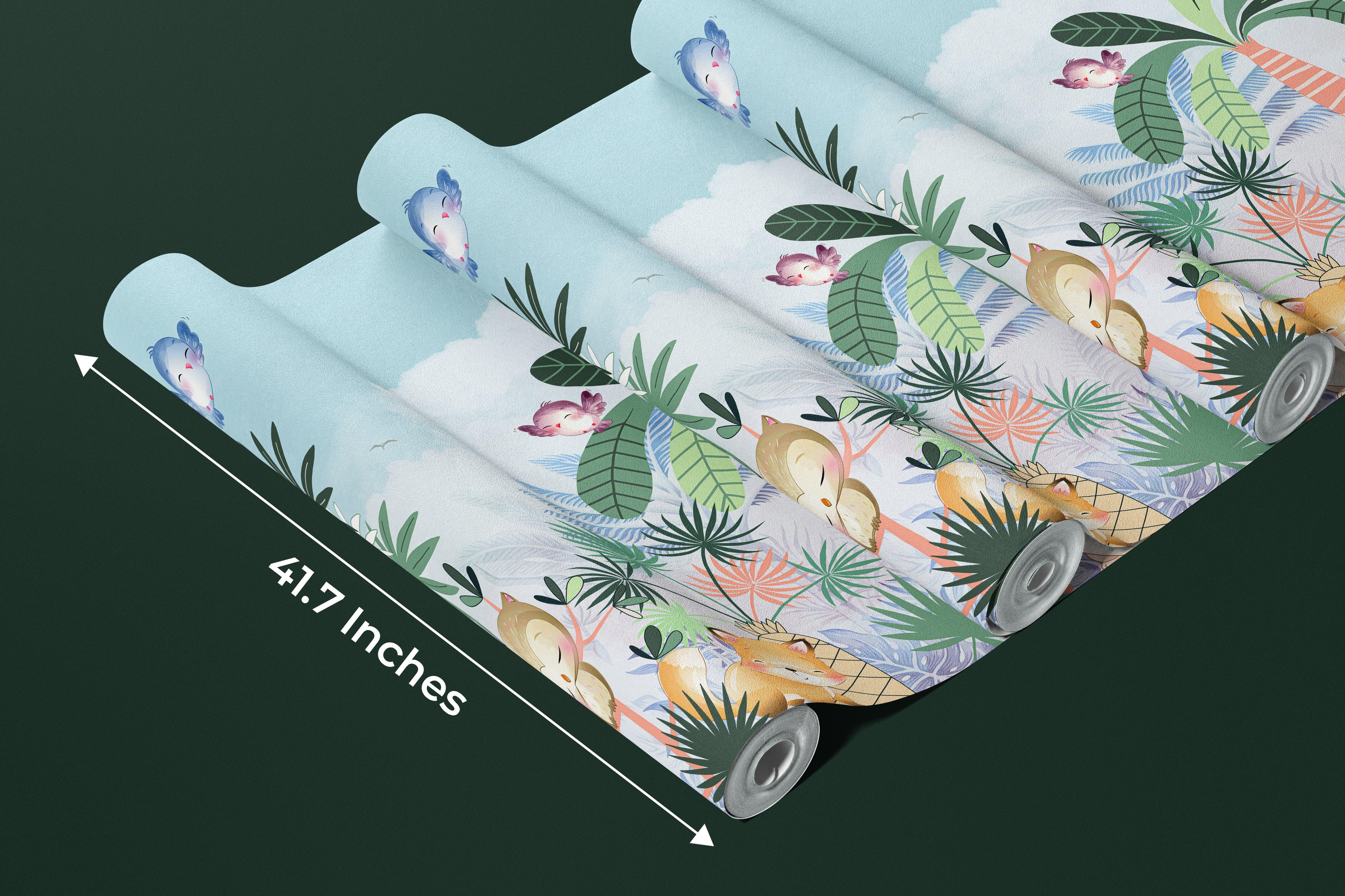 Cute Animals Wallpaper, Forest Mural, Oversized Custom Size Wall Art, Non-Woven, Non-Adhesive, Modern Wall Paper, Removable