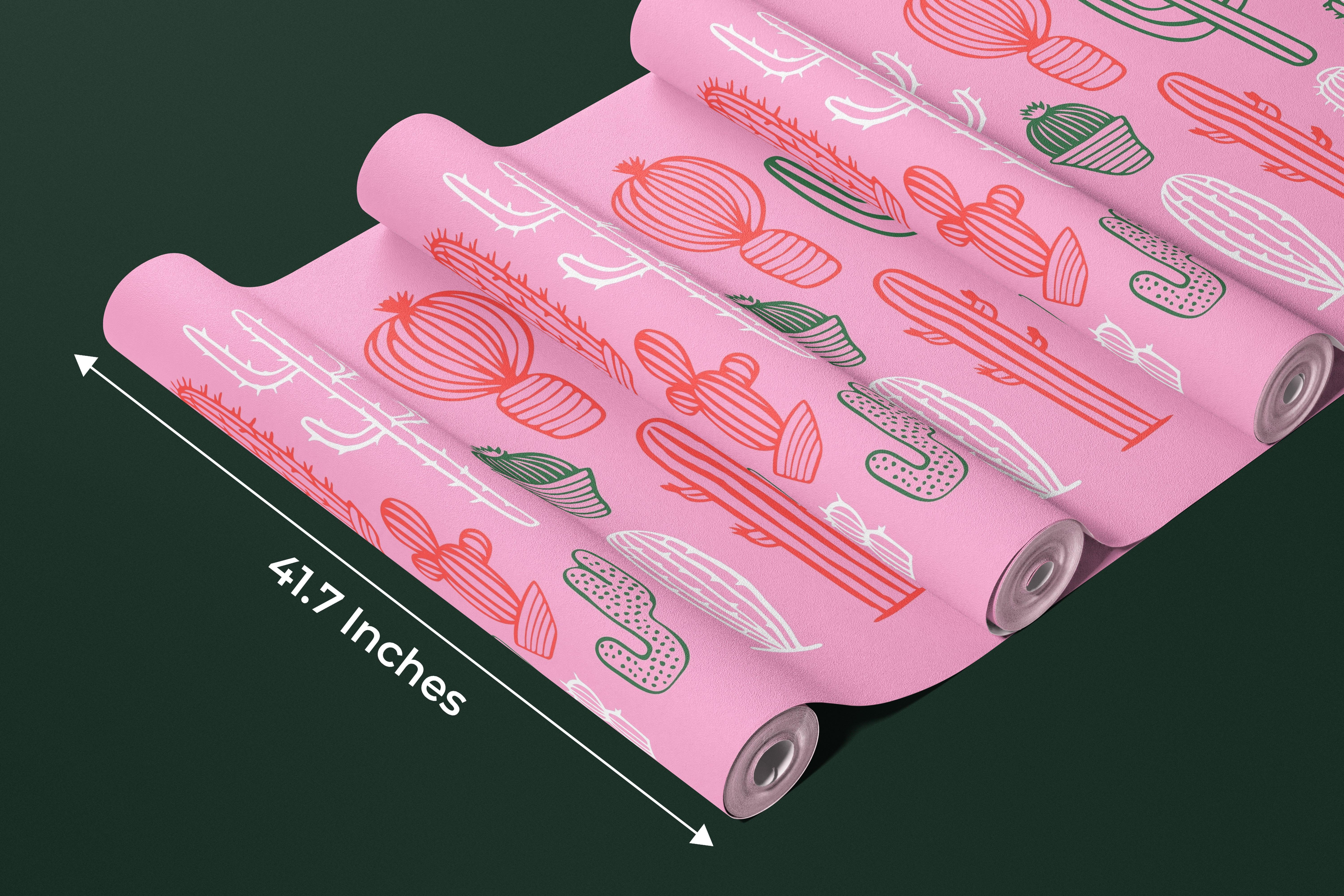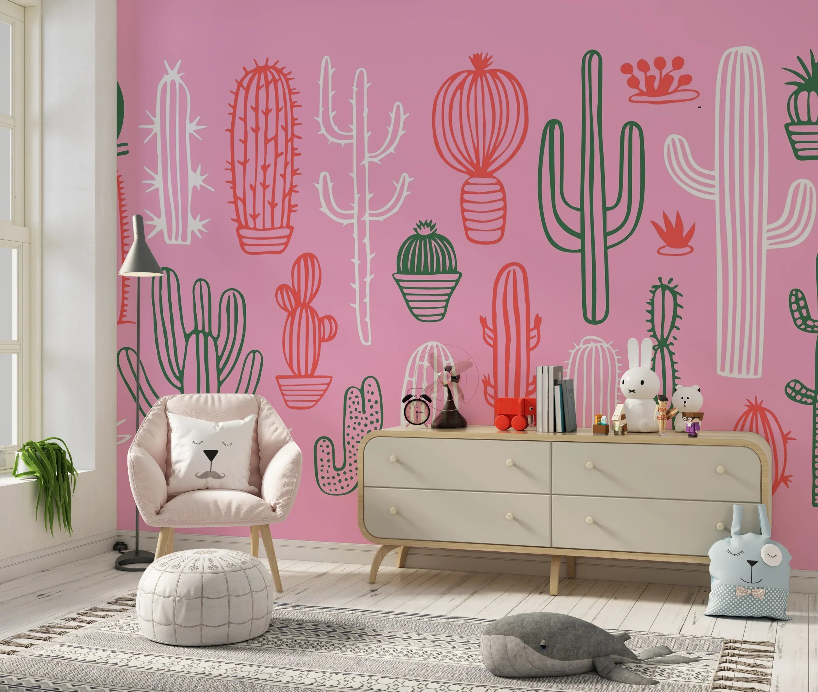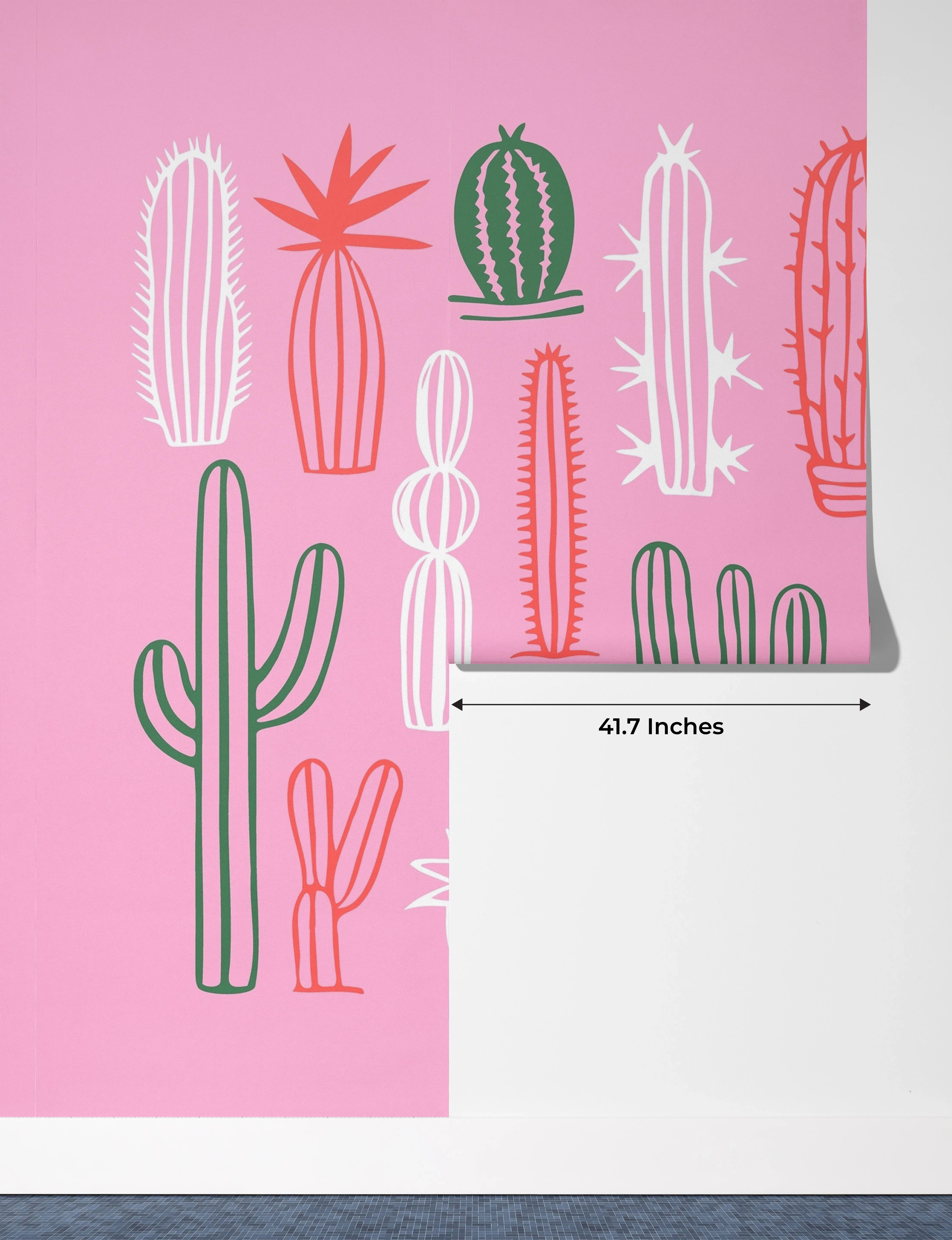 Hand Drawn Cactus Wallpaper, Pink Background Mural, Oversized Custom Size Wall Art, Non-Woven, Non-Adhesive, Modern Wall Paper, Removable