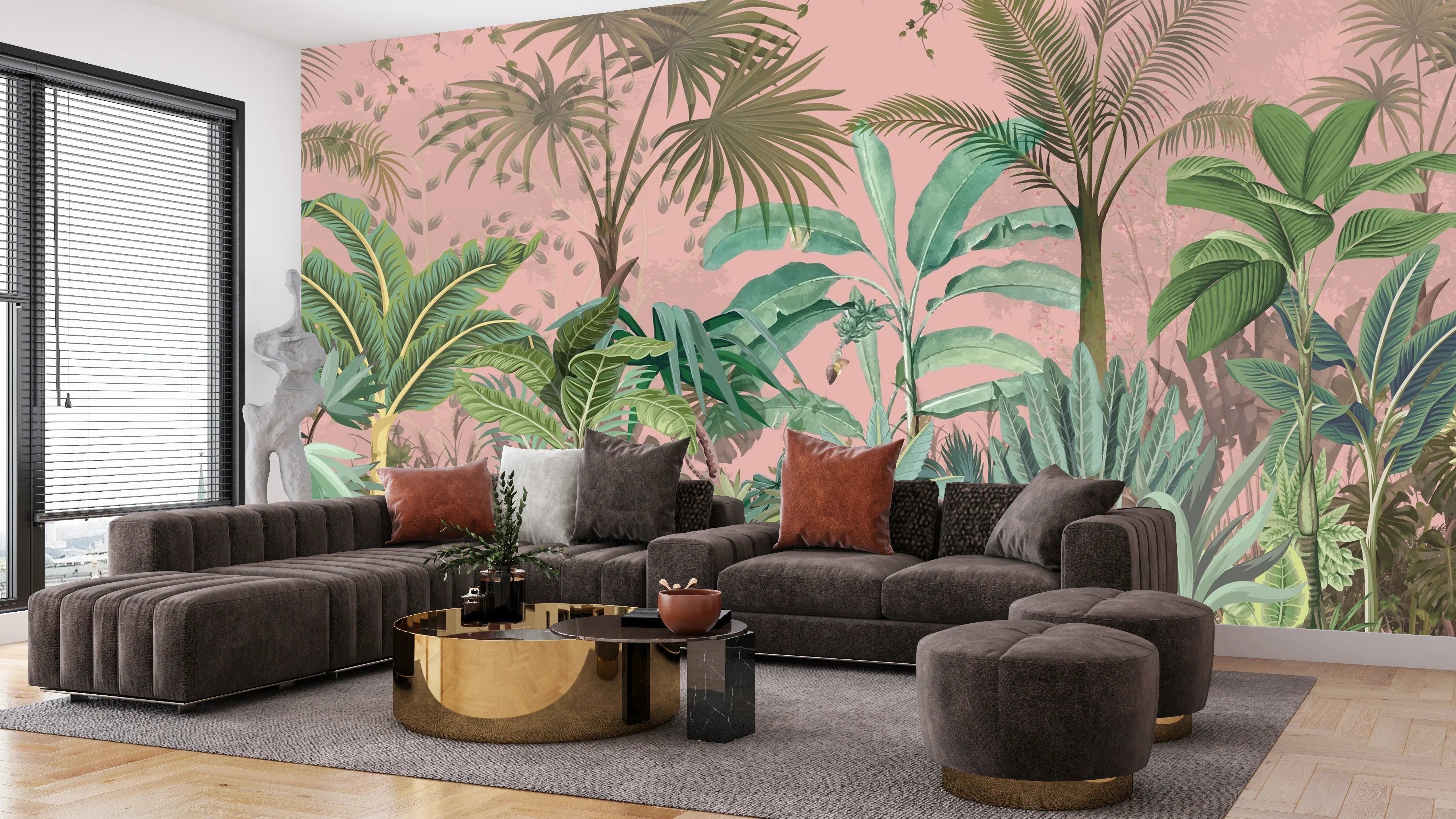 Jungle Wallpaper, Pink Sky Mural, Oversized Custom Size Wall Art, Non-Woven, Non-Adhesive, Modern Wall Paper, Removable